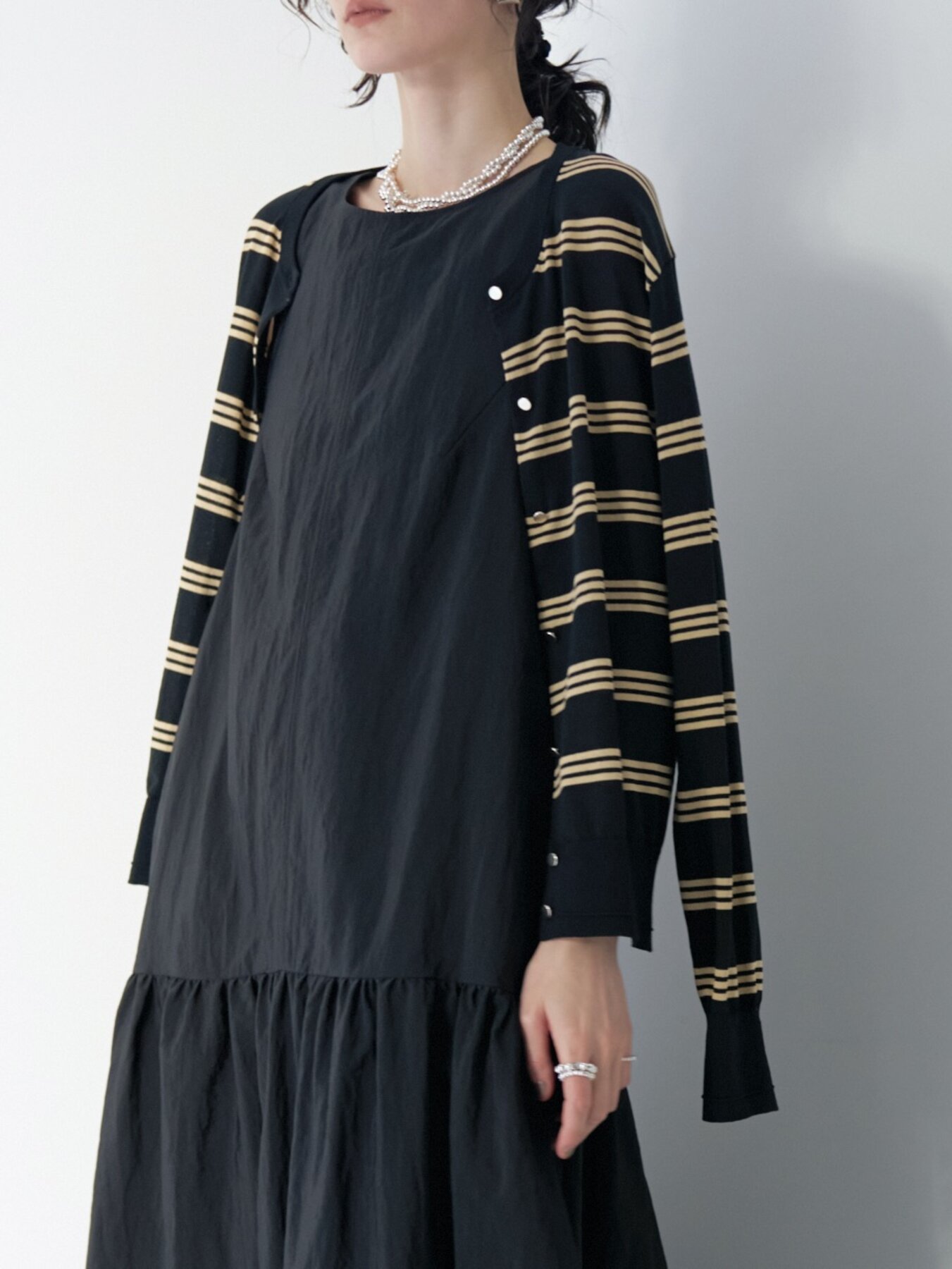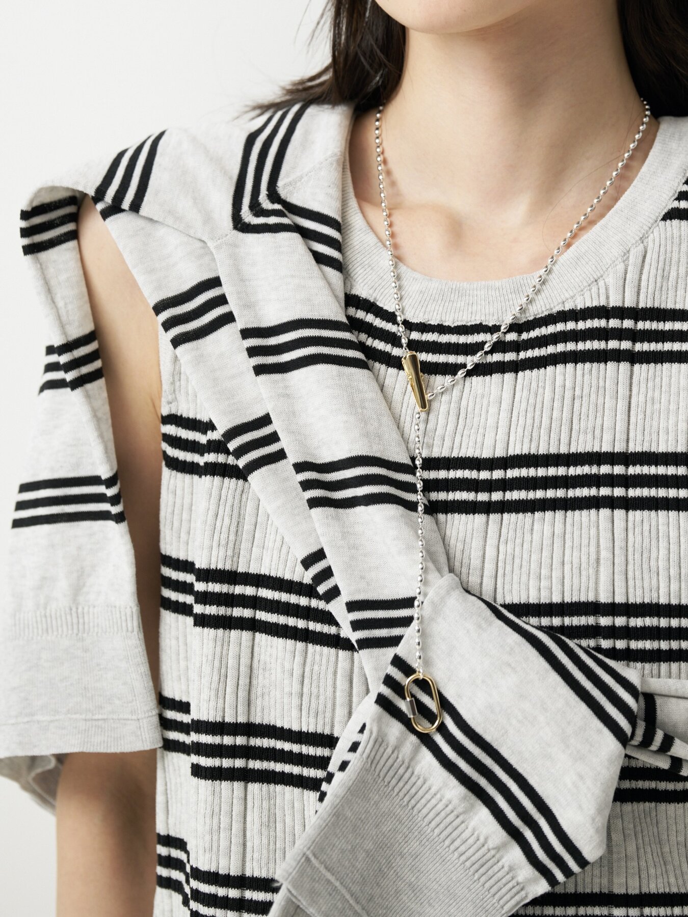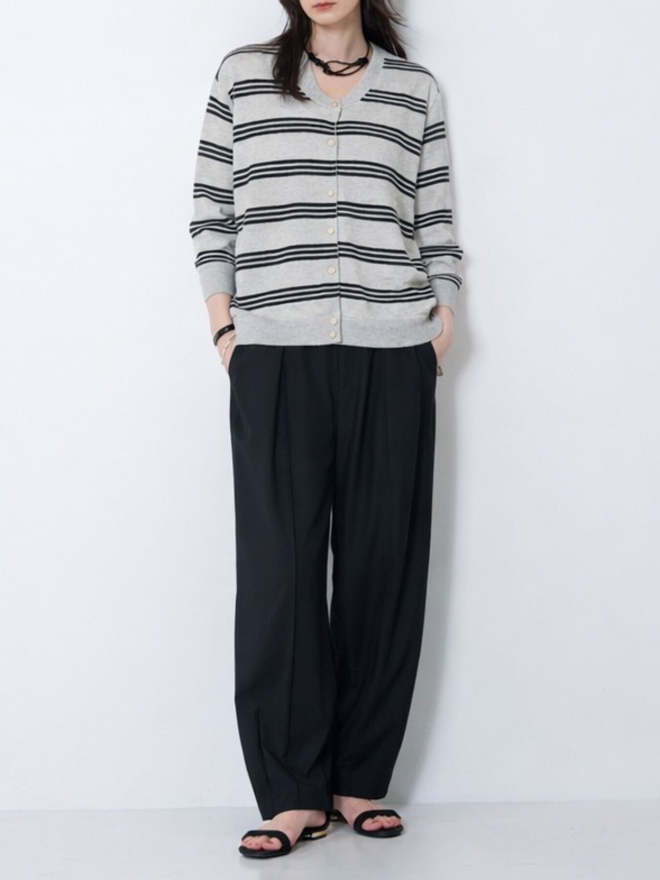 リズミカルな細ピッチボーダー2色は、スタイリングのアクセントにもおすすめ。