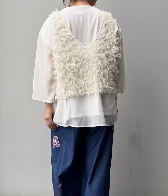 メーカー完売 ブルーラスト1点 CHU CHU-FRINGE 2way KNIT-COMBI VEST 5704