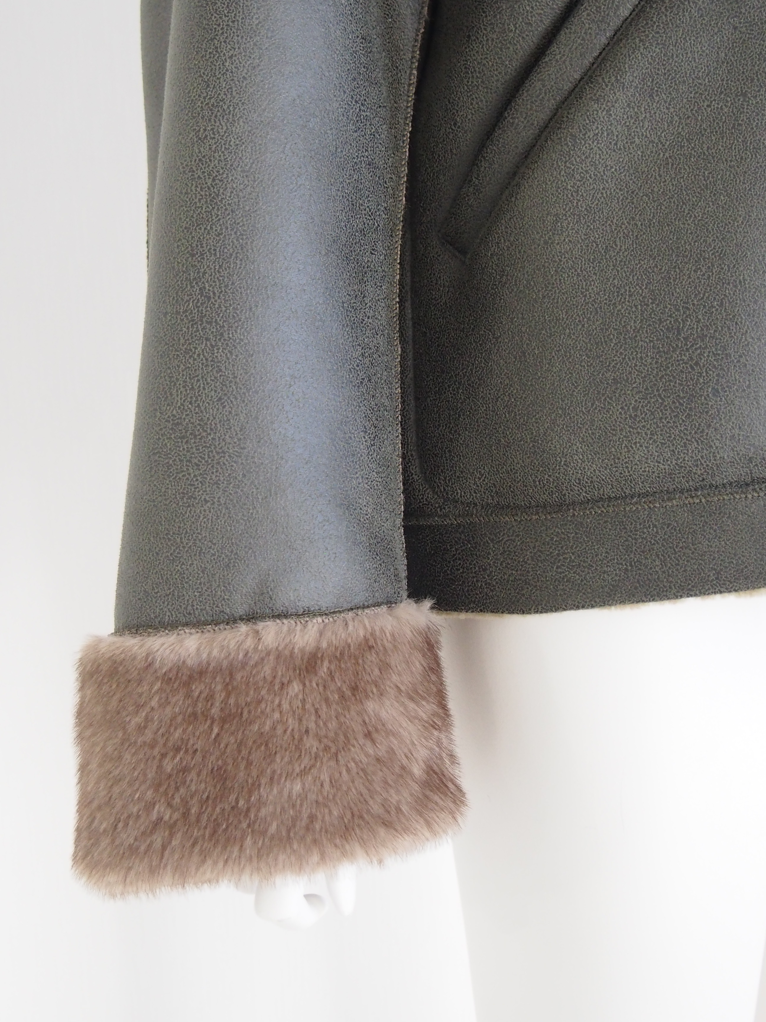 暖かなボア素材の袖に同色のファーを用いた華やかな面と、本格的なヴィンテージの表情に仕上げたフェイクムートン素材を使用したもう片面とのリバーシブル対応でその日のスタイルに合わせてアレンジが楽しめます。