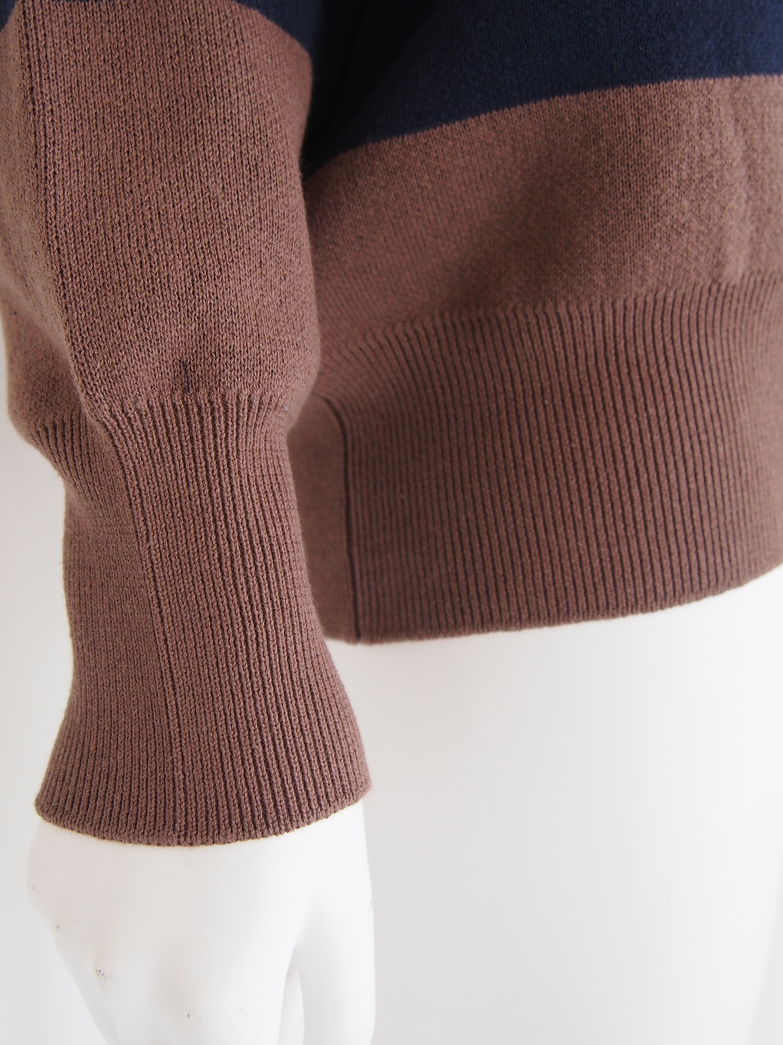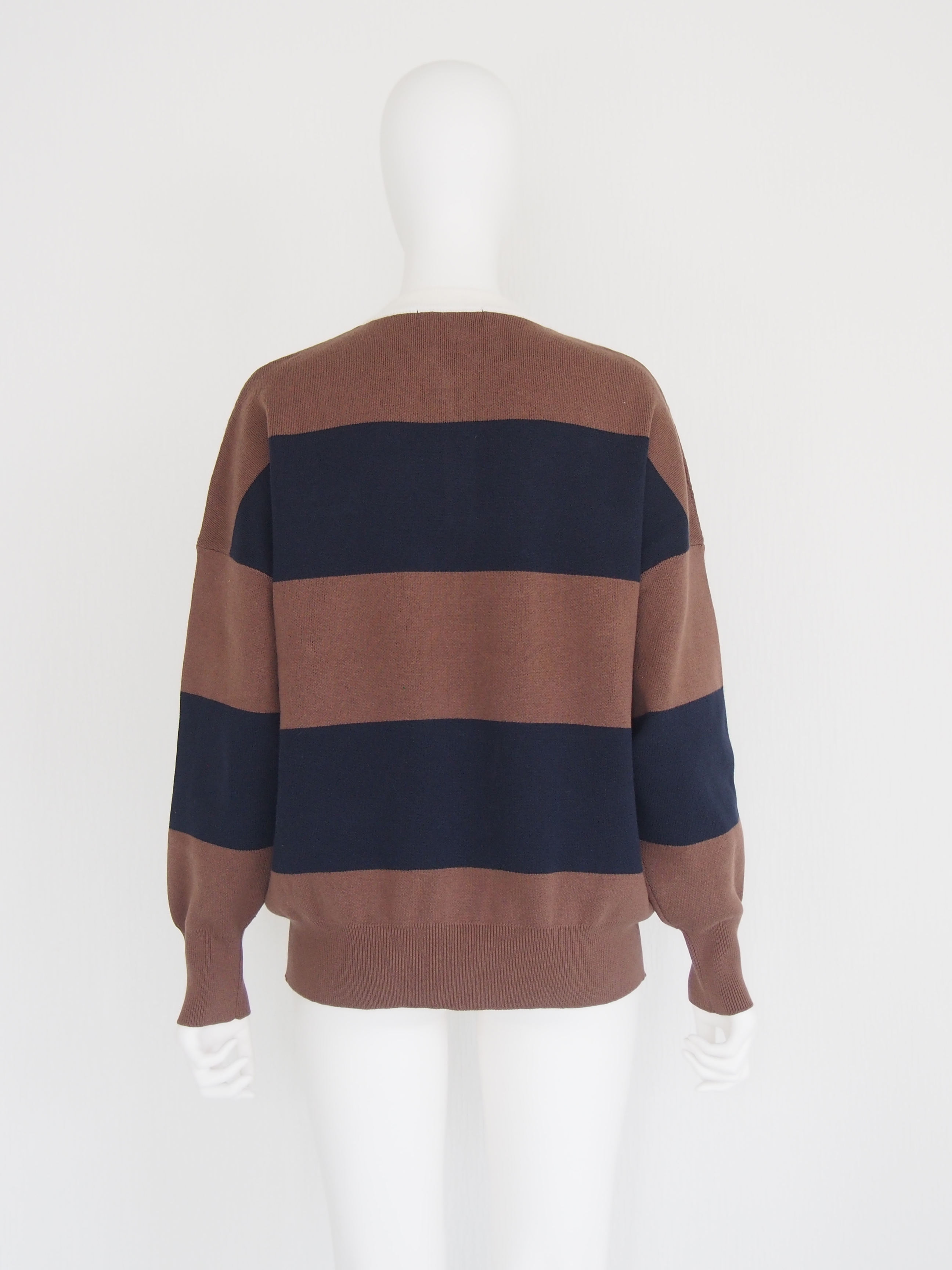 存在感のあるワイドボーダーが印象的で、クラシックなアイビースタイルを感じさせる1着です。