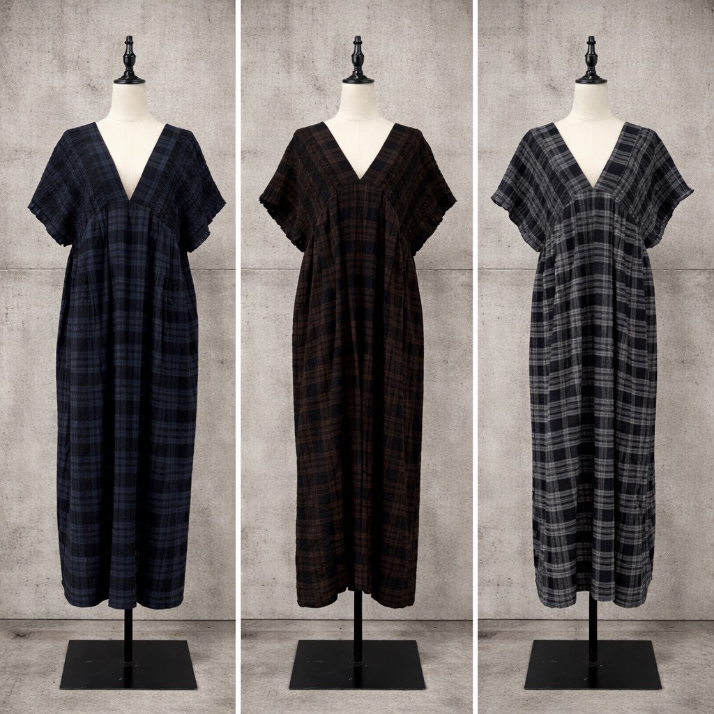 siro26aw1ご予約 crinkle check shirring OP R643117 納期8月中旬~8月下旬