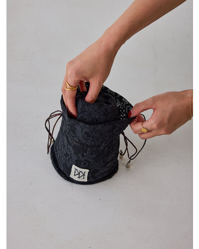 総レースのフーディシャツを、同素材で仕上げた巾着袋に収納できるポータブルレースフーディ。