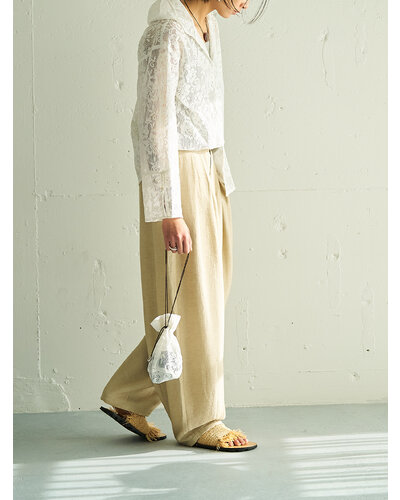 フロントは貝ボタンの前あき仕様で、ボタンを閉じればトップスとして、開ければ軽やかな羽織としても活躍。