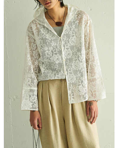 繊細なレースをあえてフーディデザインに落とし込むことで、甘さを抑えたスポーティで今季らしい表情に仕上げました。