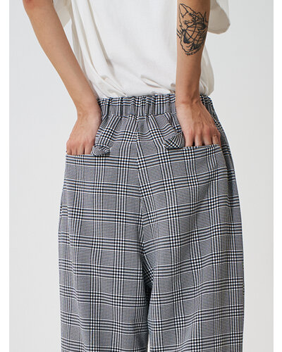 シボ感のあるチェック柄の生地を使用したワイドパンツです。
