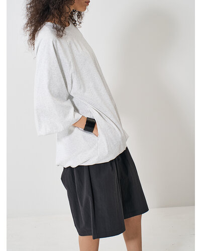 たっぷりとボリュームをとったオーバーサイズのシルエット。ラグラン袖を採用することで、着膨れせずすっきりと見えるように設計しました。
