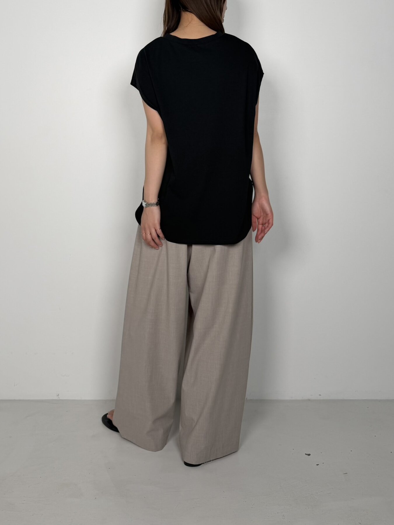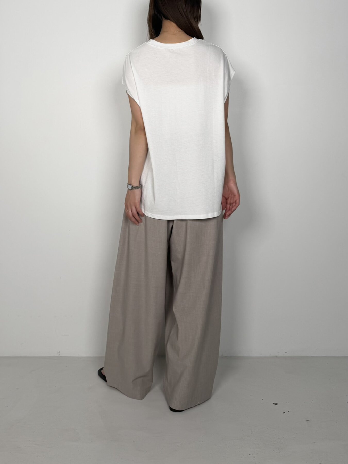 身幅はゆったりとしたシルエットで、リラックス感がありながらもだらしなく見えないのがポイント。