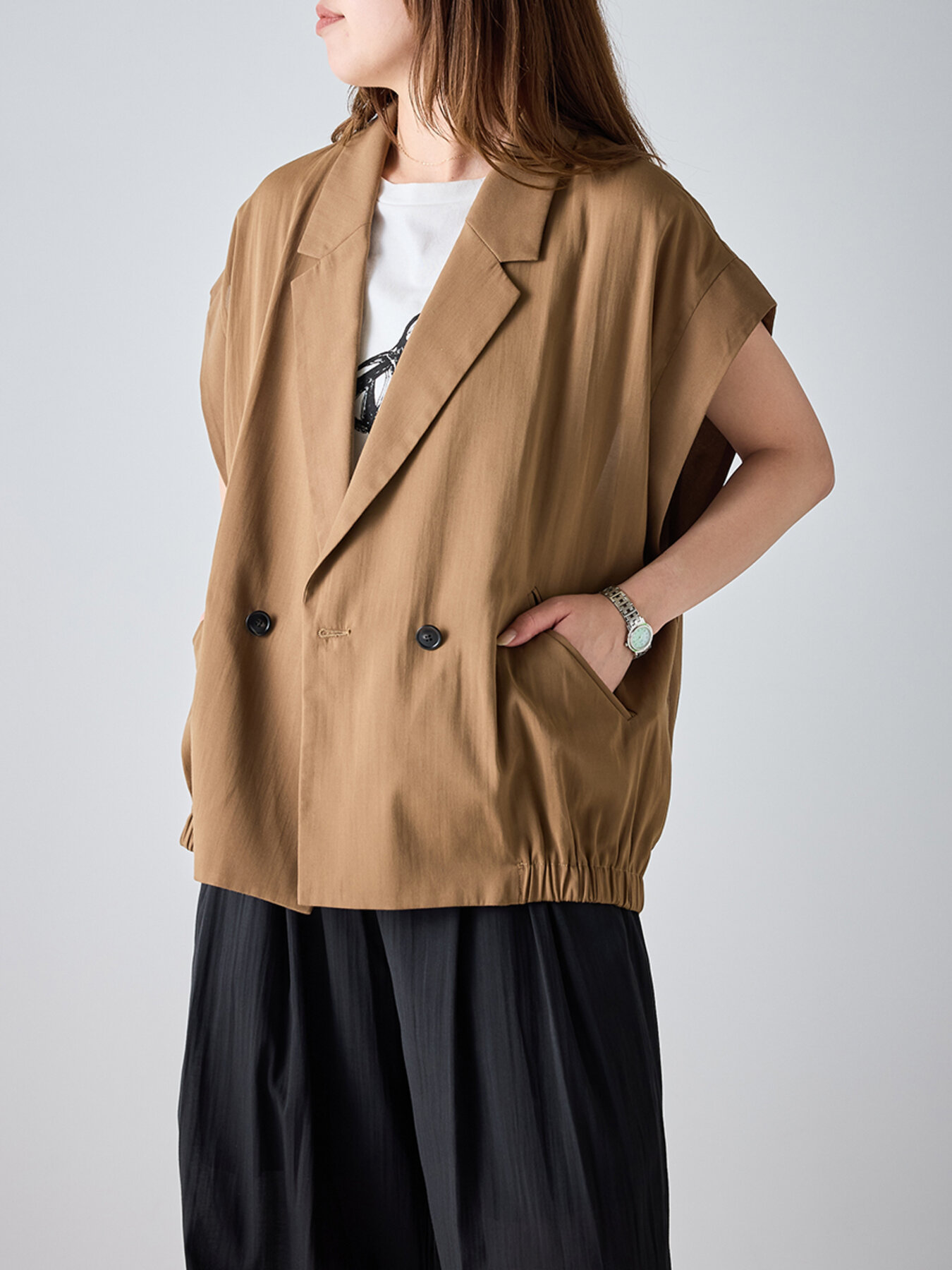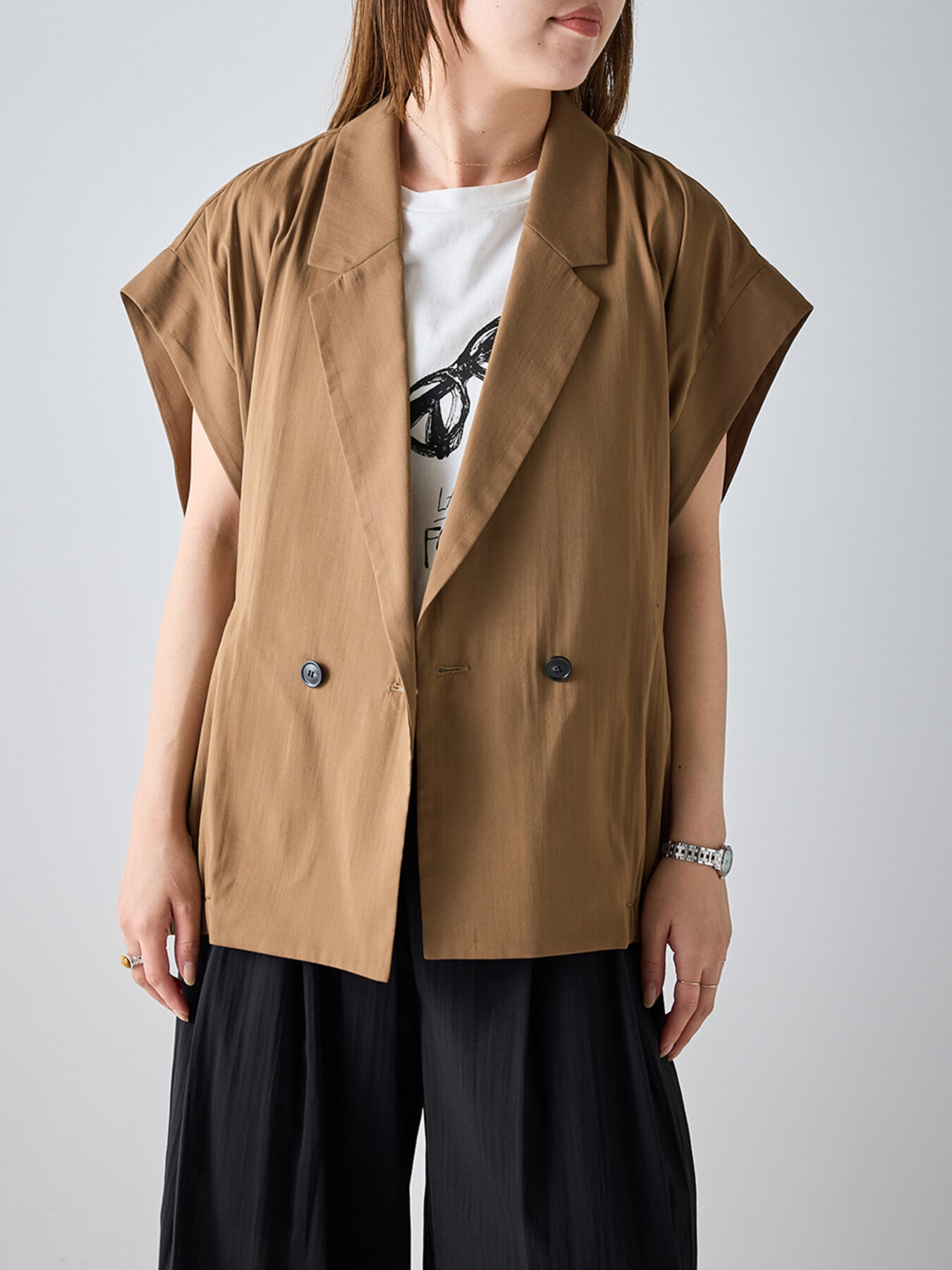 テーラードのきちんと感とブルゾンライクな丸みを掛け合わせたニュアンスジレを作りました。