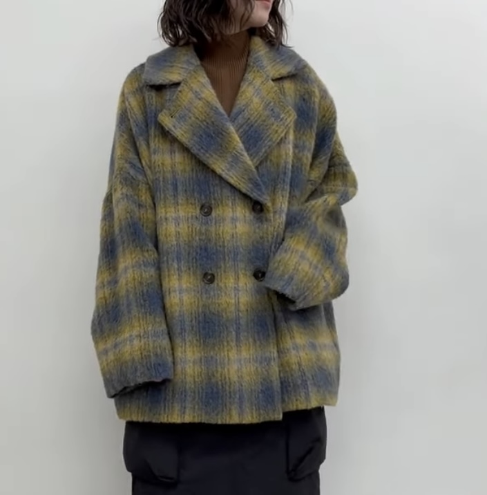 outer Faire メーカー完売 ブラックラスト1点イタリアPRATO生地使用シャギーチェックコート 84002