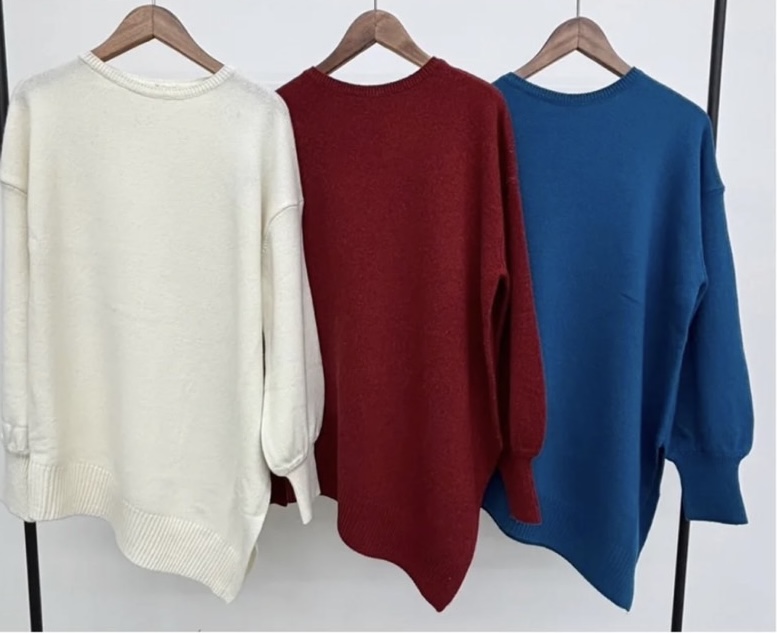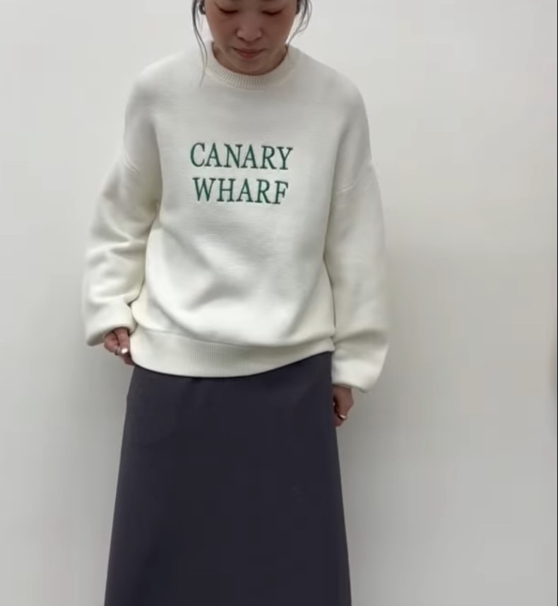 cloche グレーベージュラスト1点づつ 前後2way Vネックロゴニット 5548