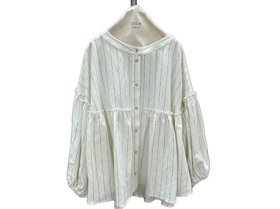 ayane mid summer ご予約 ピンストライプボリュームスリーブシャツ 836619 納期6月上旬~6月中旬