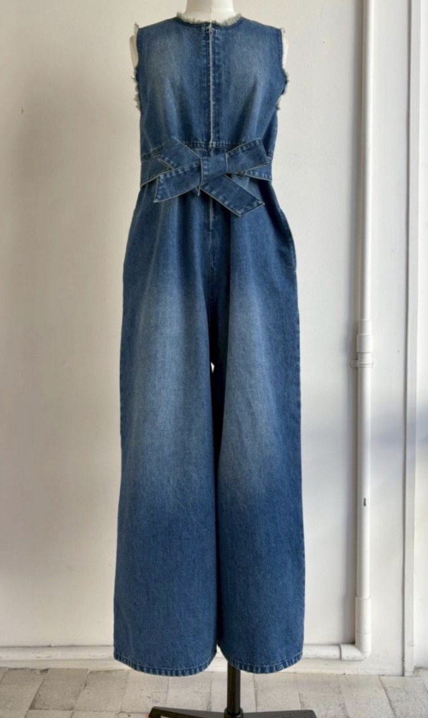 ブルー予約 フロントZIPデニムコンビネゾン a96