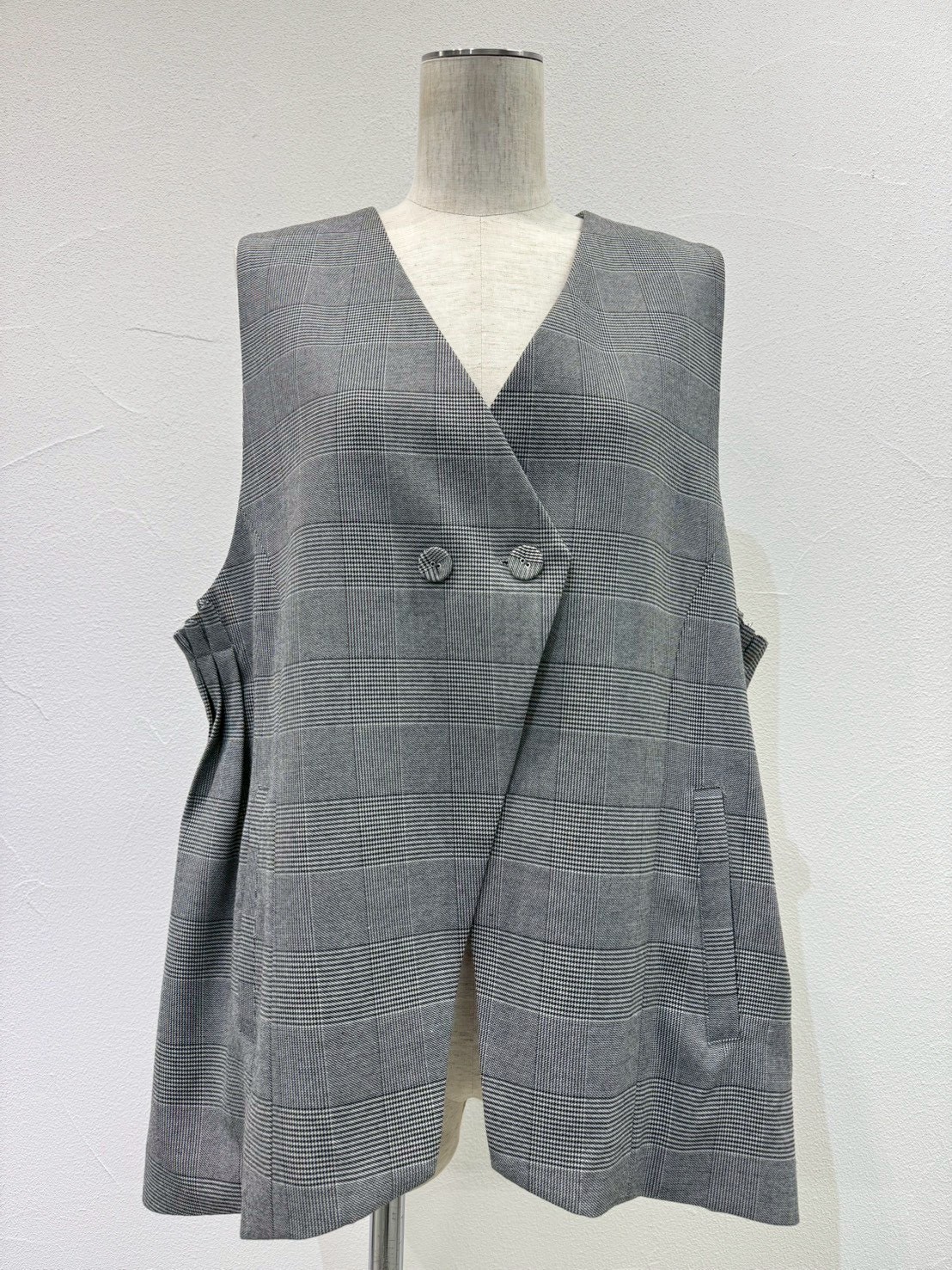 cyantokyo26awご予約 アームプリーツグレンチェックベスト 604492 納期8月初旬~8月下旬
