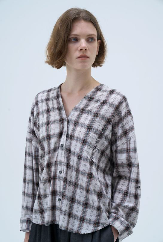 ordinary26SS ご予約 Checked Collarless Wide Shirt BO26-426B 納期2月末
