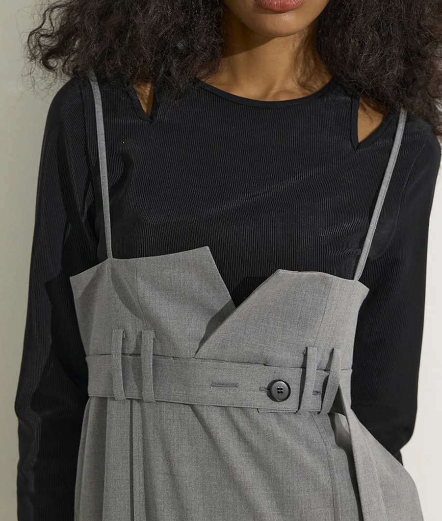 高めに設定されたハイウエストデザインは、センターシーム風のピンタックが縦のラインを強調し、スタイルアップを叶えてくれます。