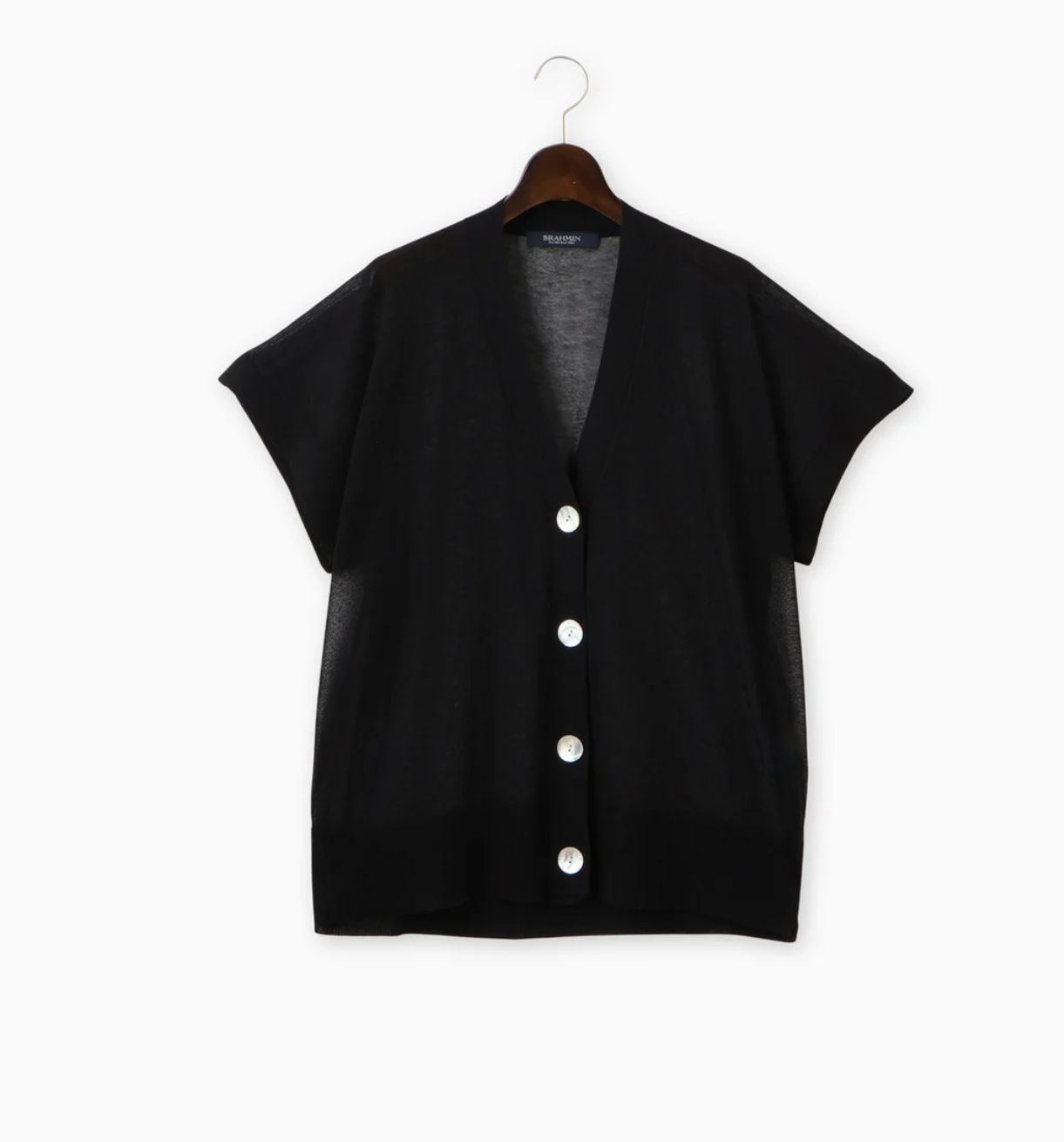 ヒップまである丈感、袖もフレンチスリーブなので新しいスタイリングが叶う羽織です。