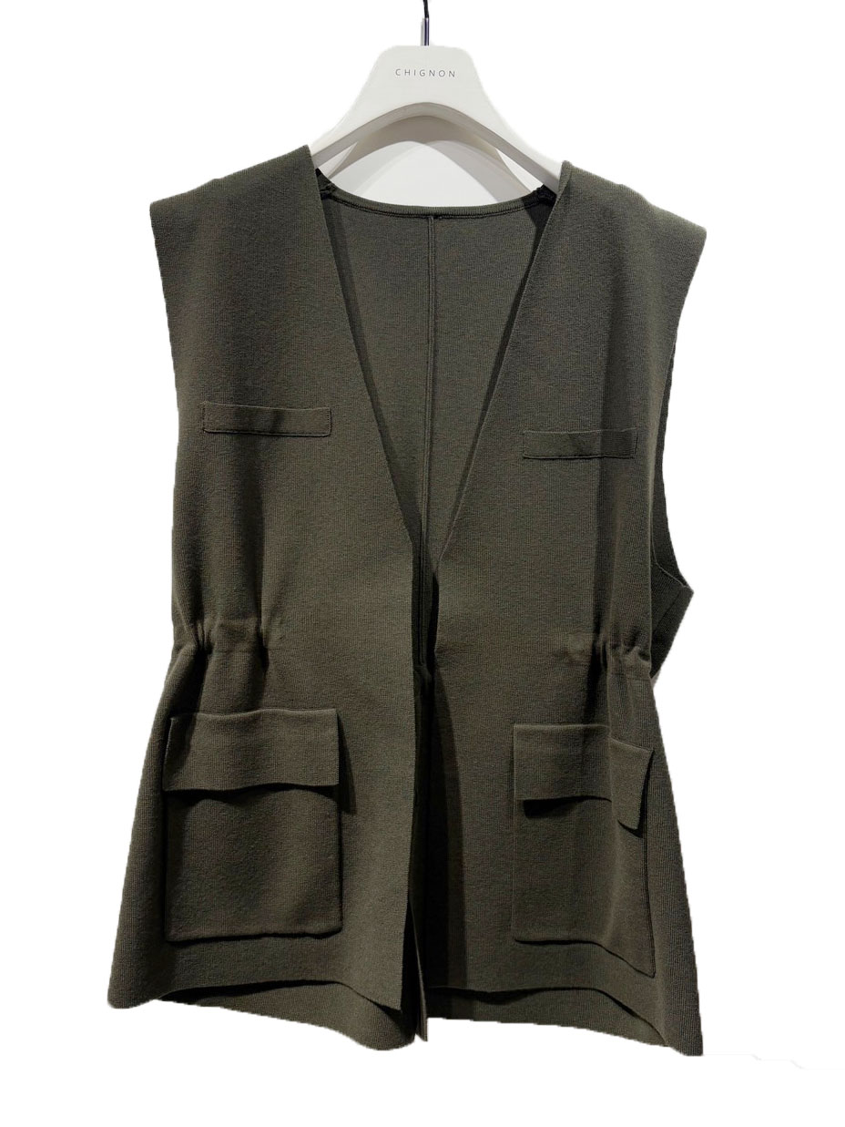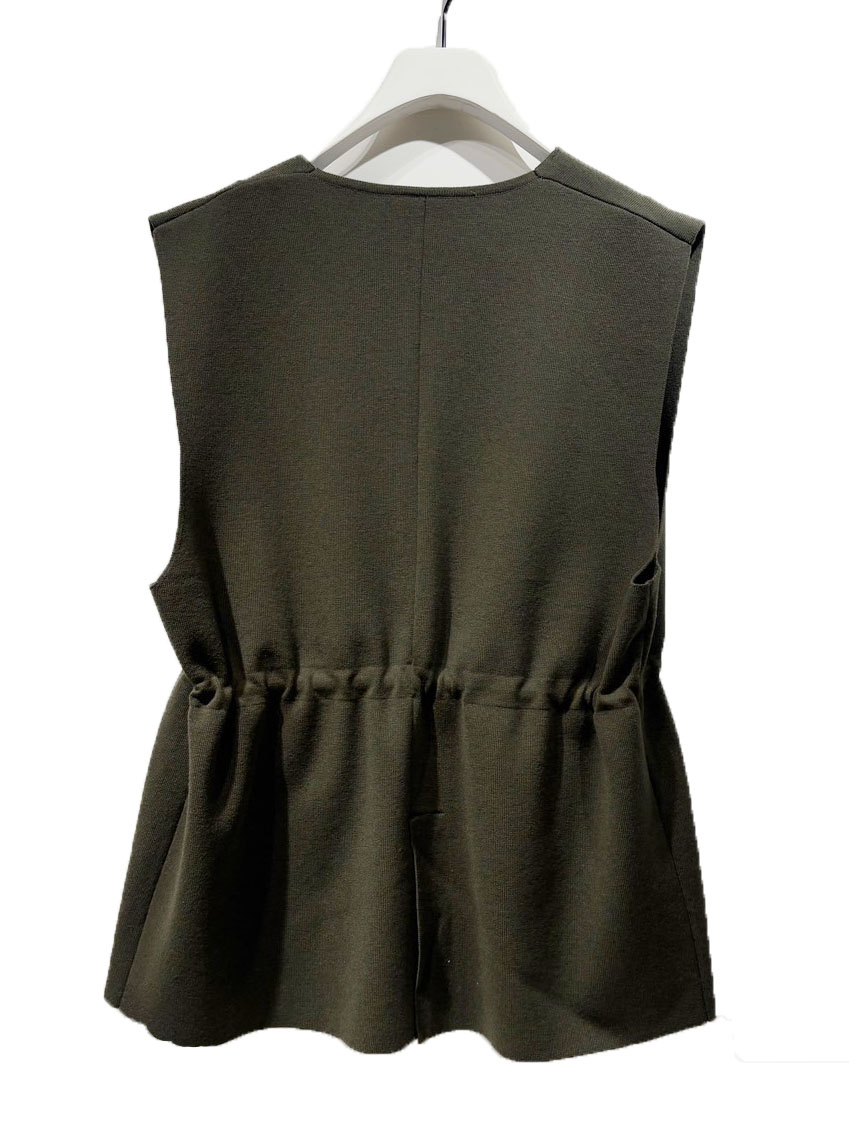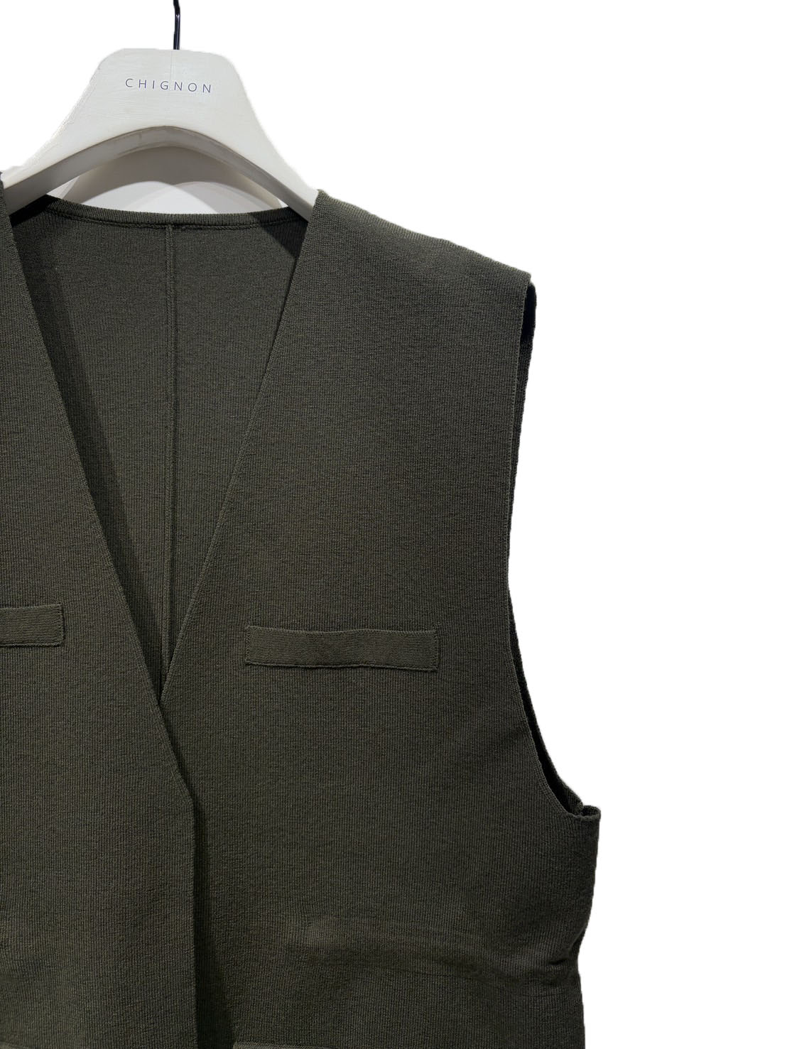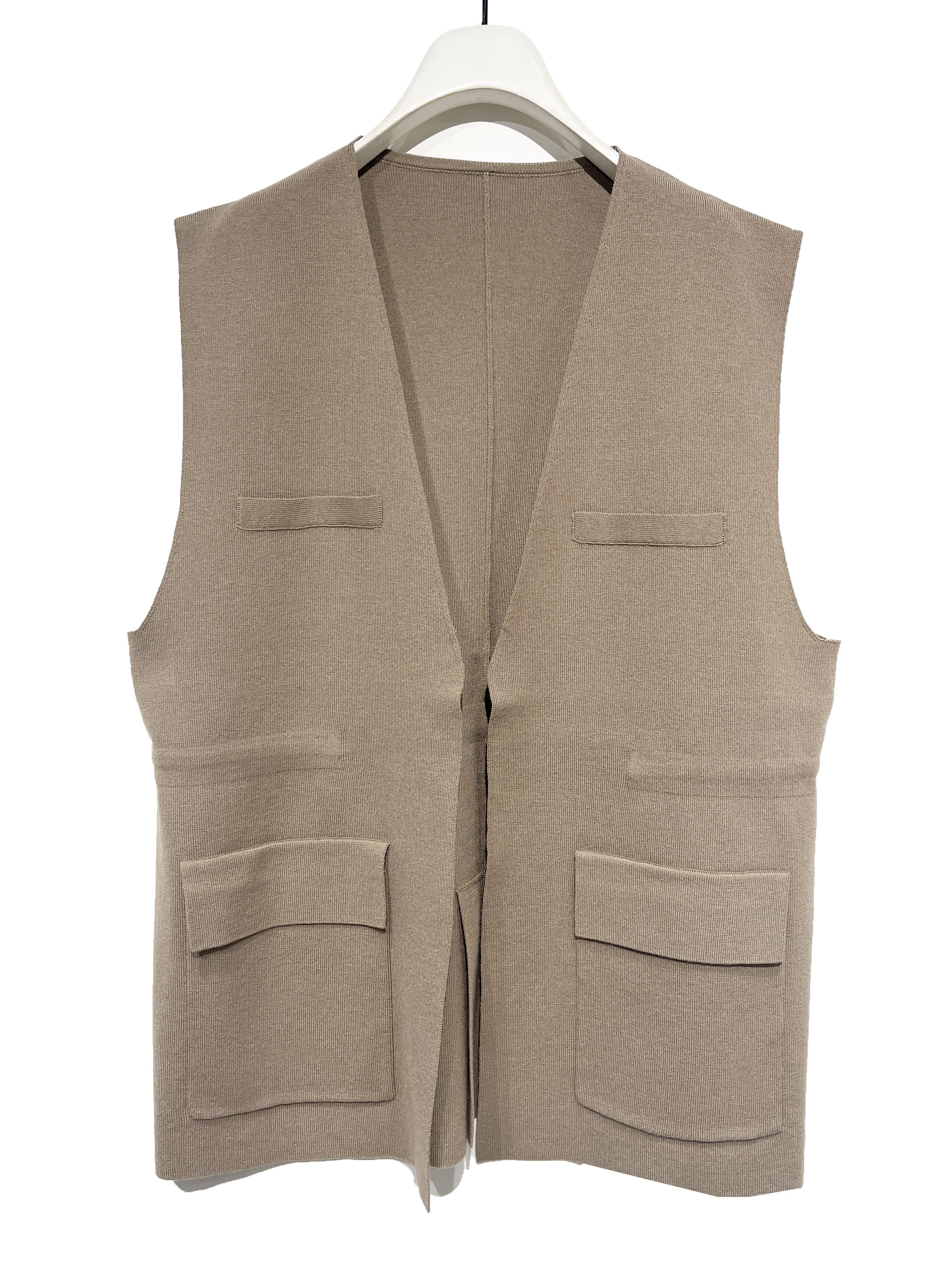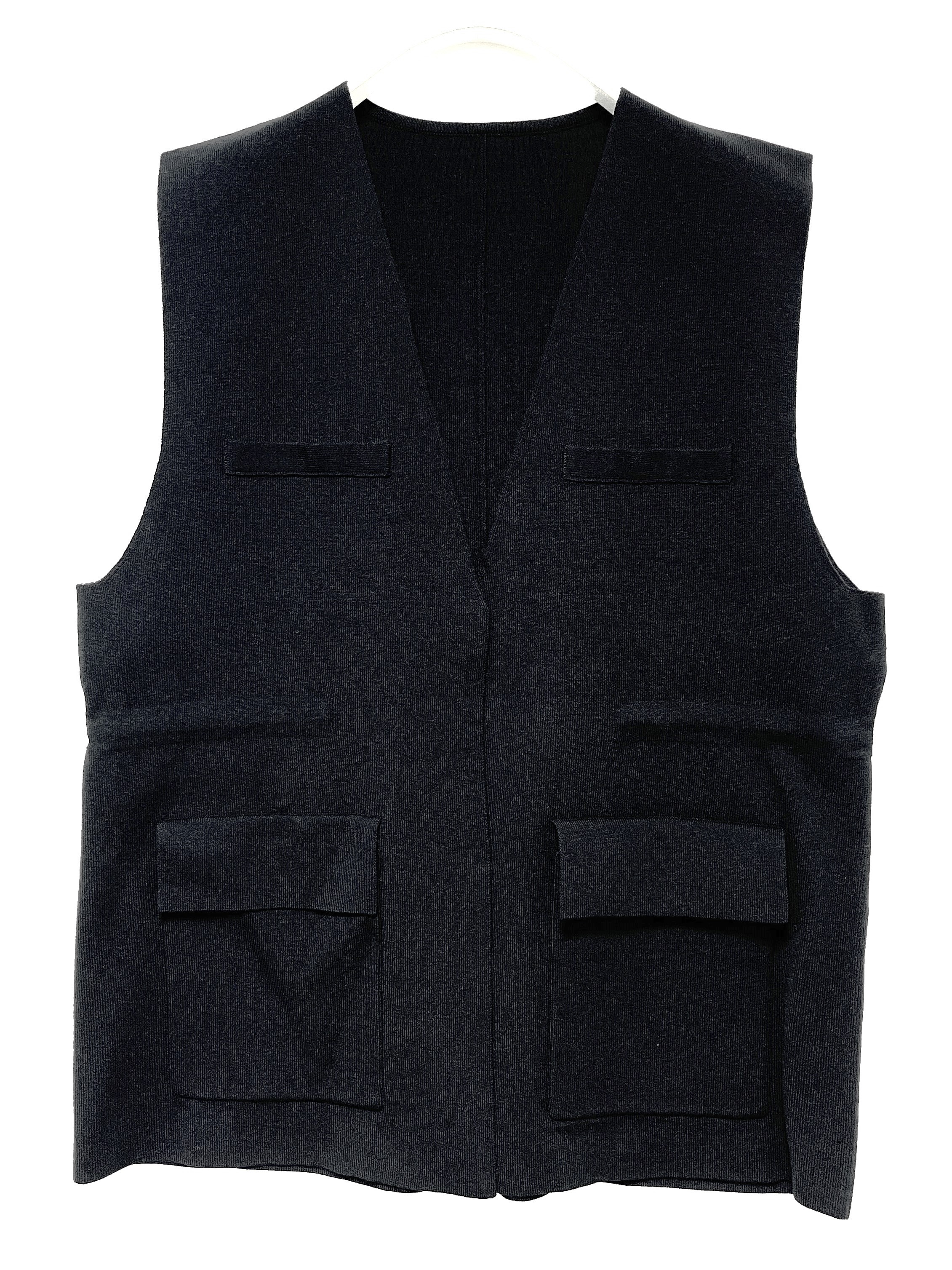 程よい肉感ですっきりとした印象の総針編みのニットのベスト。