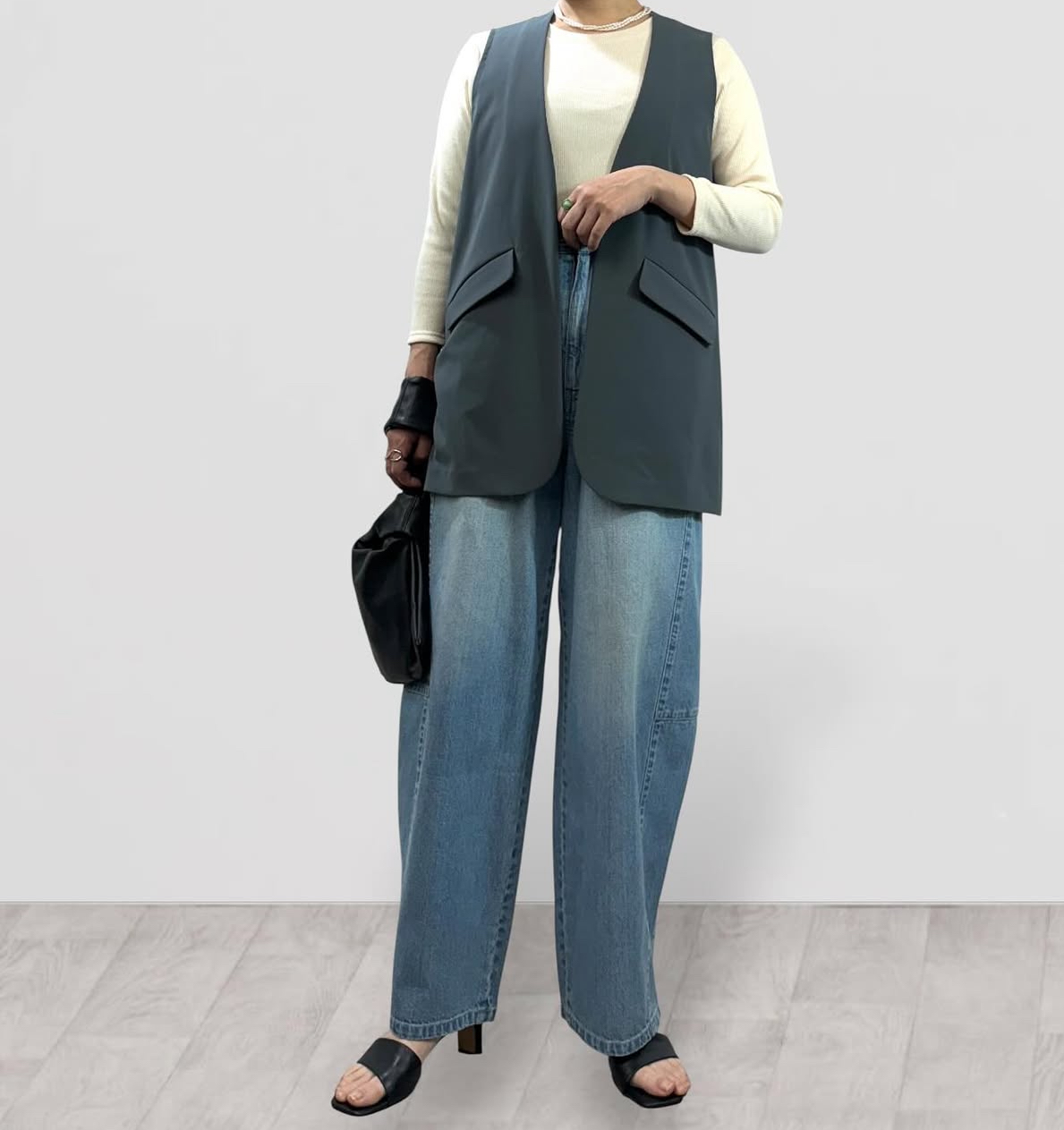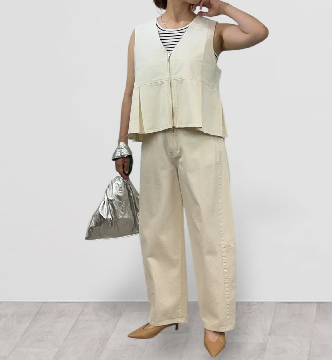 ・脚のラインをカバーする太めのカープとすっきりの腰回りでスタイルアップ