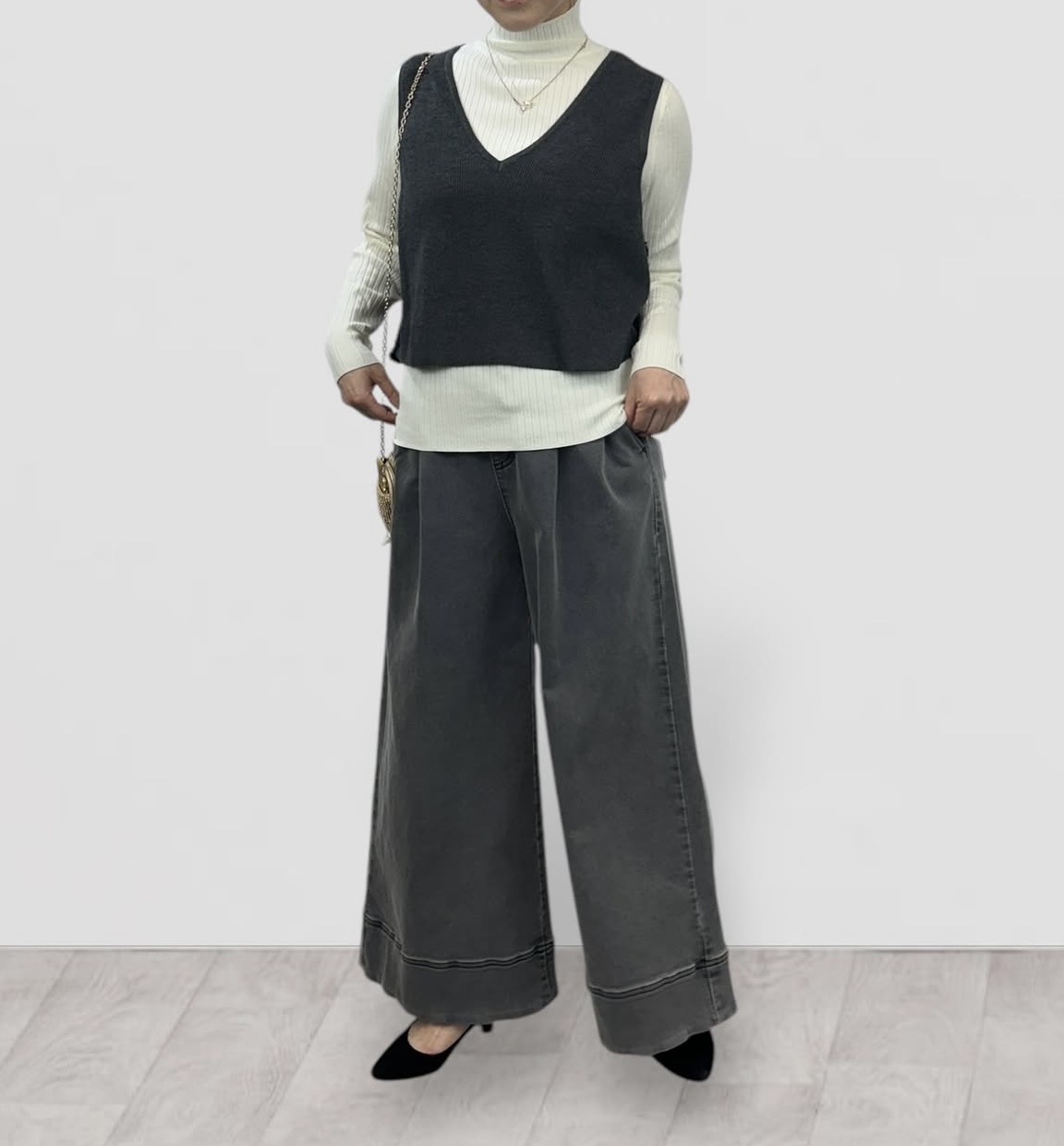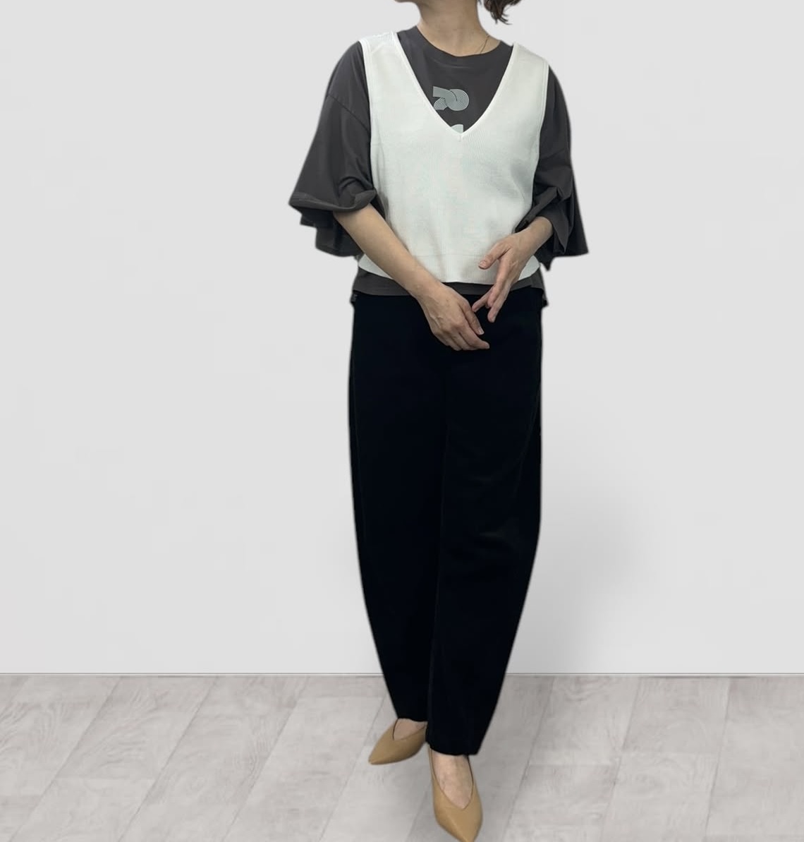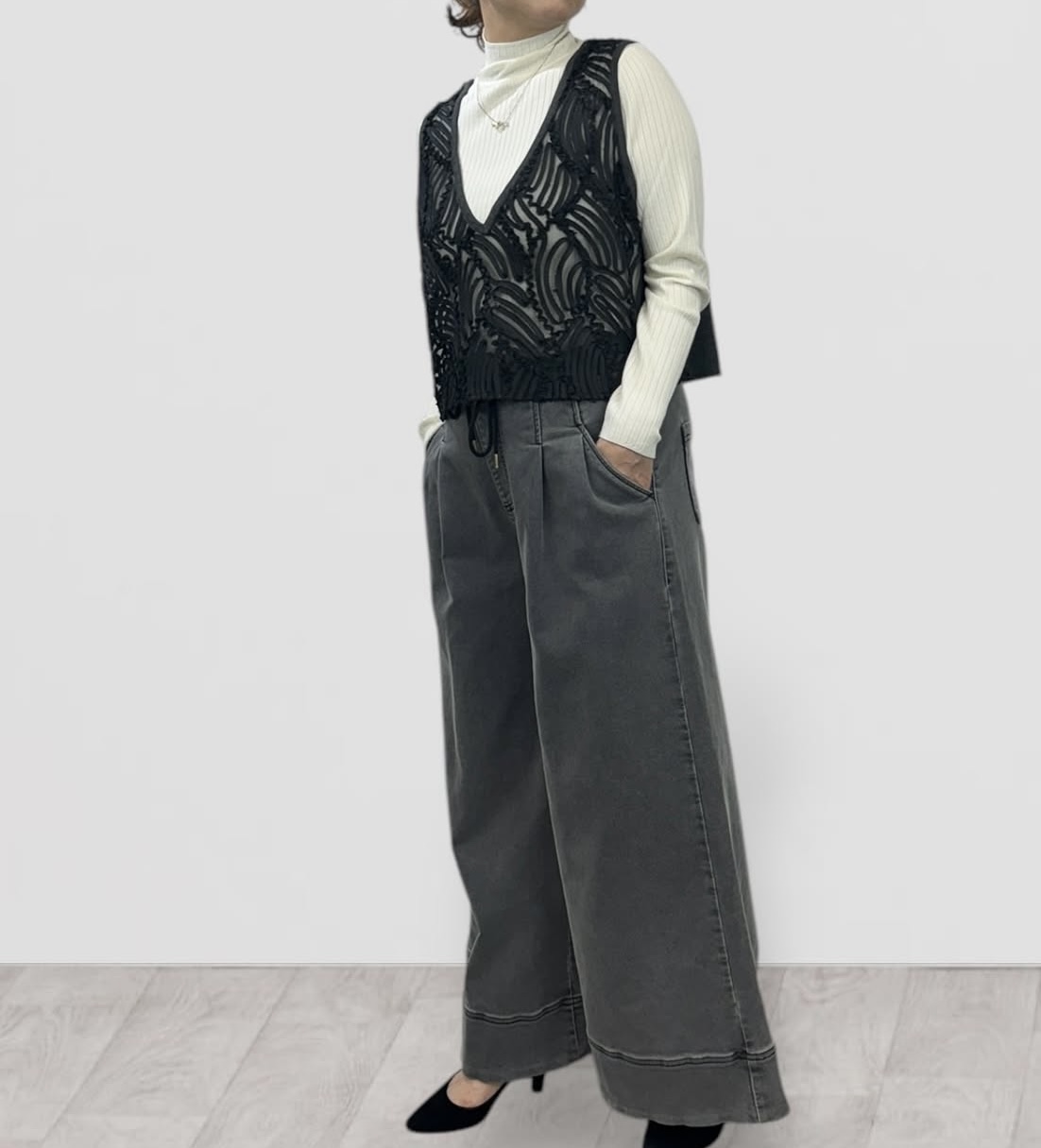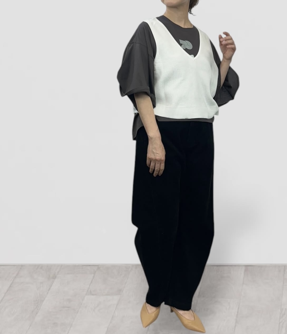 qtume チャコールラスト1点 2WAYクロップドベスト 5547