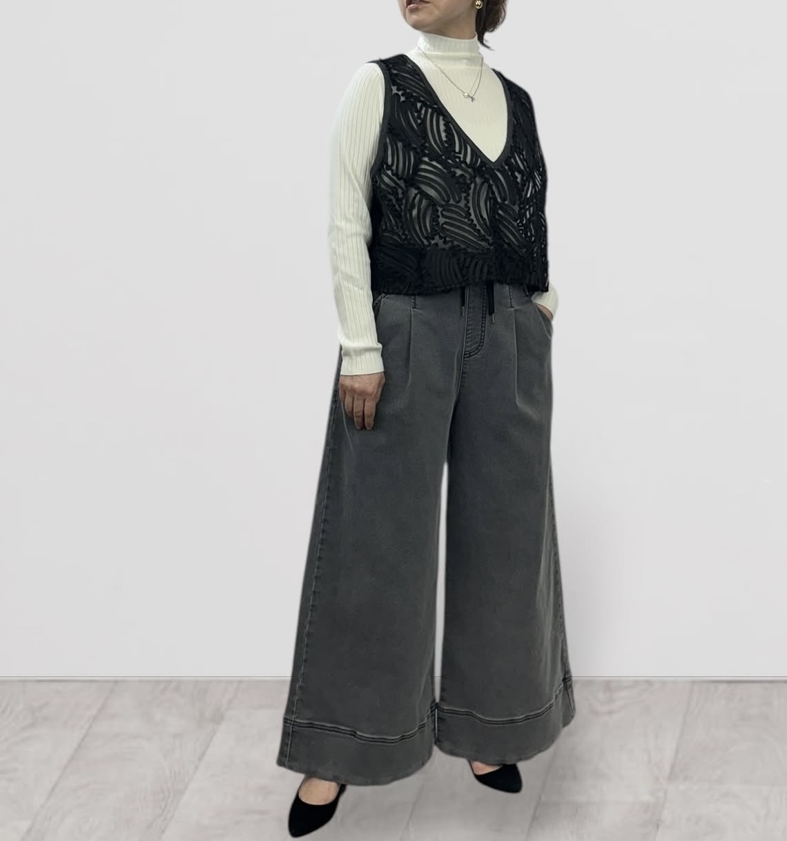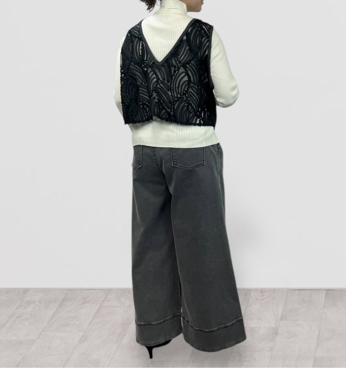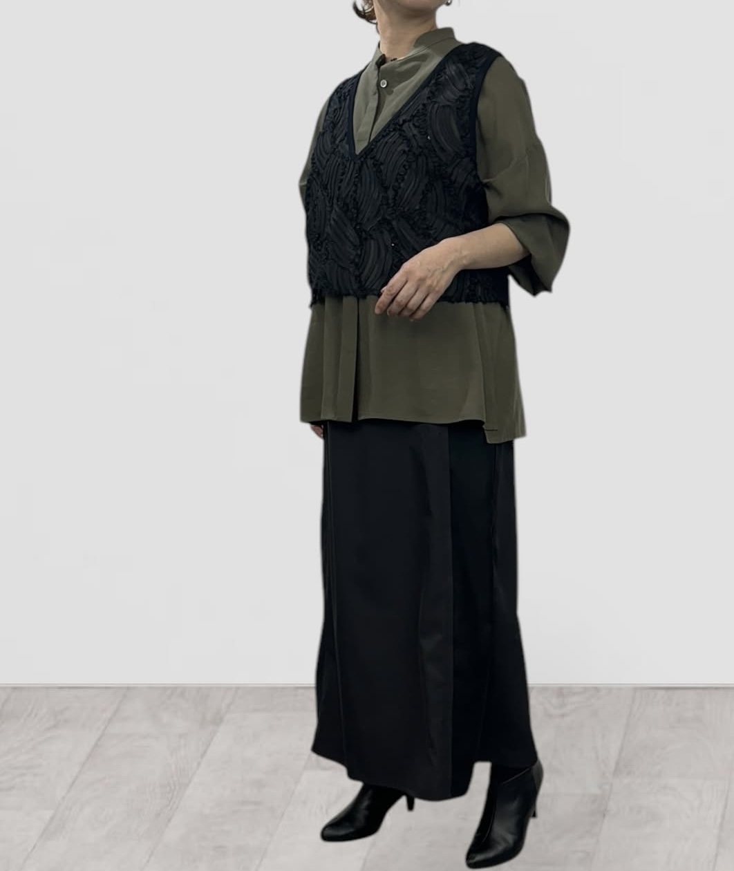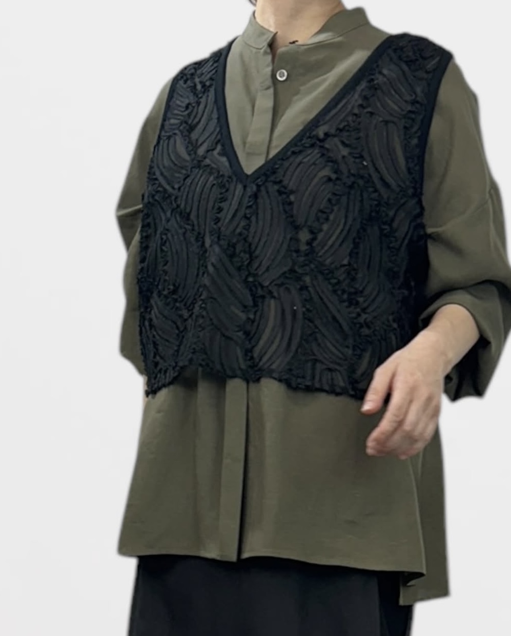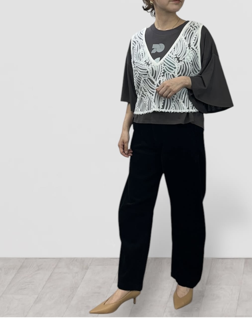 qtume チャコールラスト1点 2WAYクロップドベスト 5547