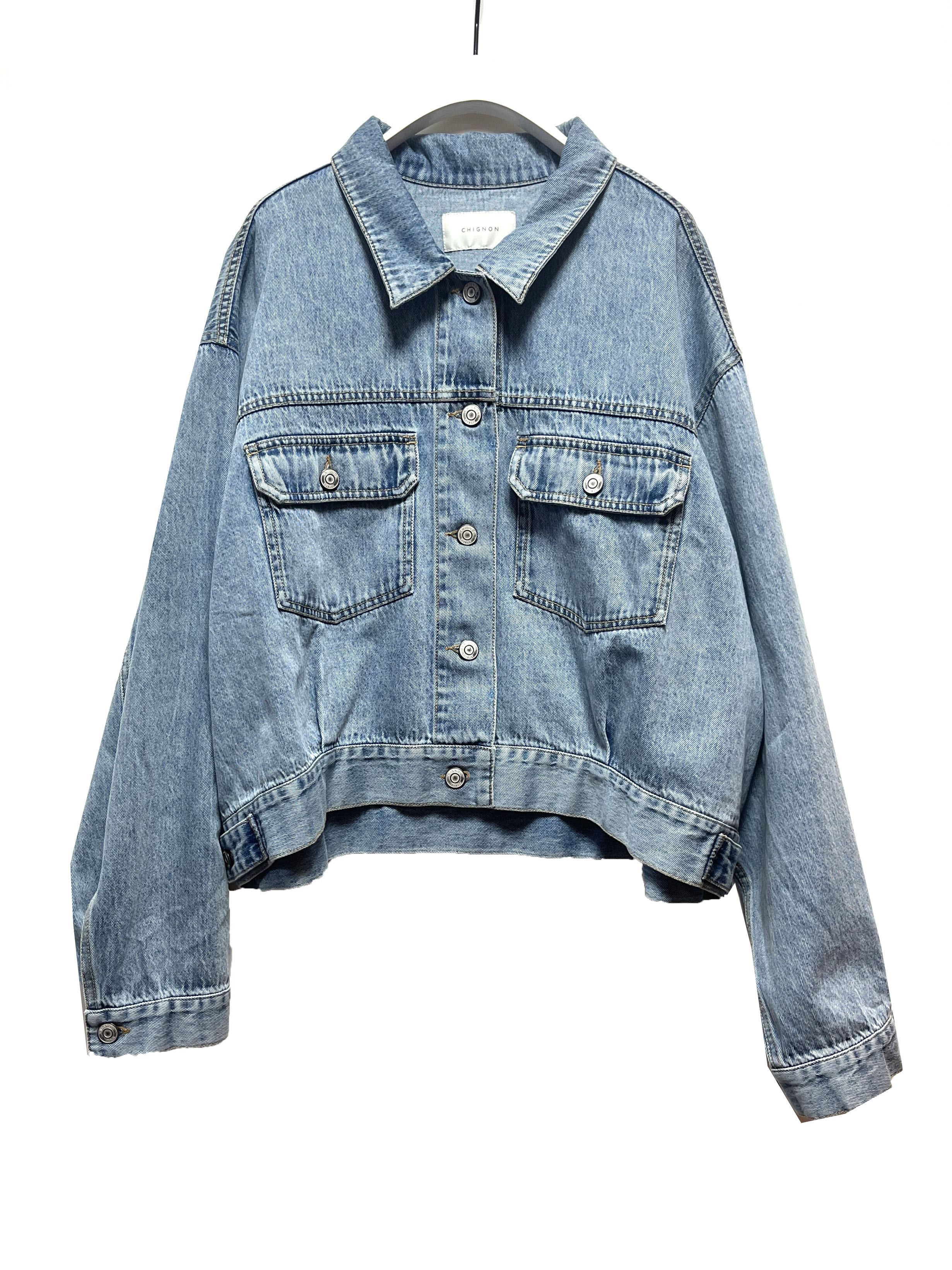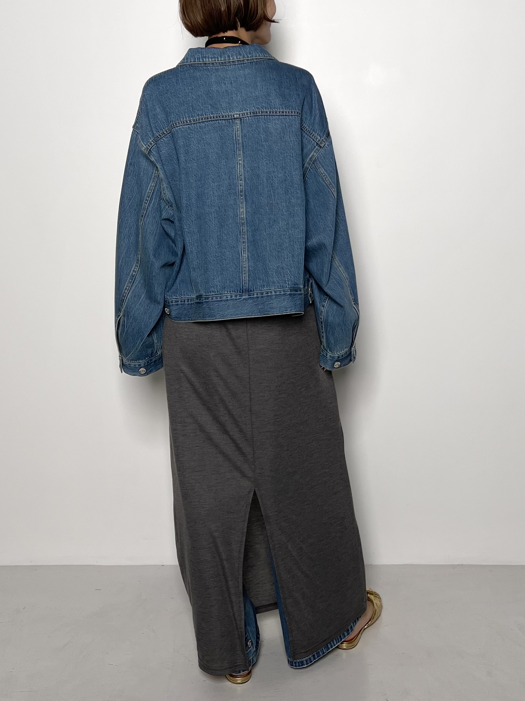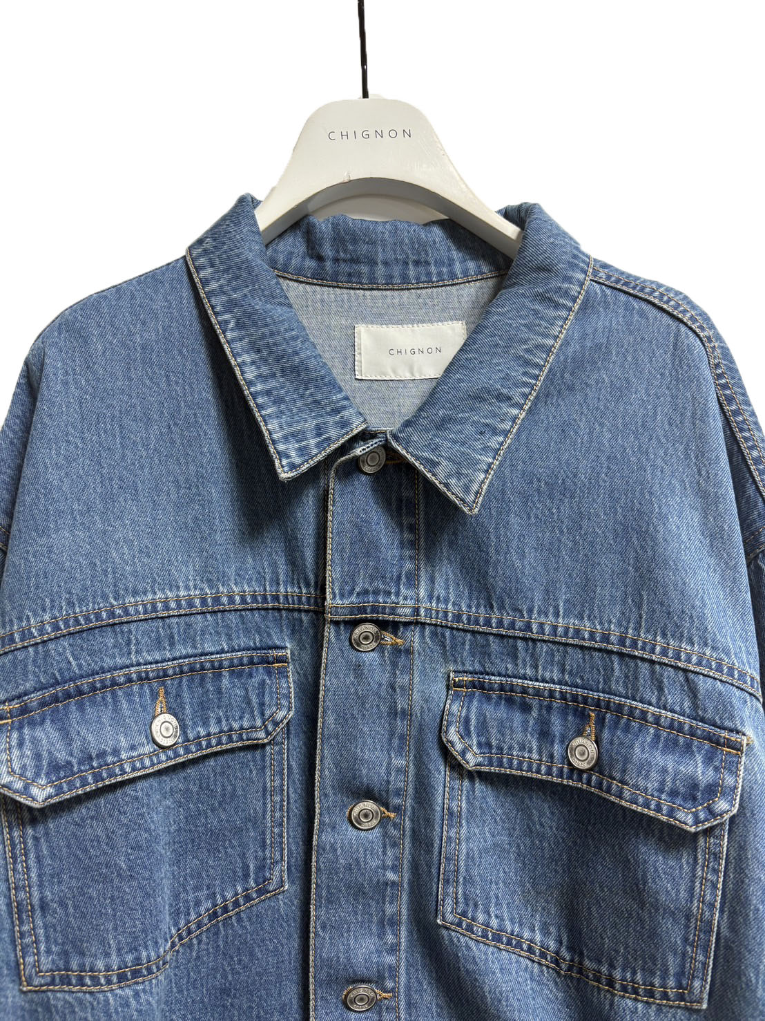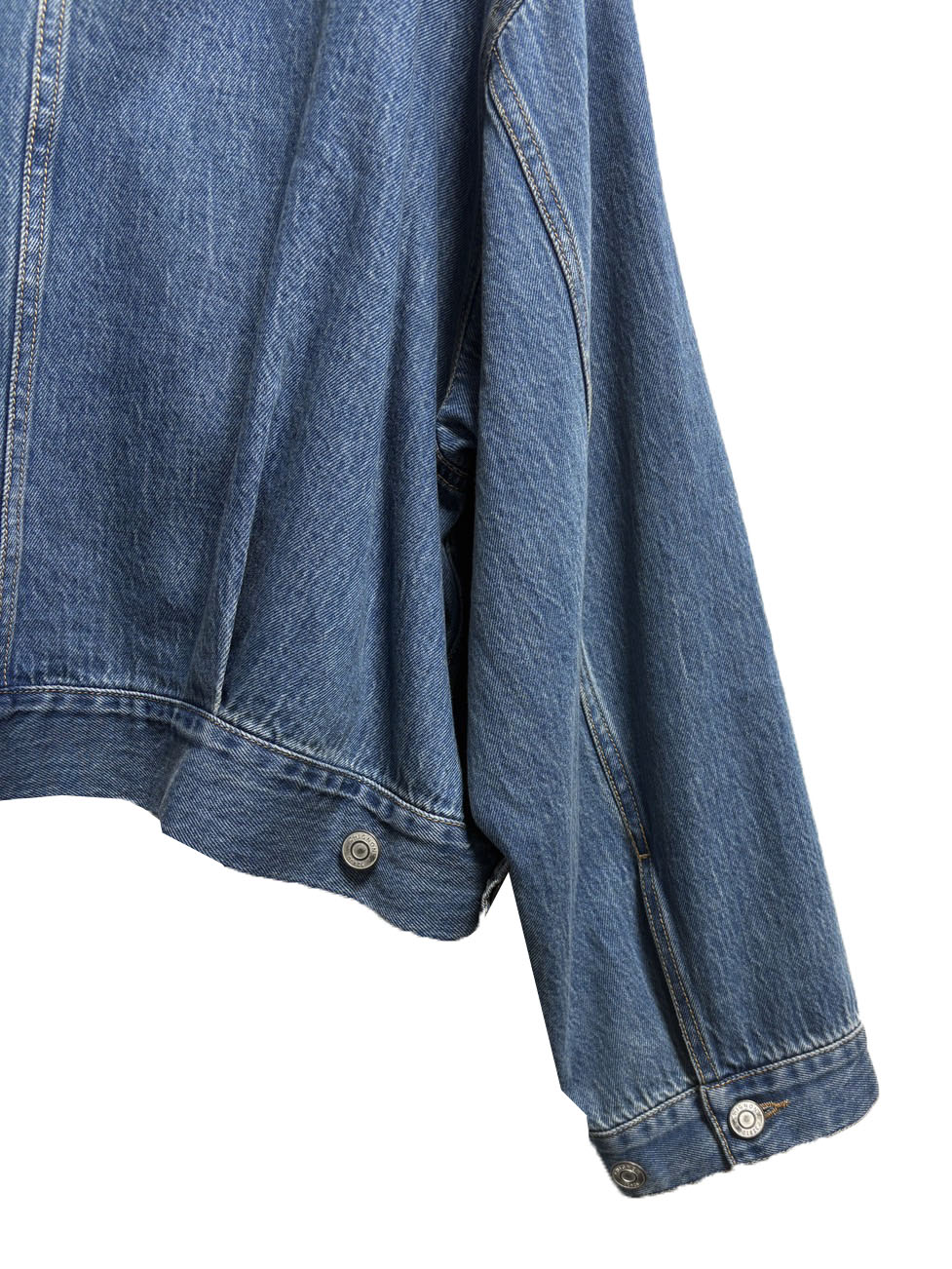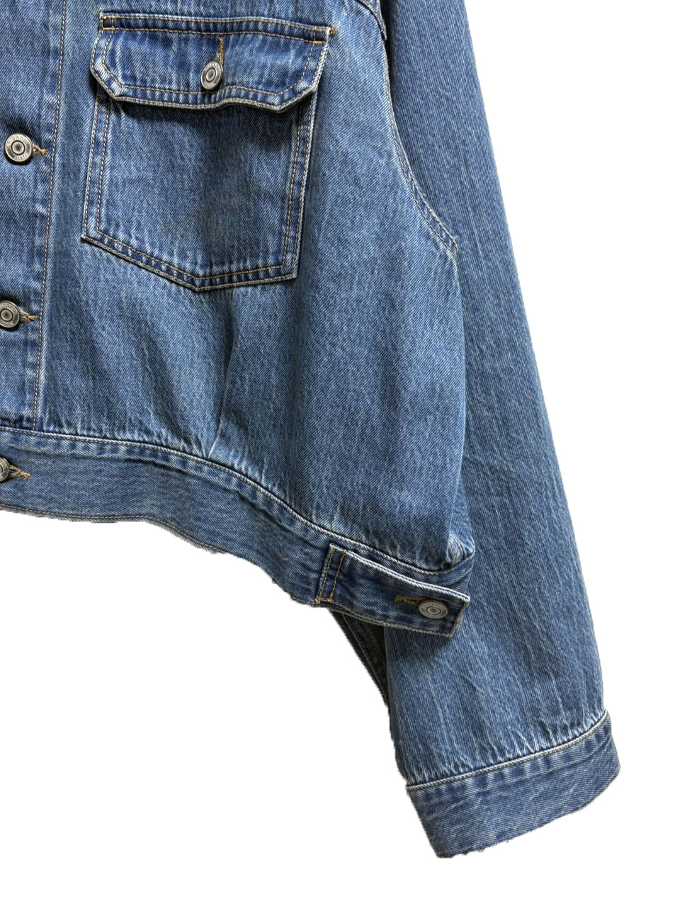 短めの丈感とゆるっとしたワイドなシルエットのGジャンです。