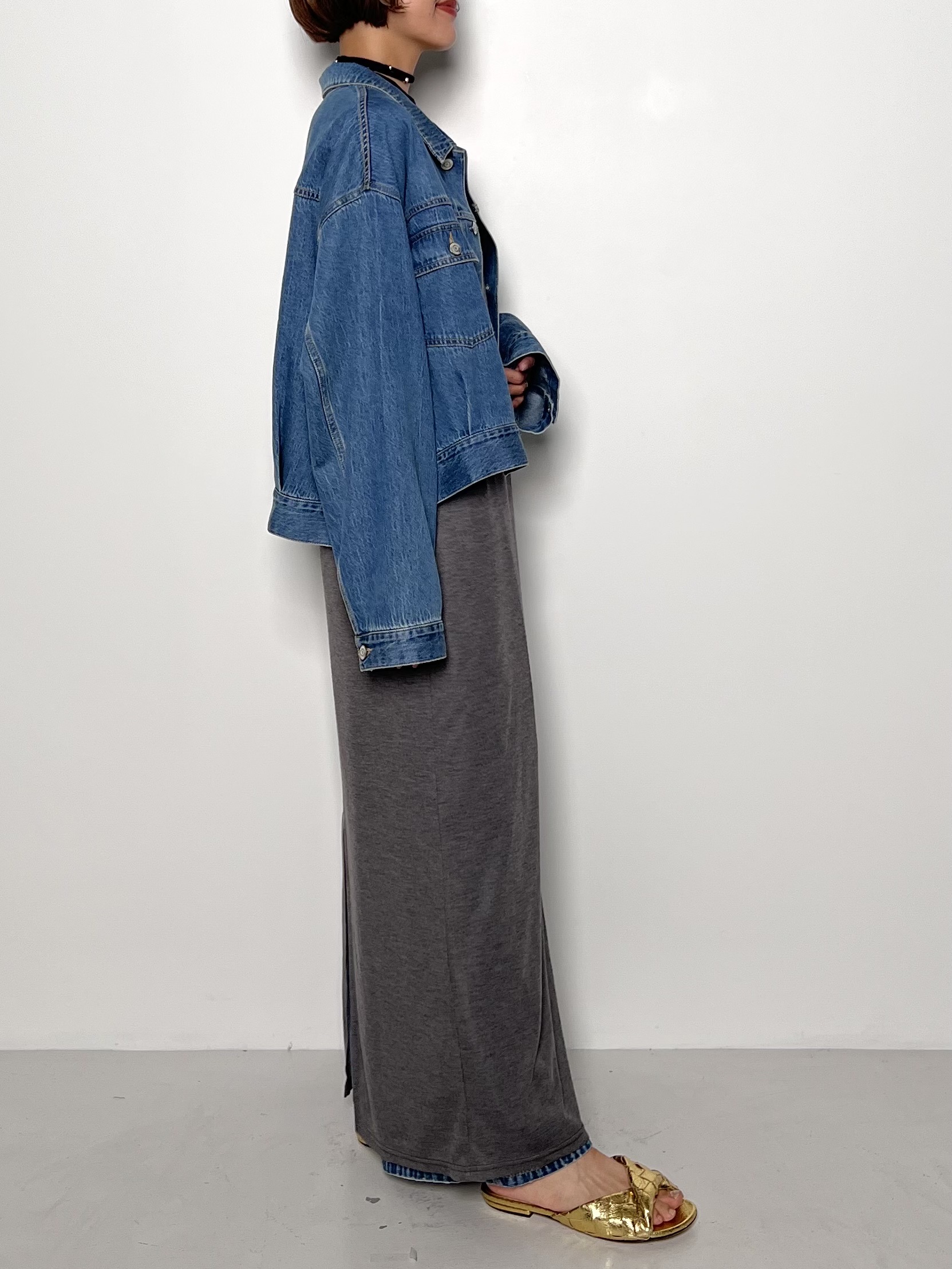 落ち感のあるデニム生地を使用し、女性らしさをプラスしました。