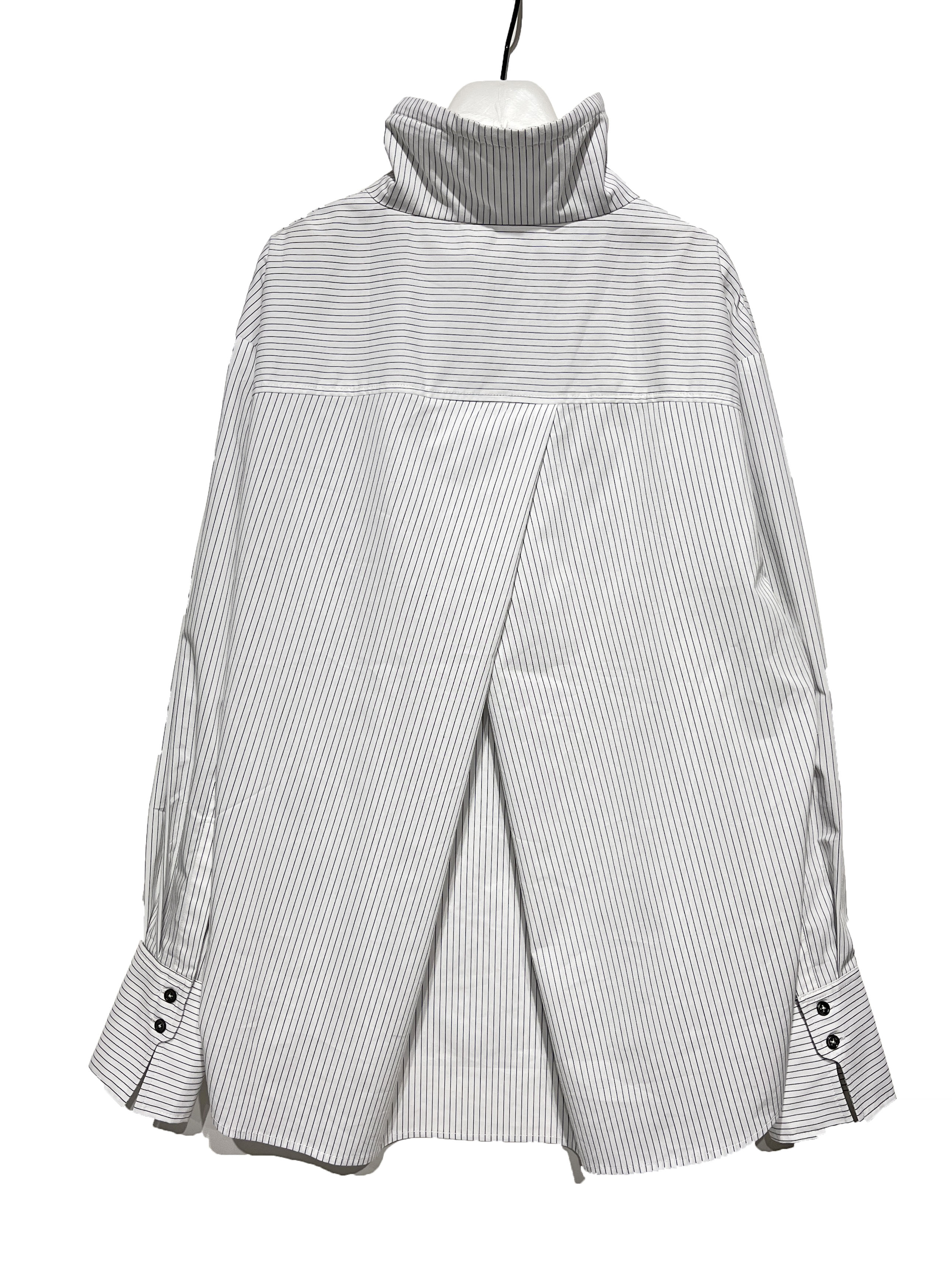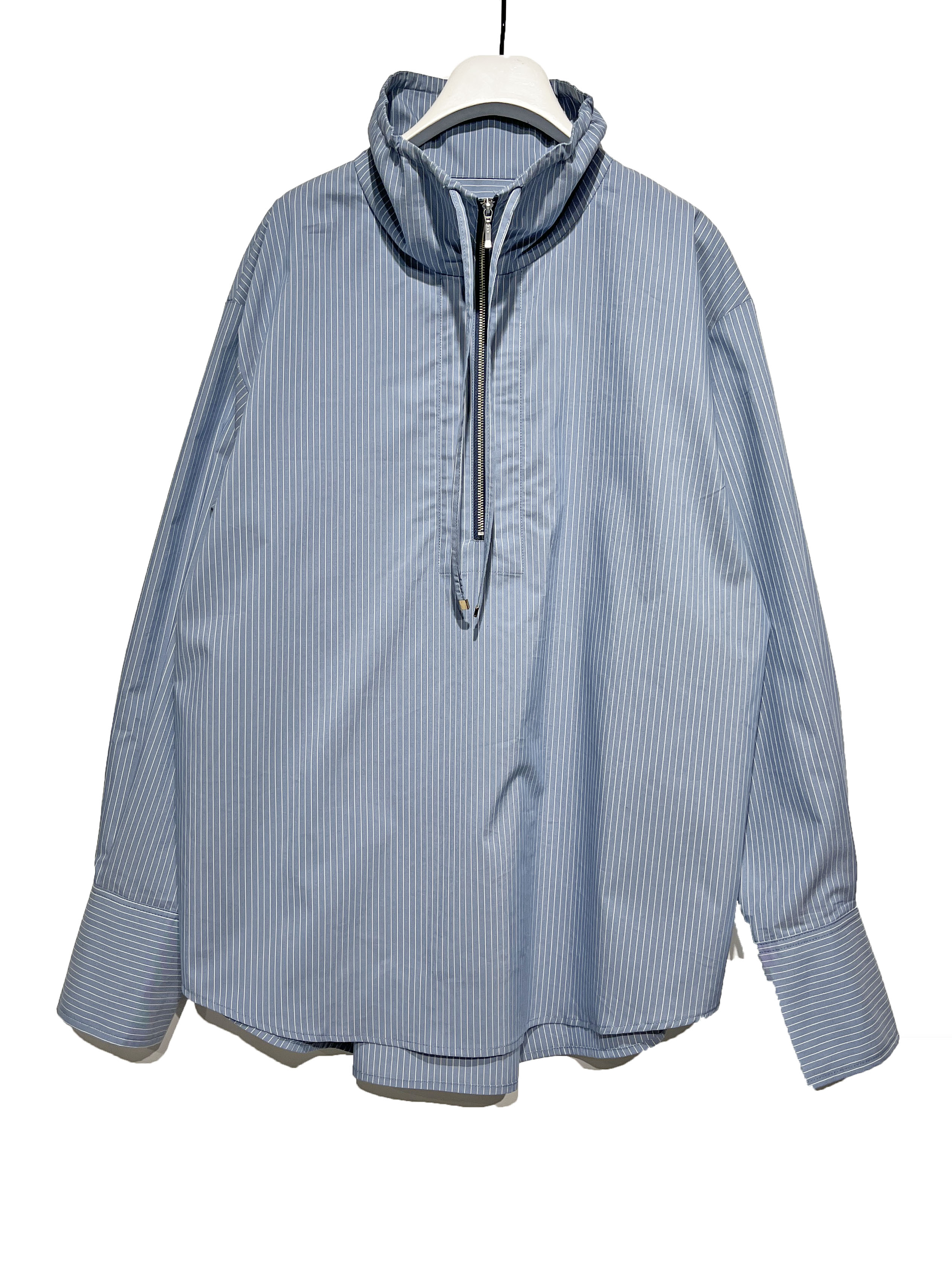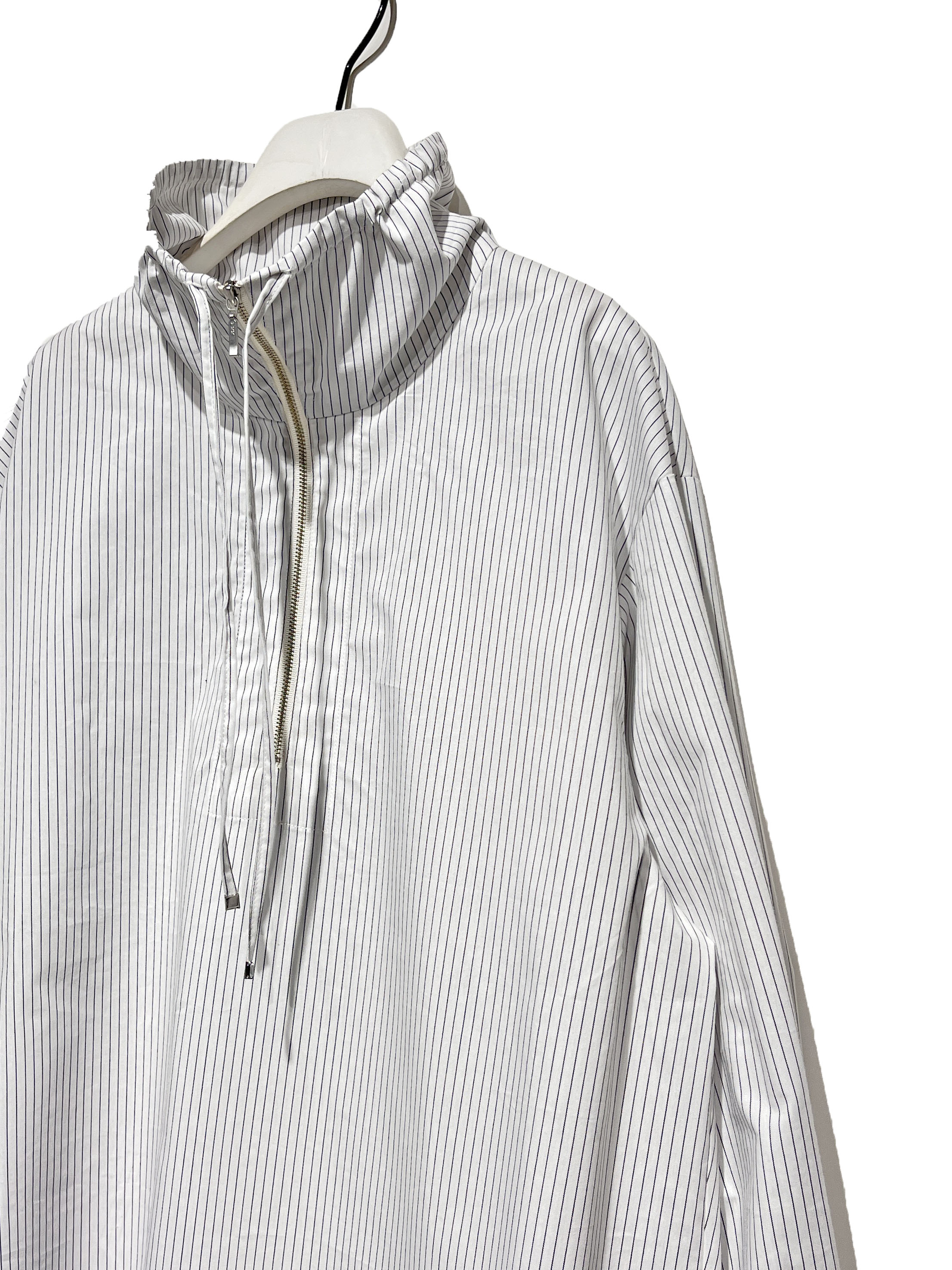 トラッド感のあるストライプのシャツ生地を使用したアノラック風のデザインシャツです。