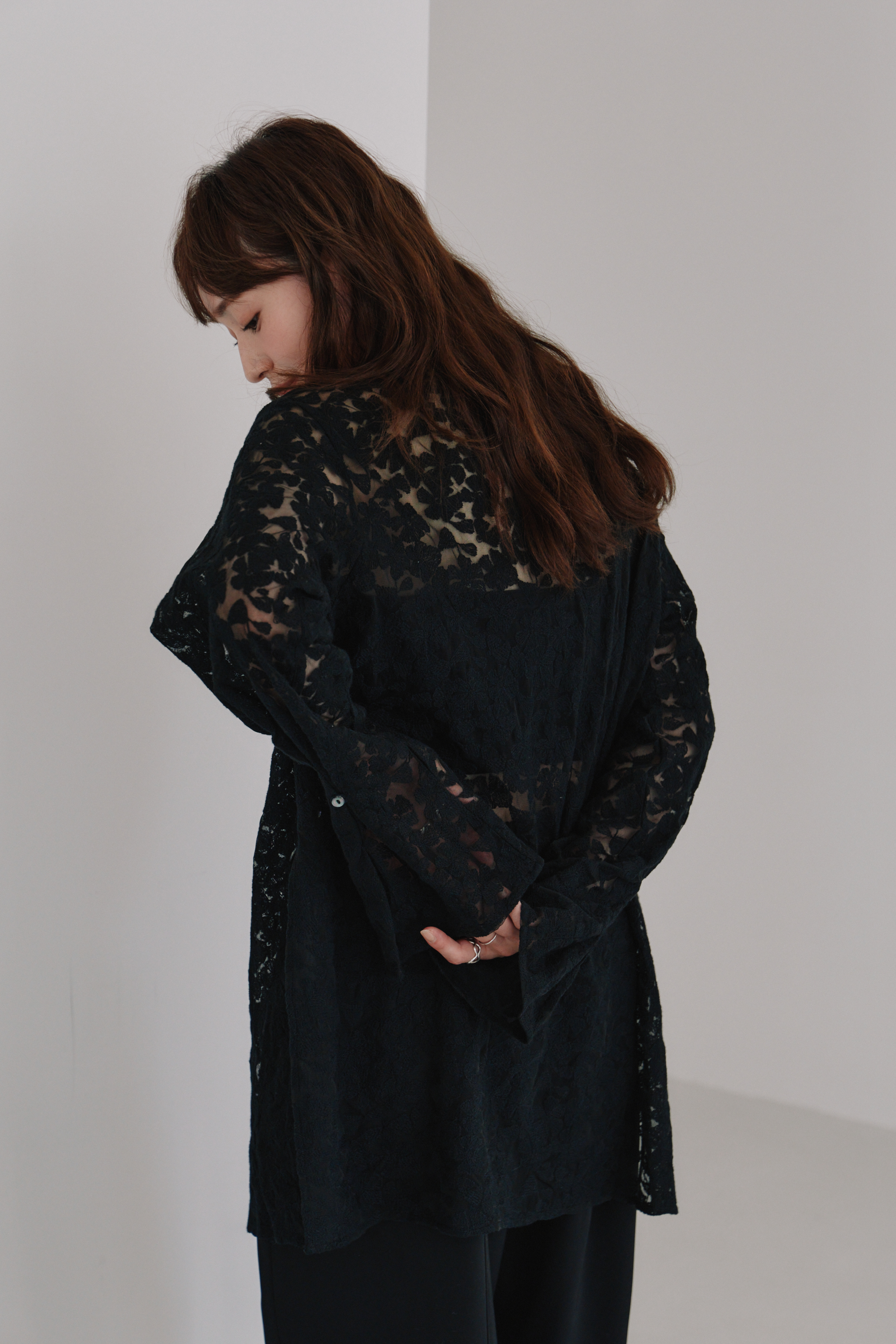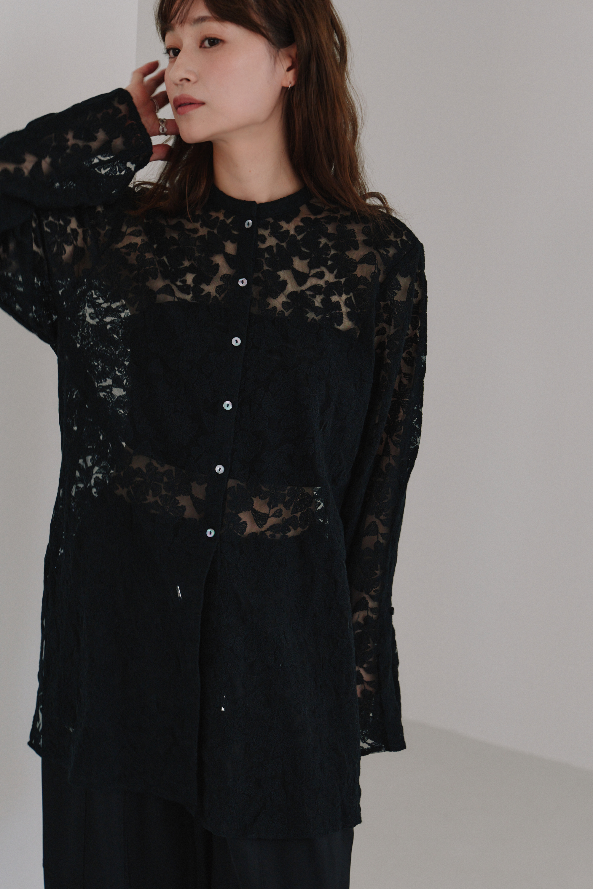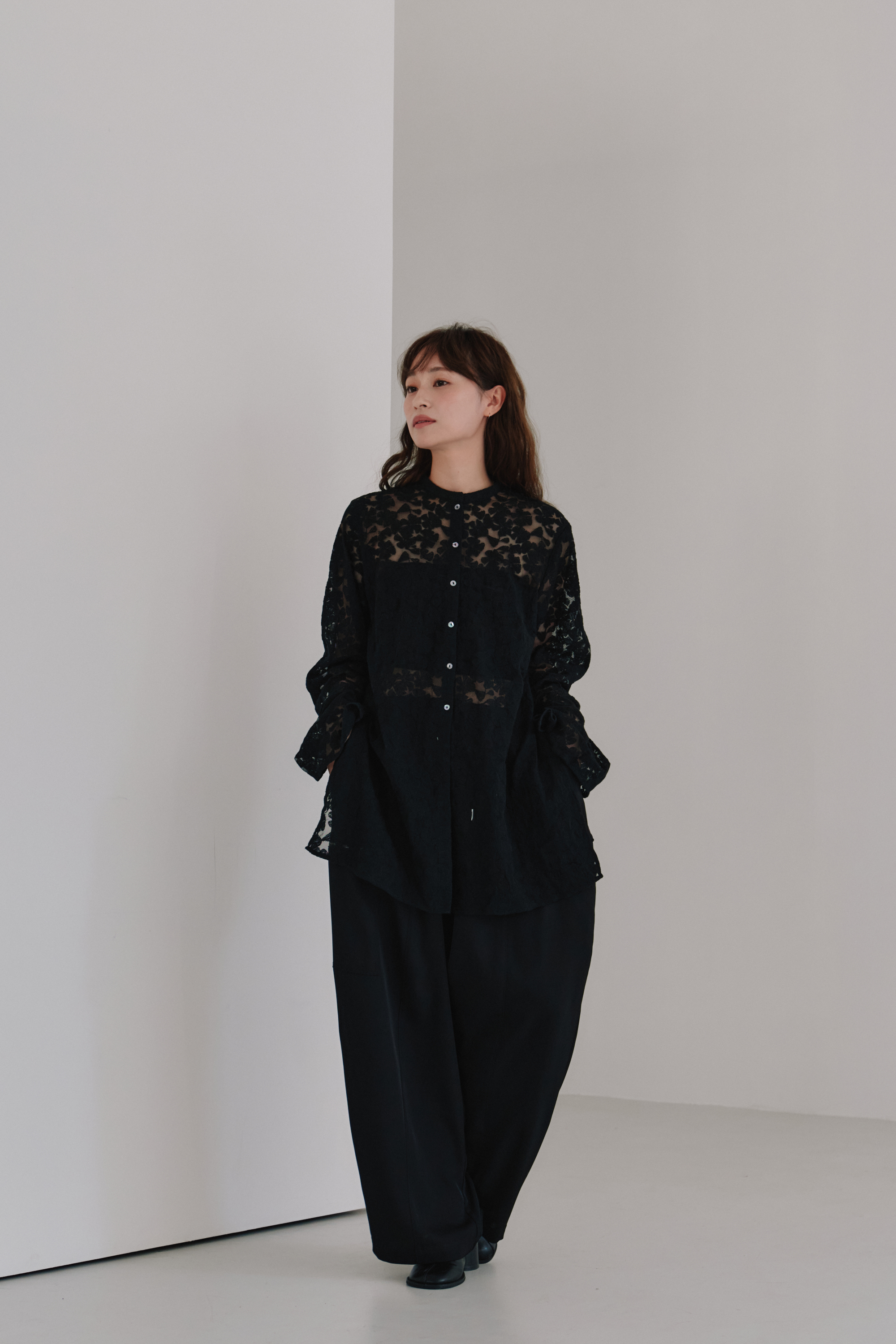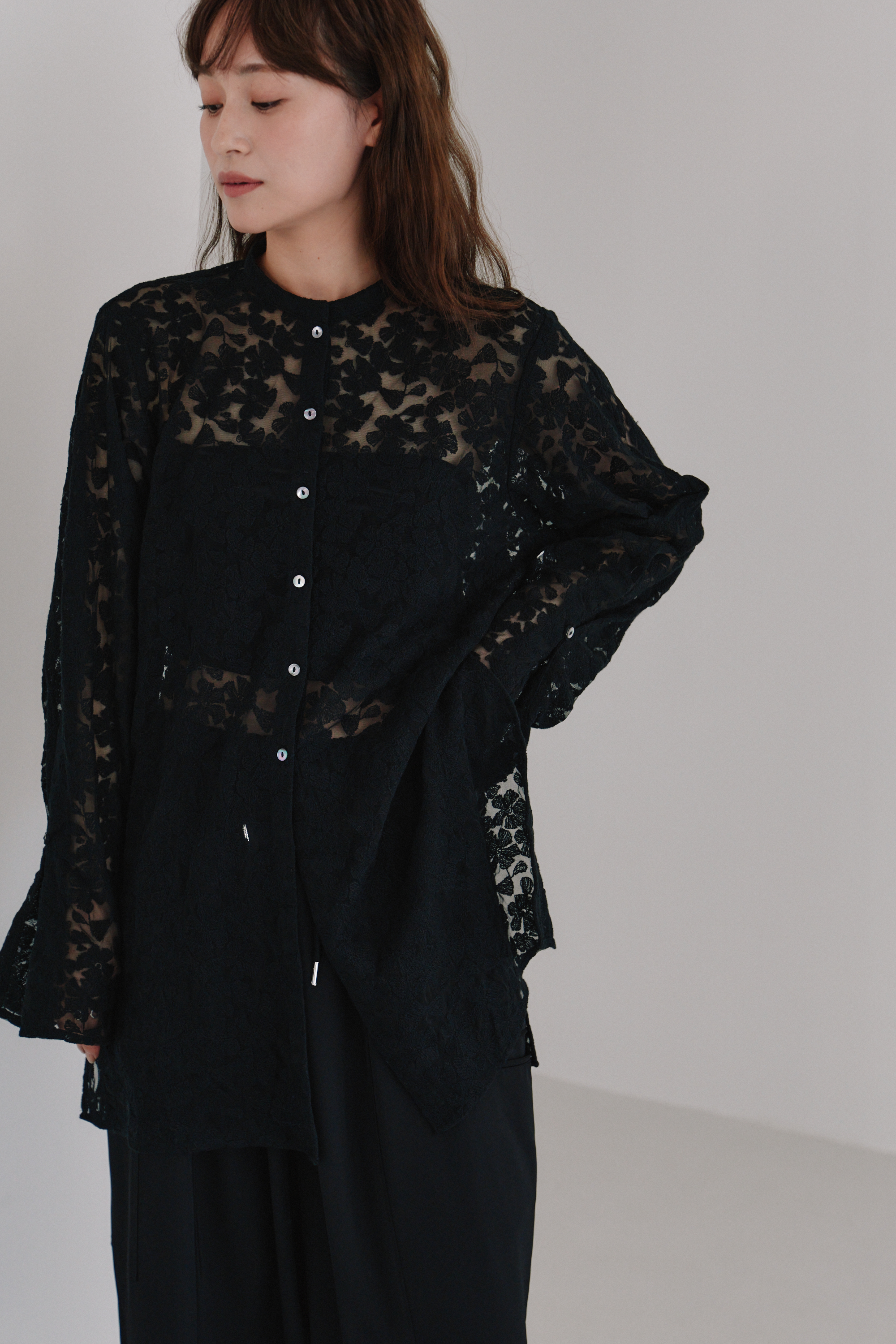 hella ブラックラスト1点 ttulle embroidery shirt h253-14