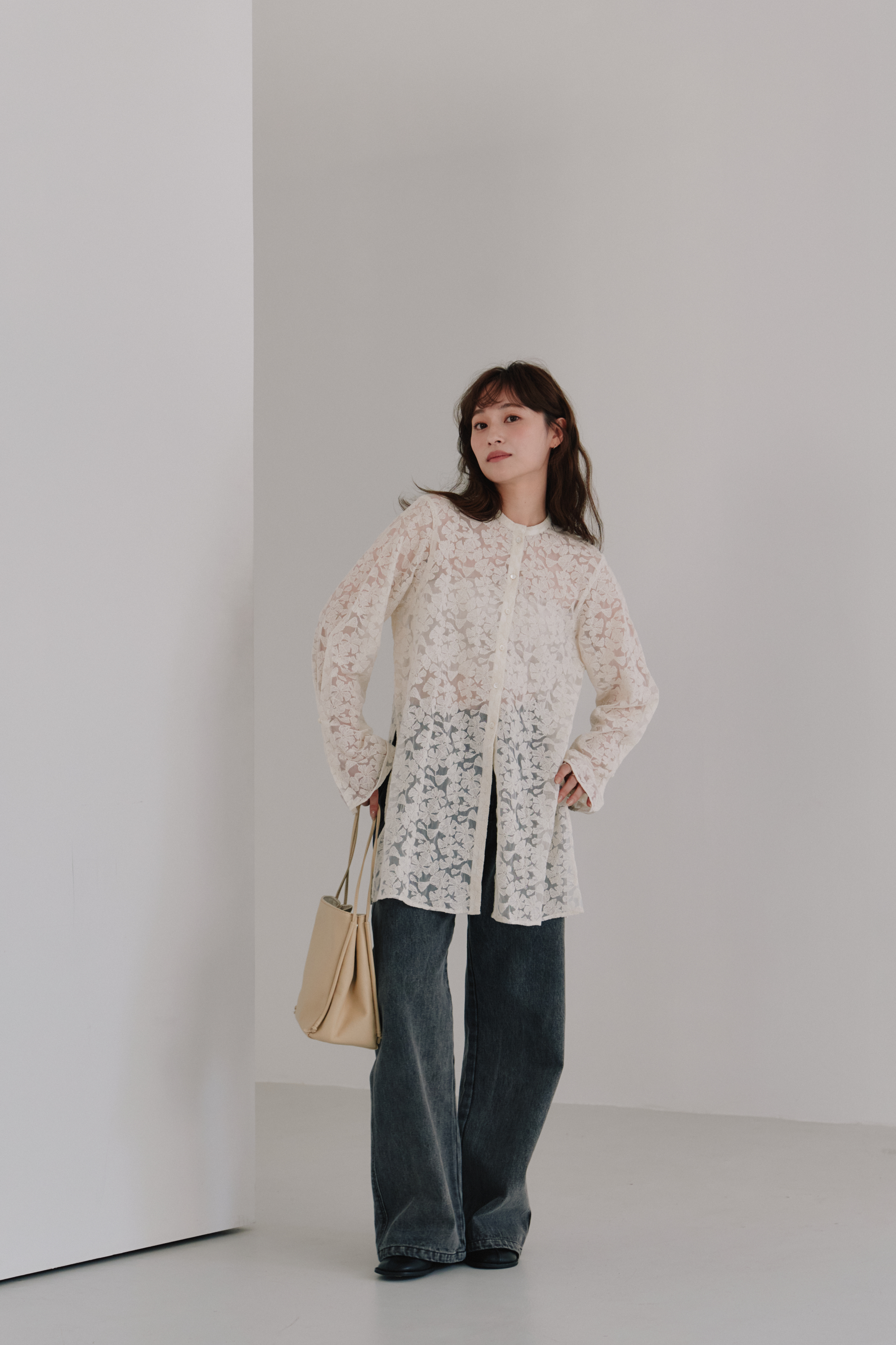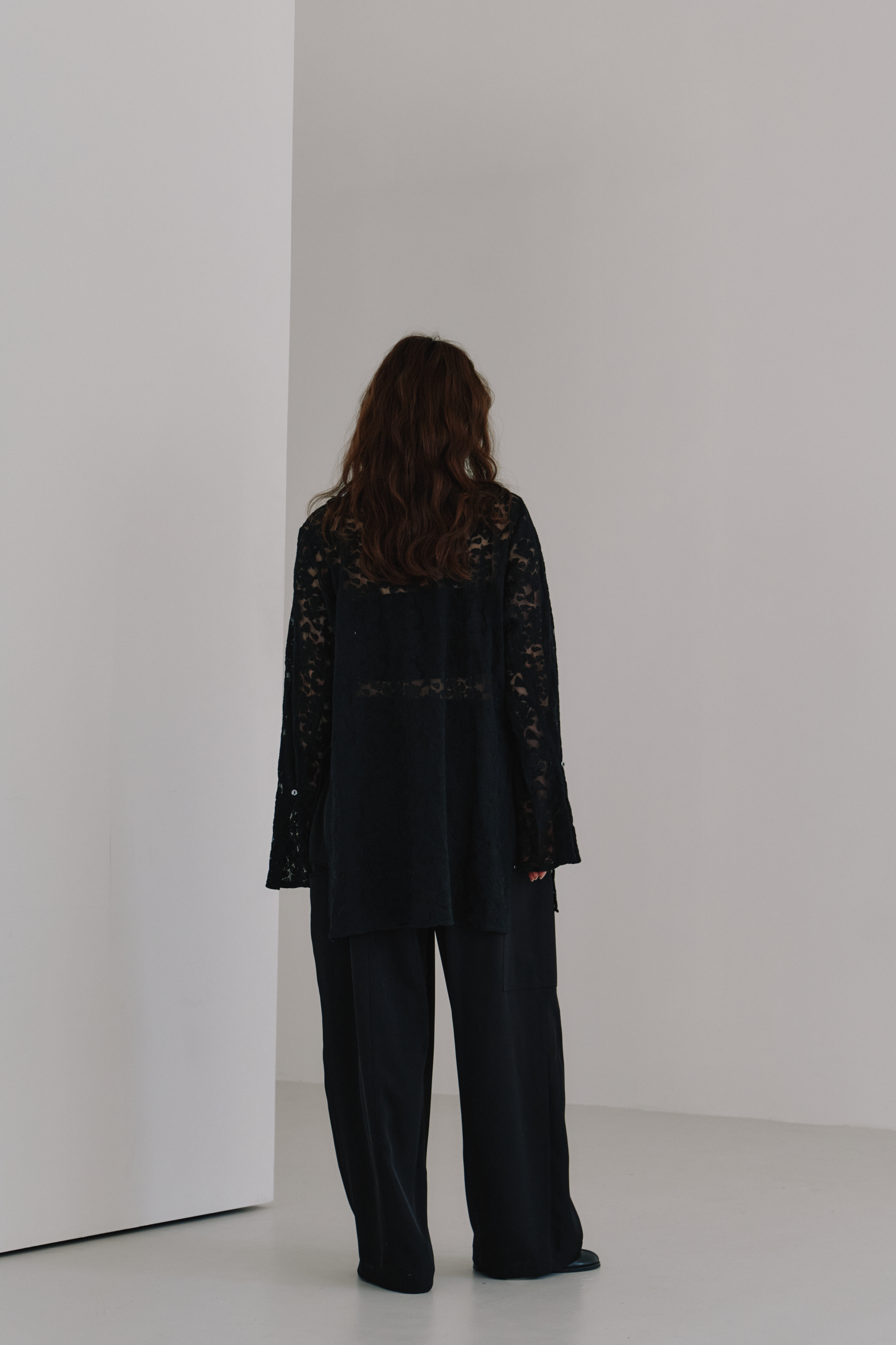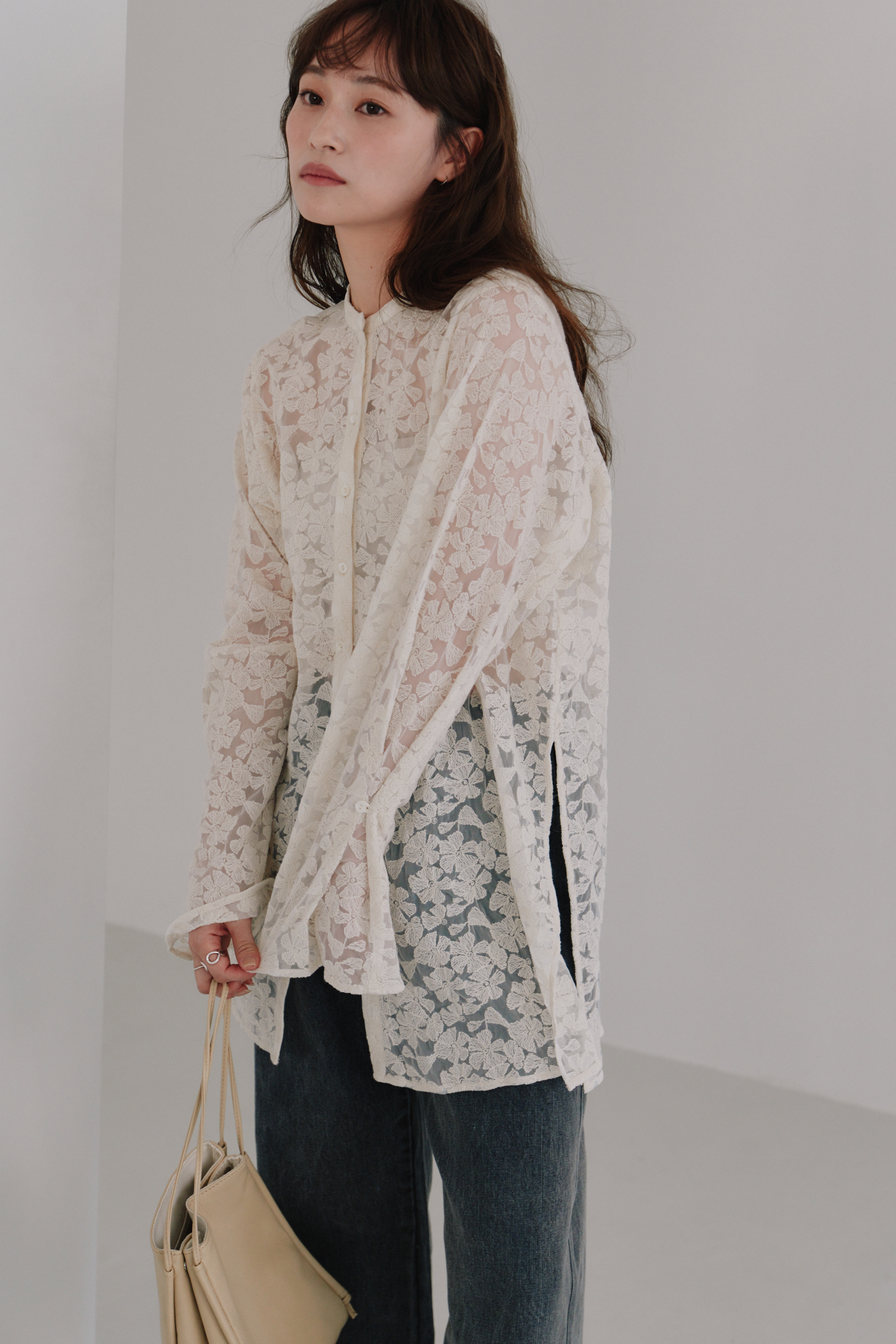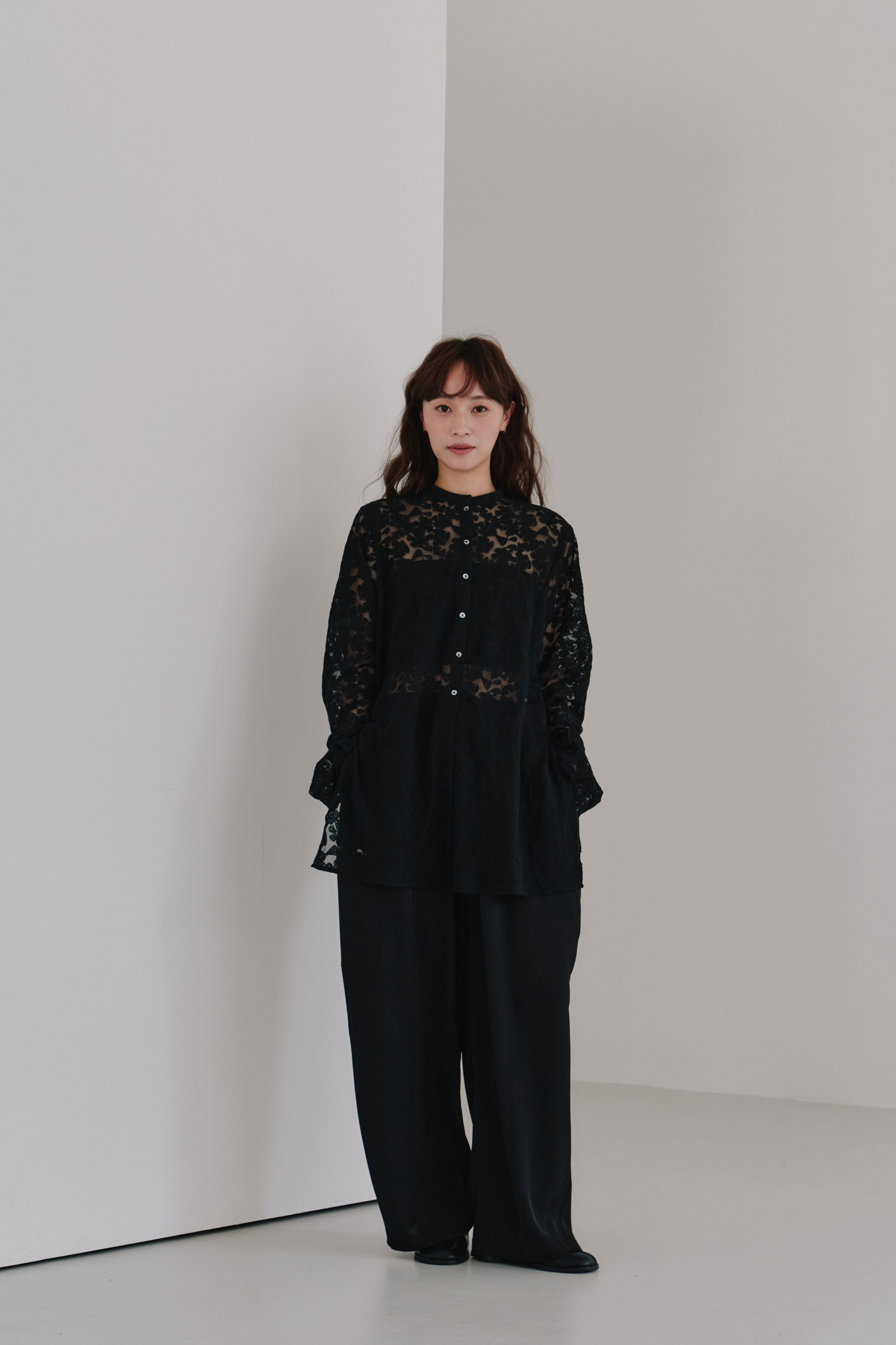 hella ブラックラスト1点 ttulle embroidery shirt h253-14