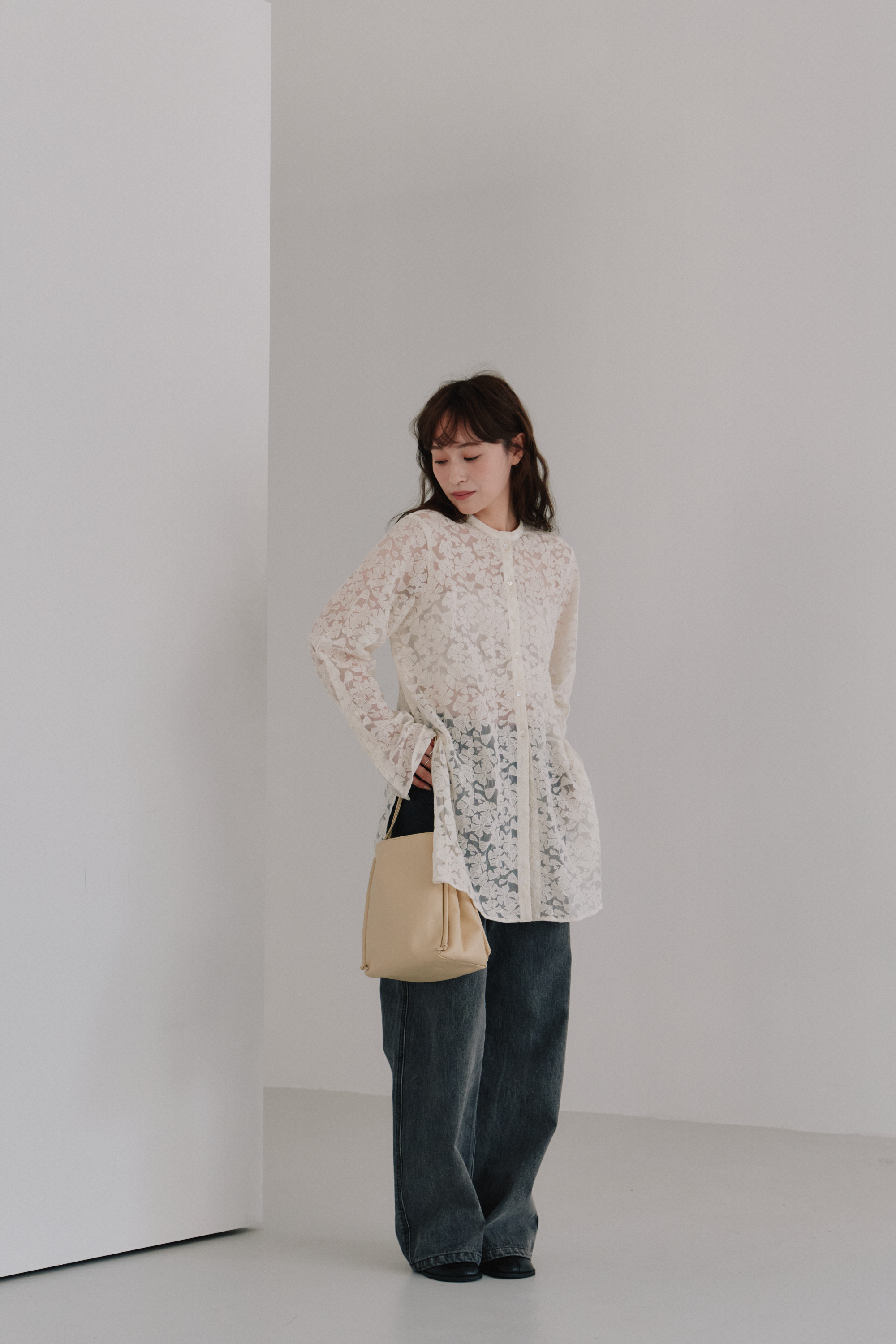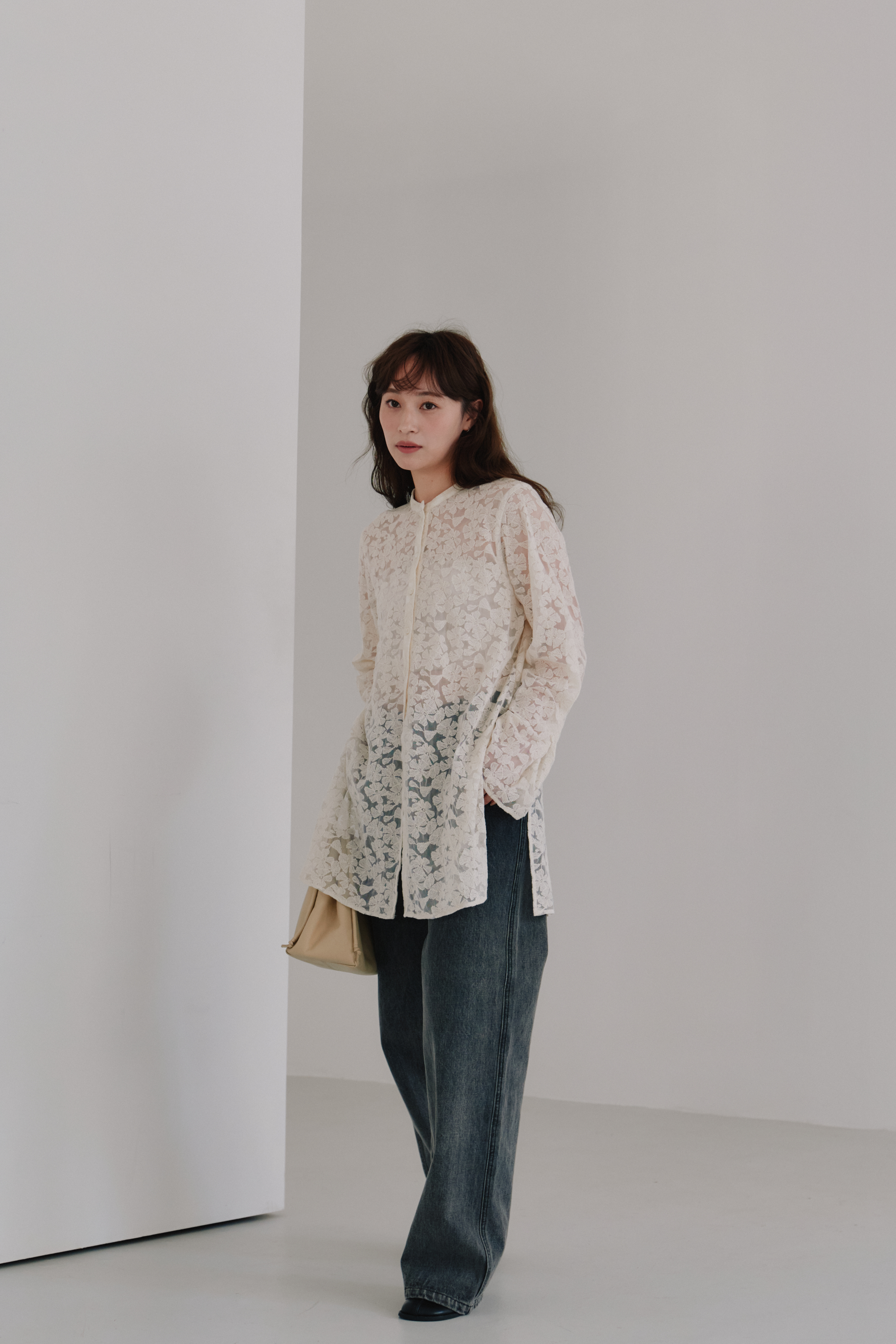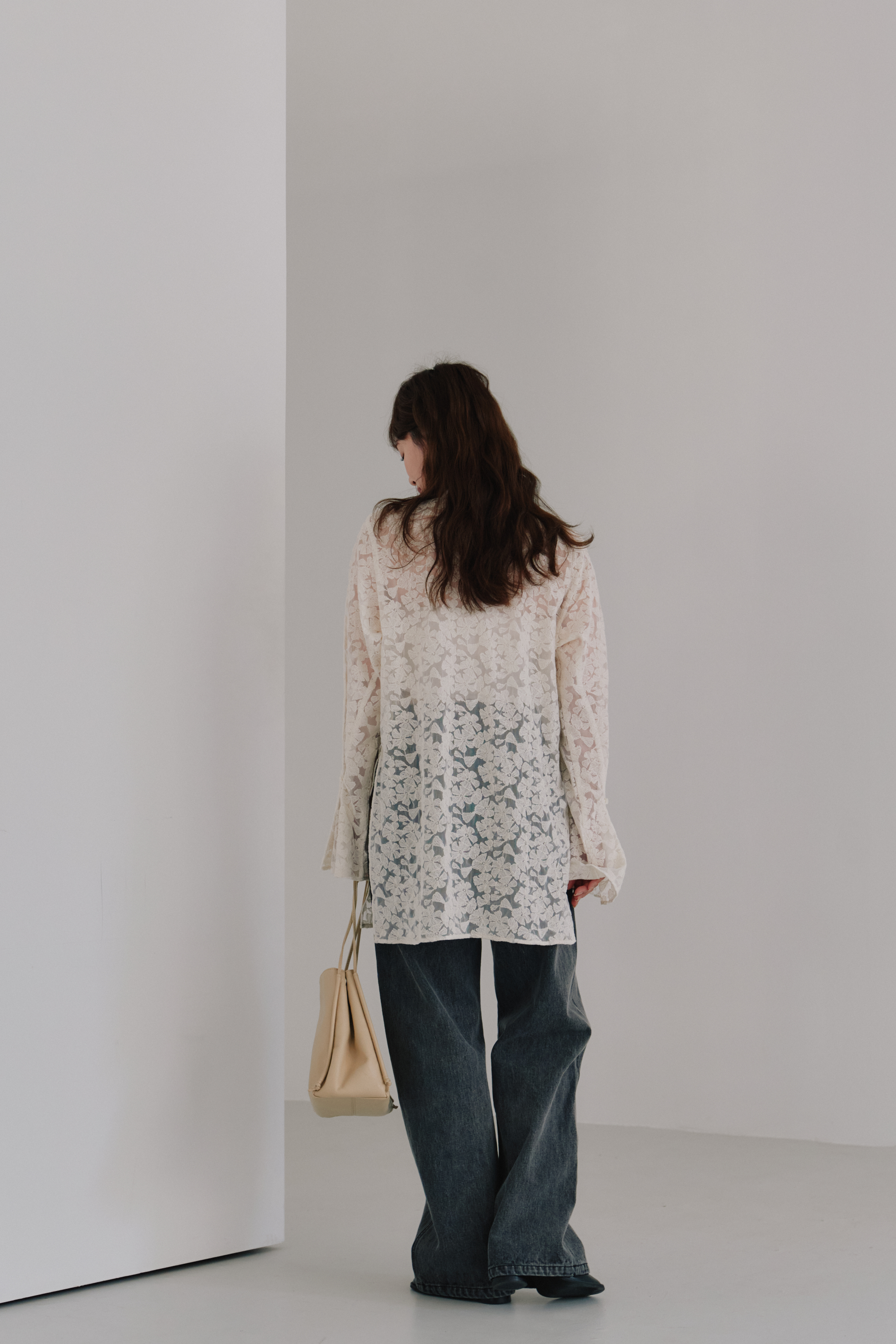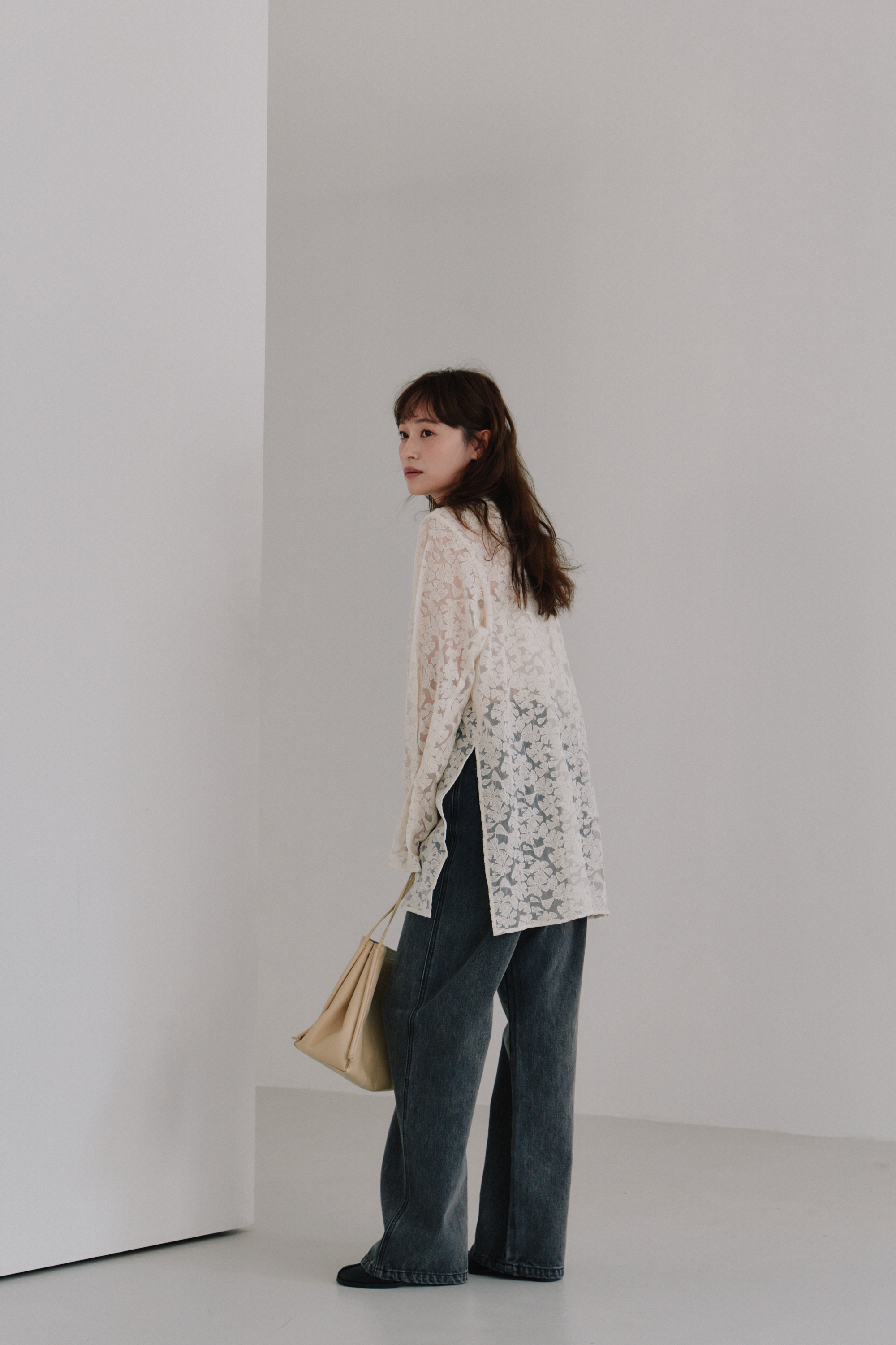 hella ブラックラスト1点 ttulle embroidery shirt h253-14