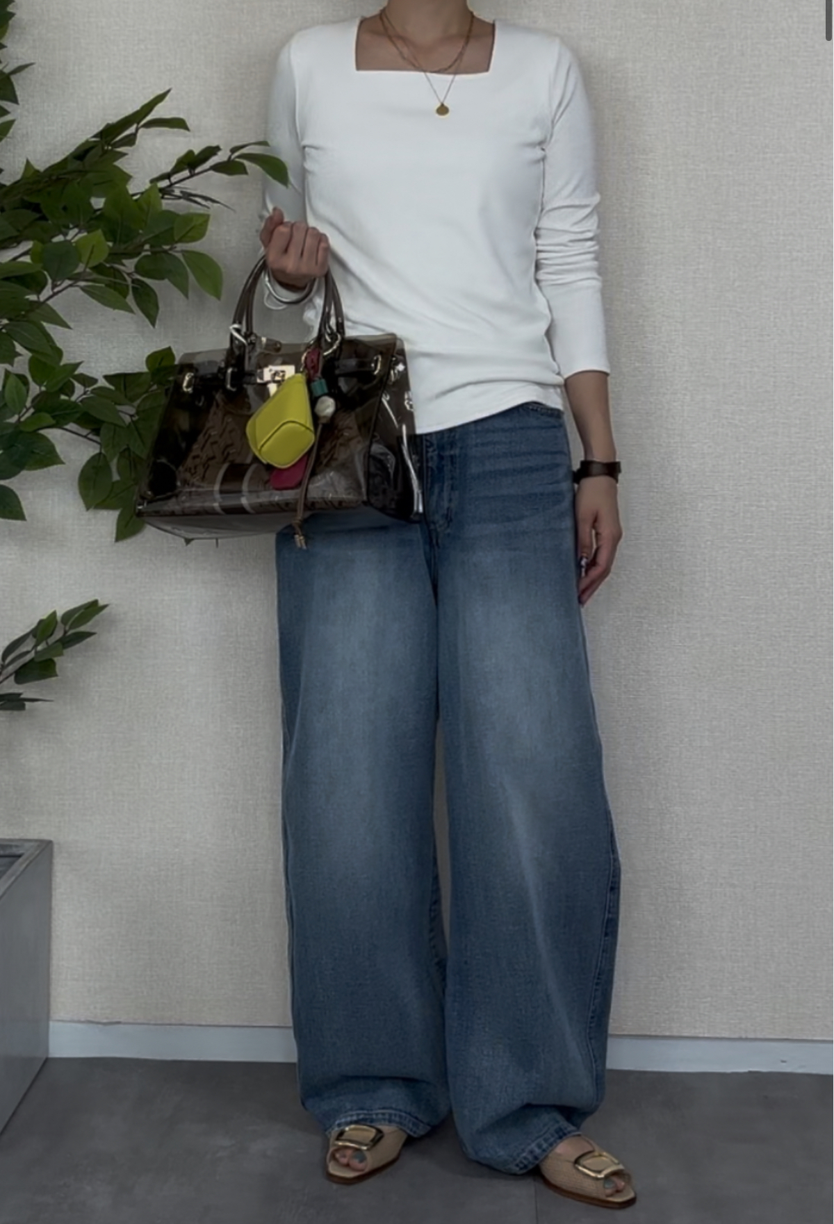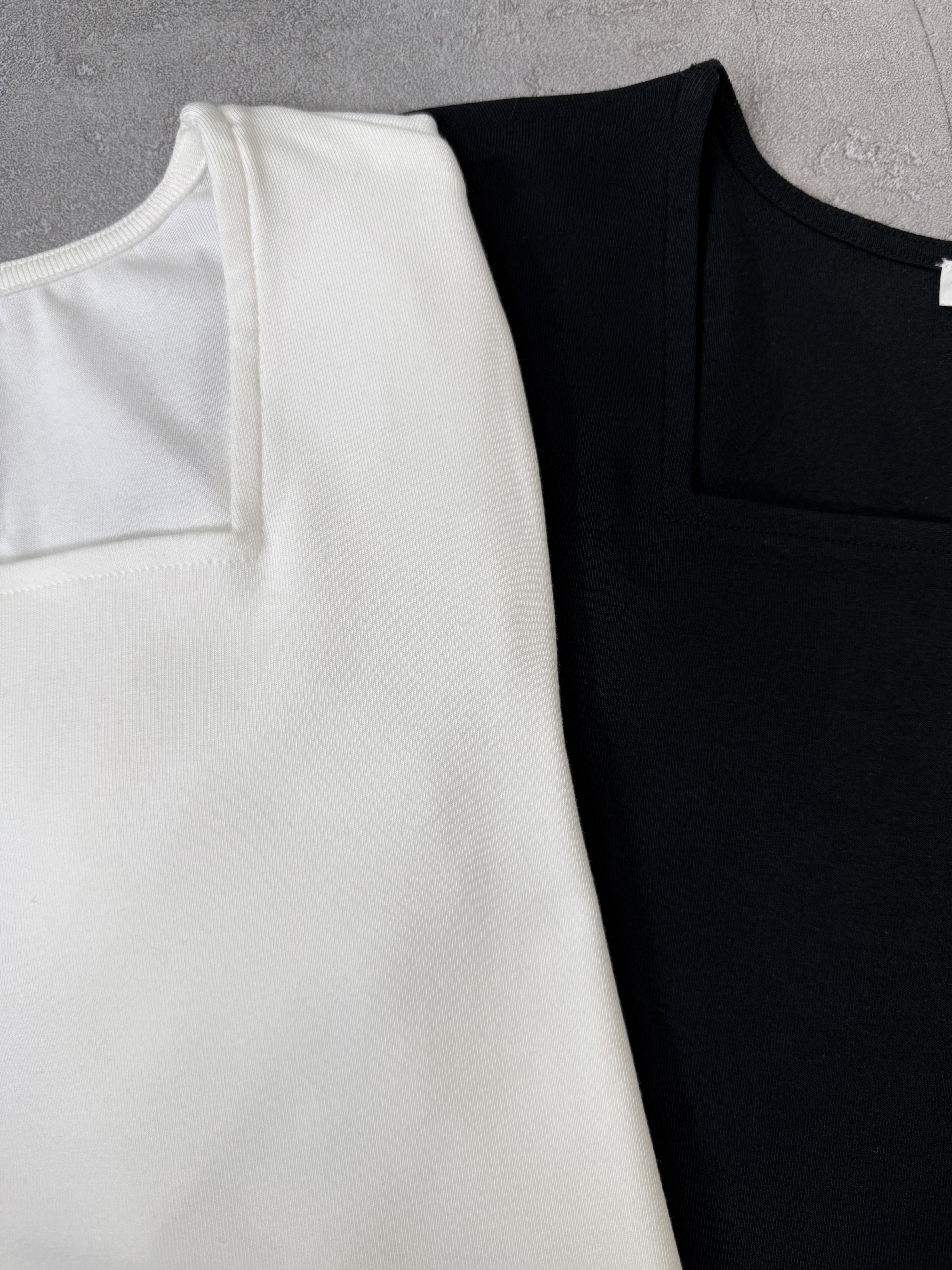デコルテをすっきりと見せてくれお洋服が綺麗にきれるスクエア!