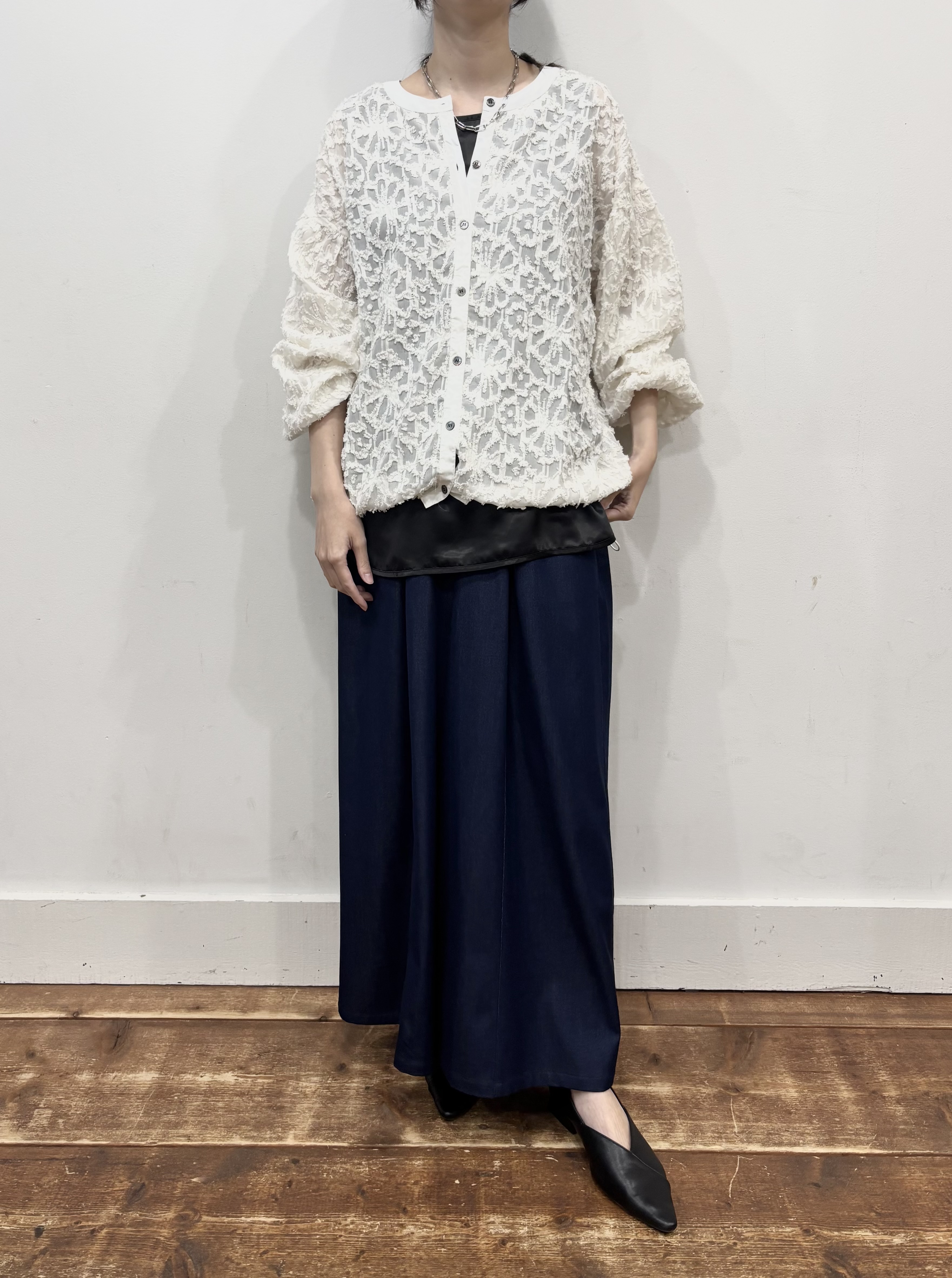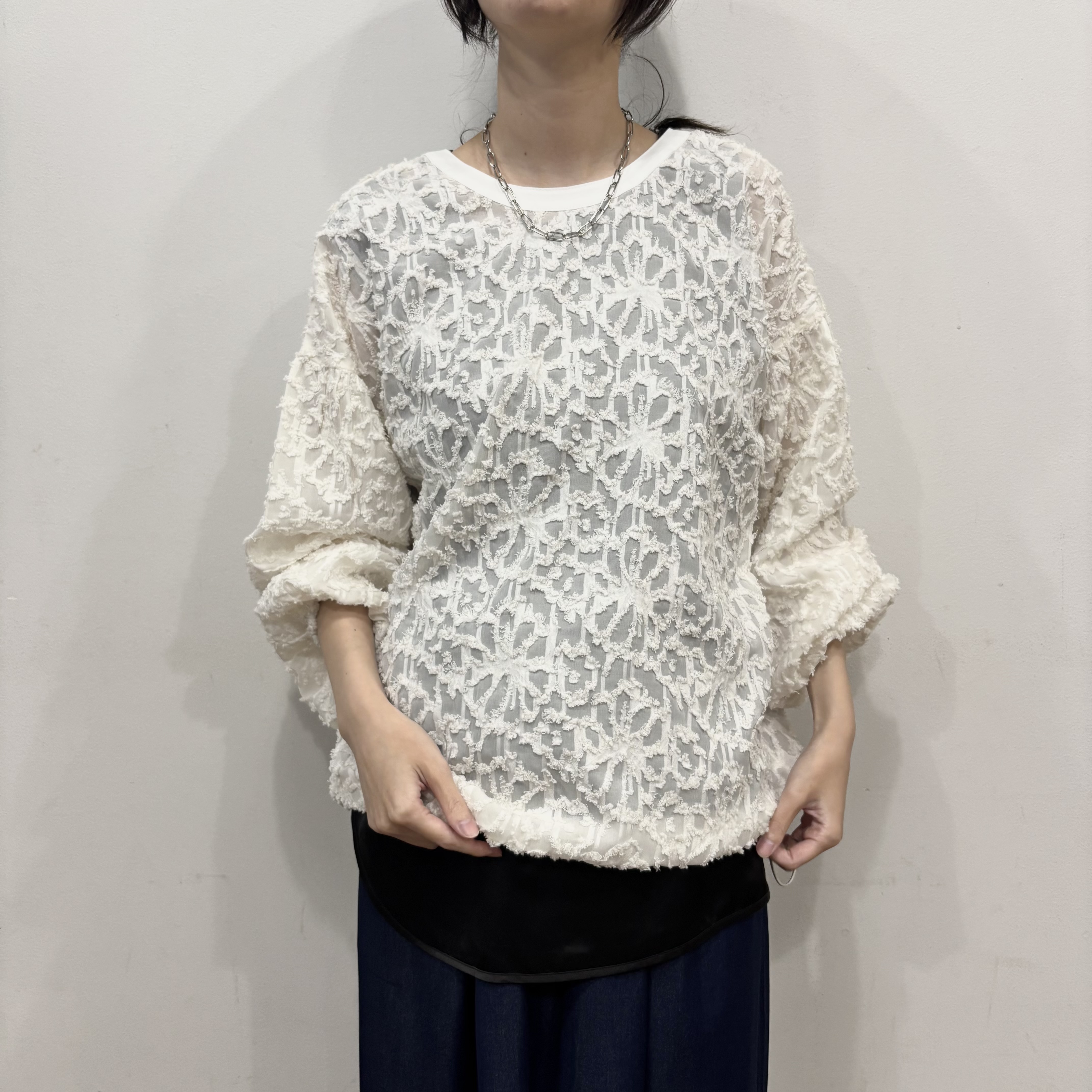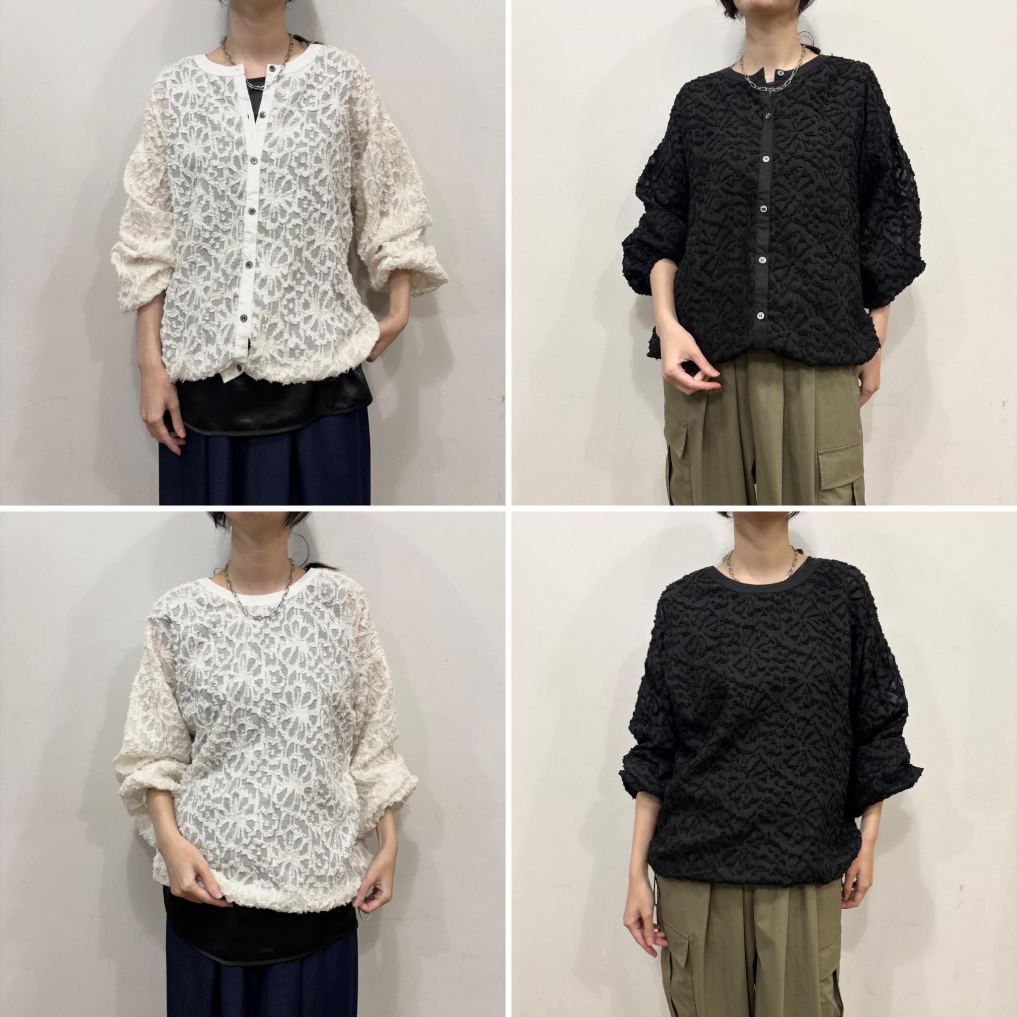 立体感のある表情豊かなカットジャガード素材を使用したパフスリーブシャツ。