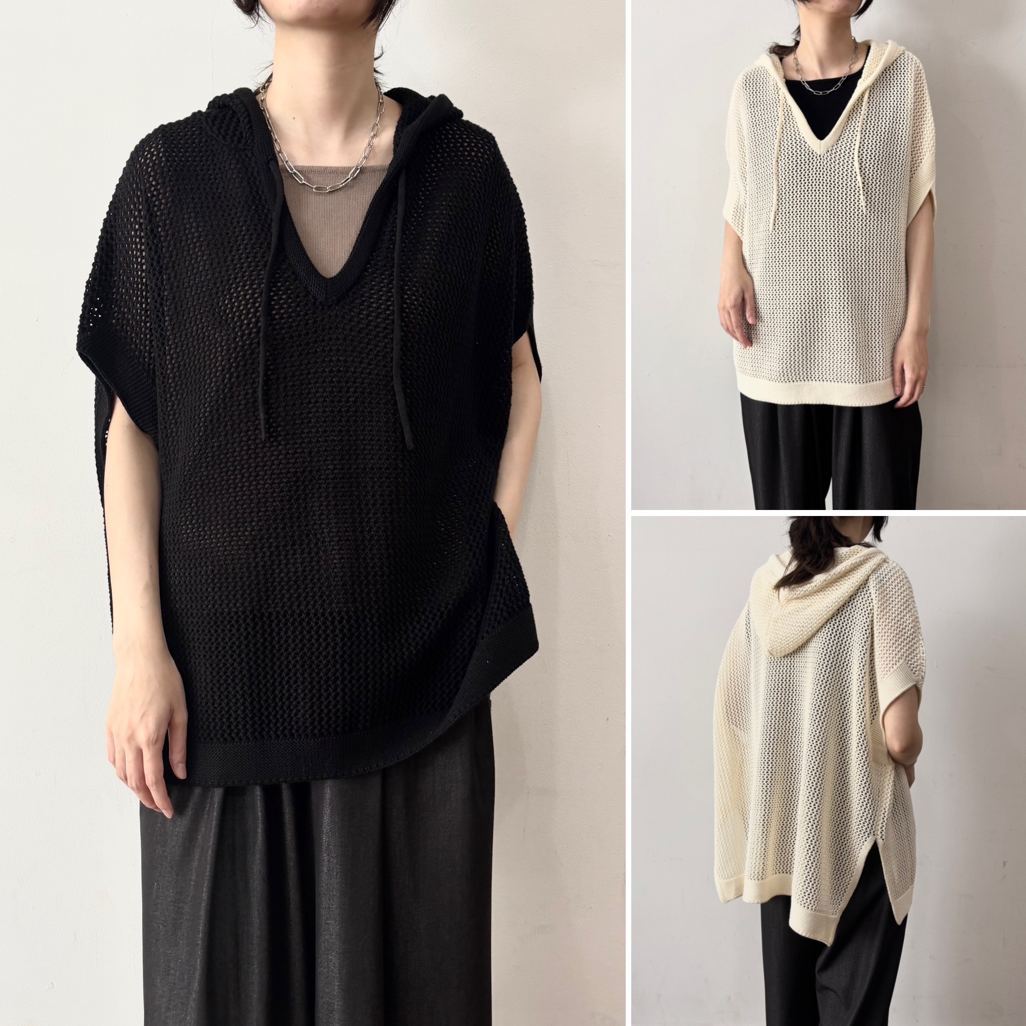 定番のコットンニットをメッシュ編みにしました。