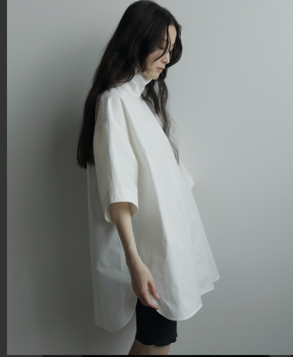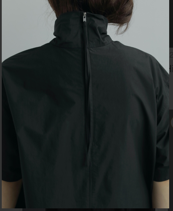 ハイネックデザインがモードな印象のオーバーブラウス。