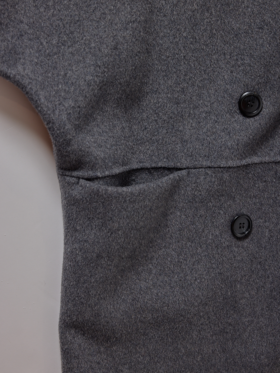 リバー仕立てのピーコートです。 リバー仕立てとは、2枚の生地を貼り合わせ、手作業でまつり縫いをすることで、縫い目が見えない洗練されたデザインになる仕立てで、軽くて柔らかい着心地が特徴です。