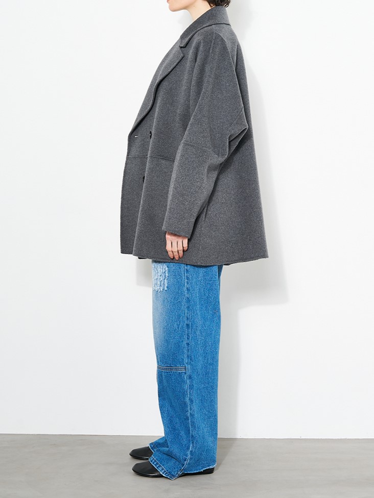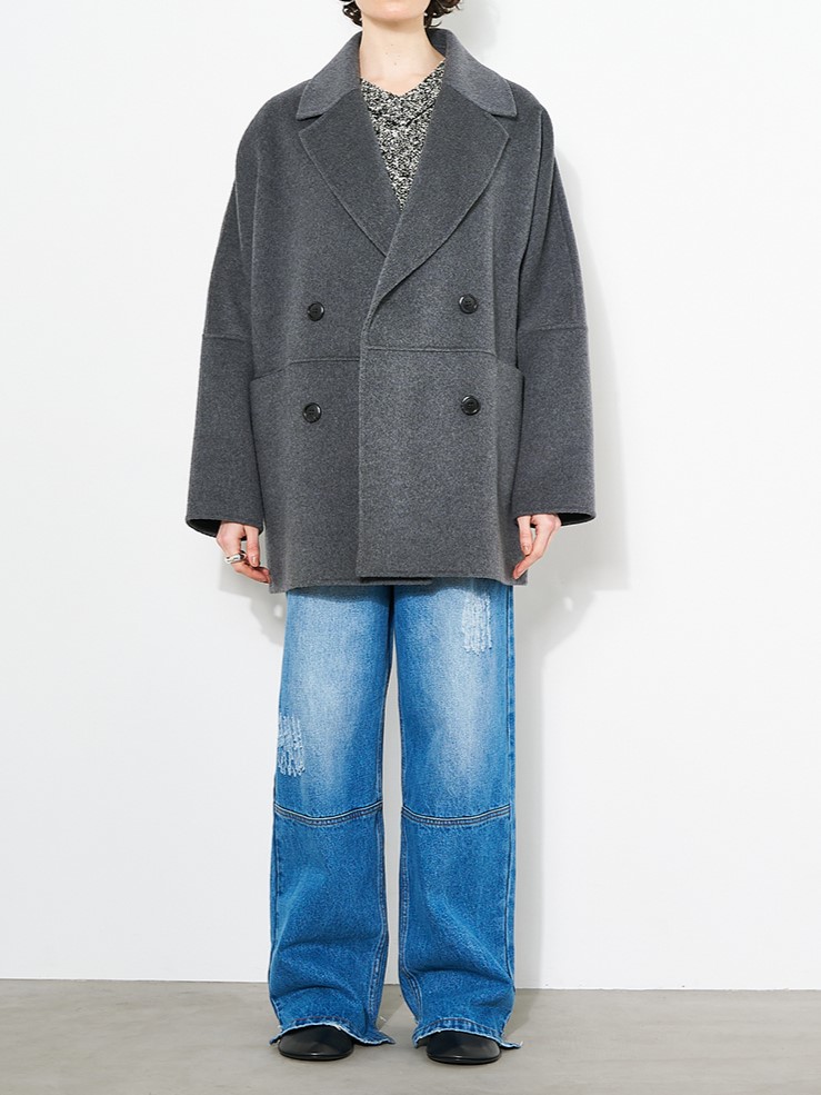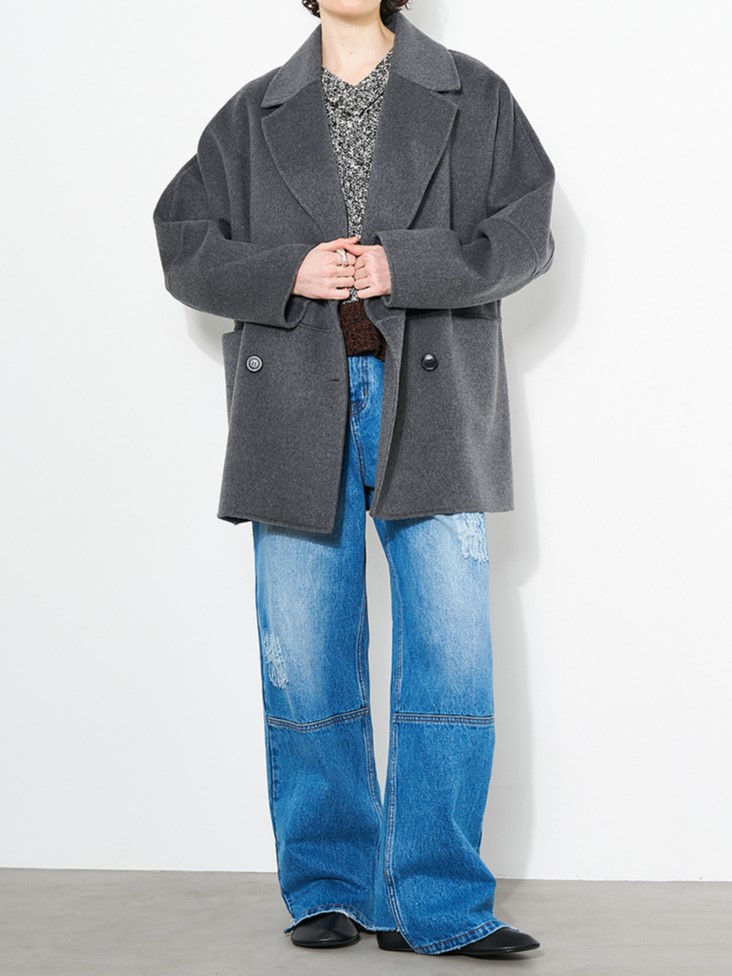 一般的なピーコートよりもゆったりとしたサイズ感で、リラックスした雰囲気を演出。