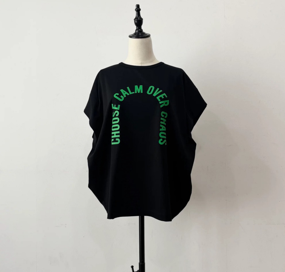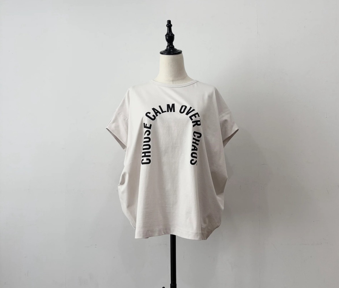 袖部分をタックにすることで、二の腕をカバーすることができるフレンチスリーブのデザインTシャツ。