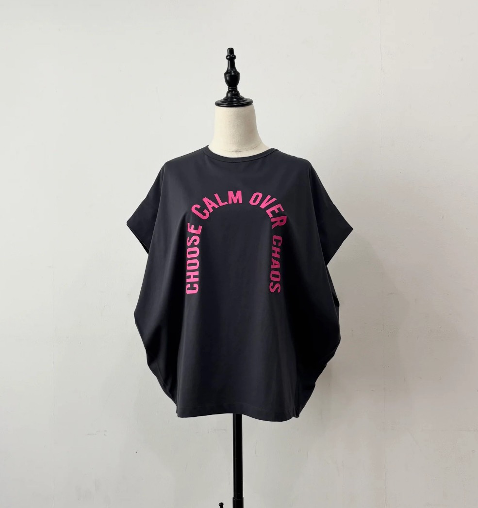 裾にかけてややコクーンシルエットにすることでパンツやスカート、様々なボトムスに合わせやすくなっています。