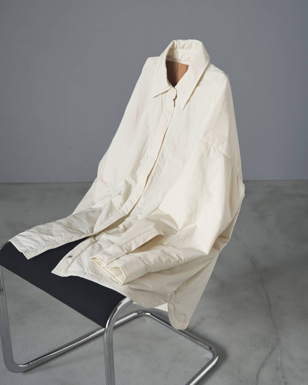 薄く中綿を入れたオーバーシャツ。フロントは金属スナップ開きデザインで仕上げ、アウター感覚で着ていただける一着。羽織りとして着た際も便利なサイドポケット付きで、着た際の軽さも魅力。オーバーサイズのコートの中に着て、寒い日の防寒用としてレイヤードするのもおすすめです。