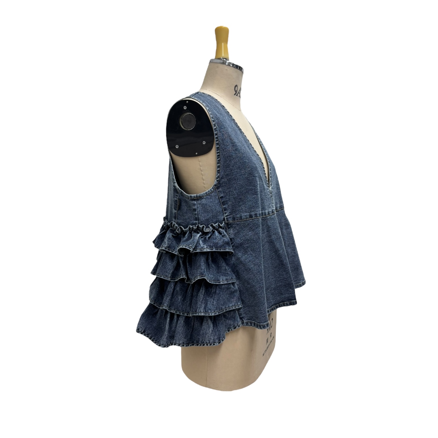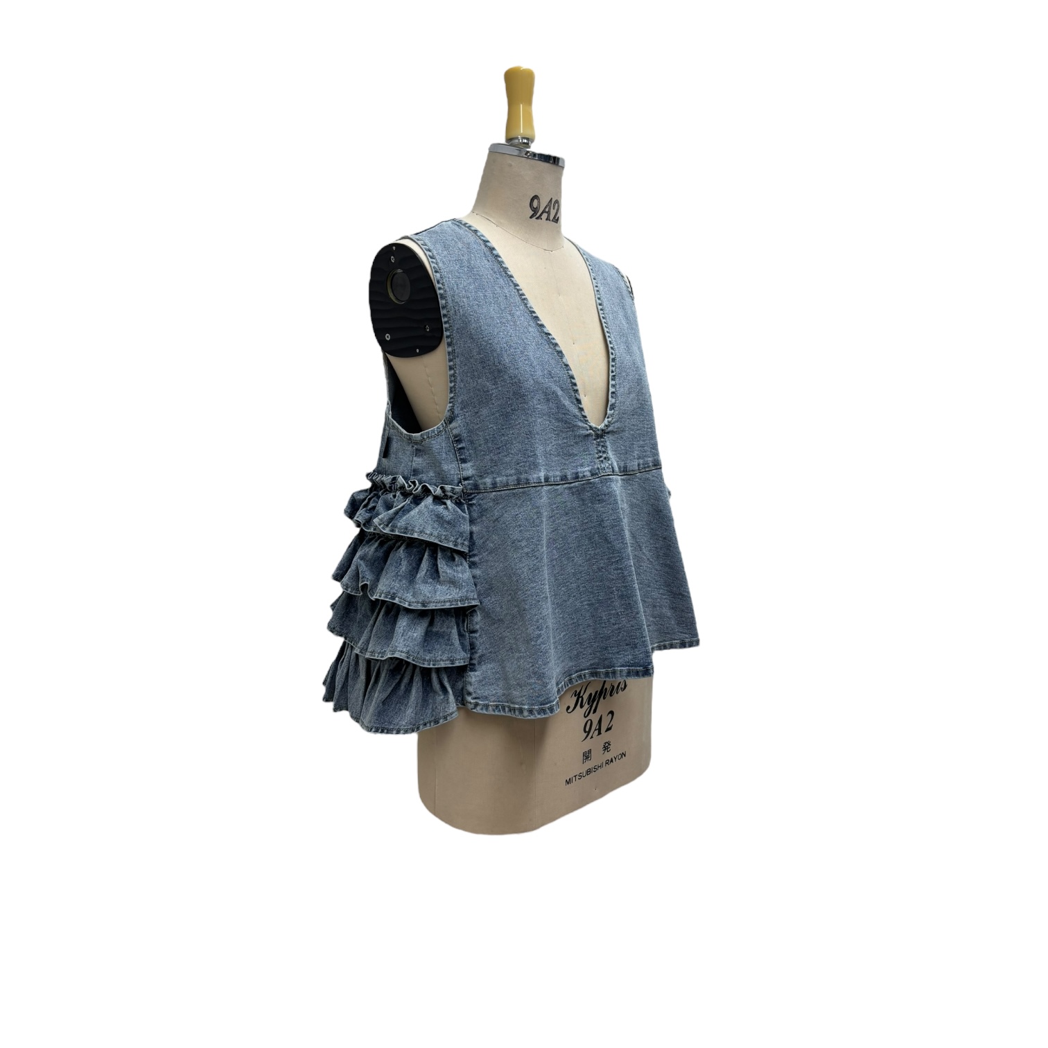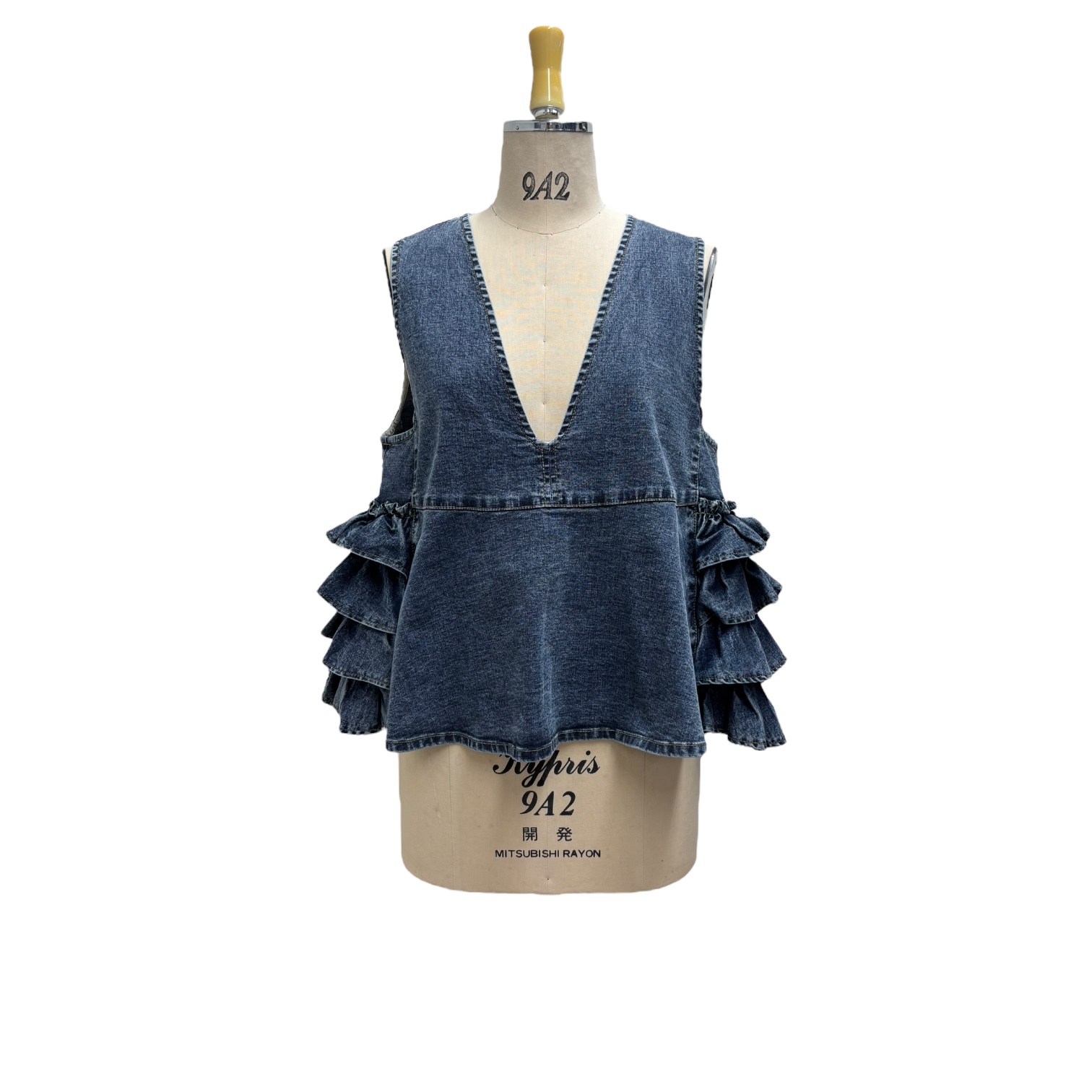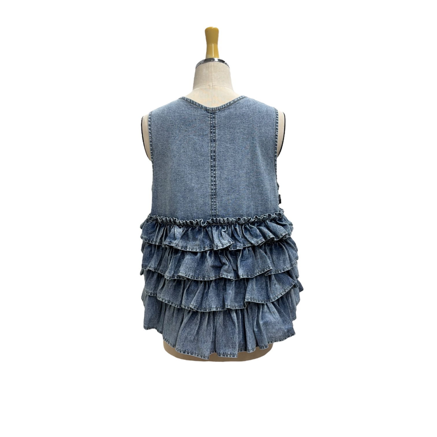 ayane26SSご予約 デニム地バックフリルベスト 816315 納期2月中旬~下旬