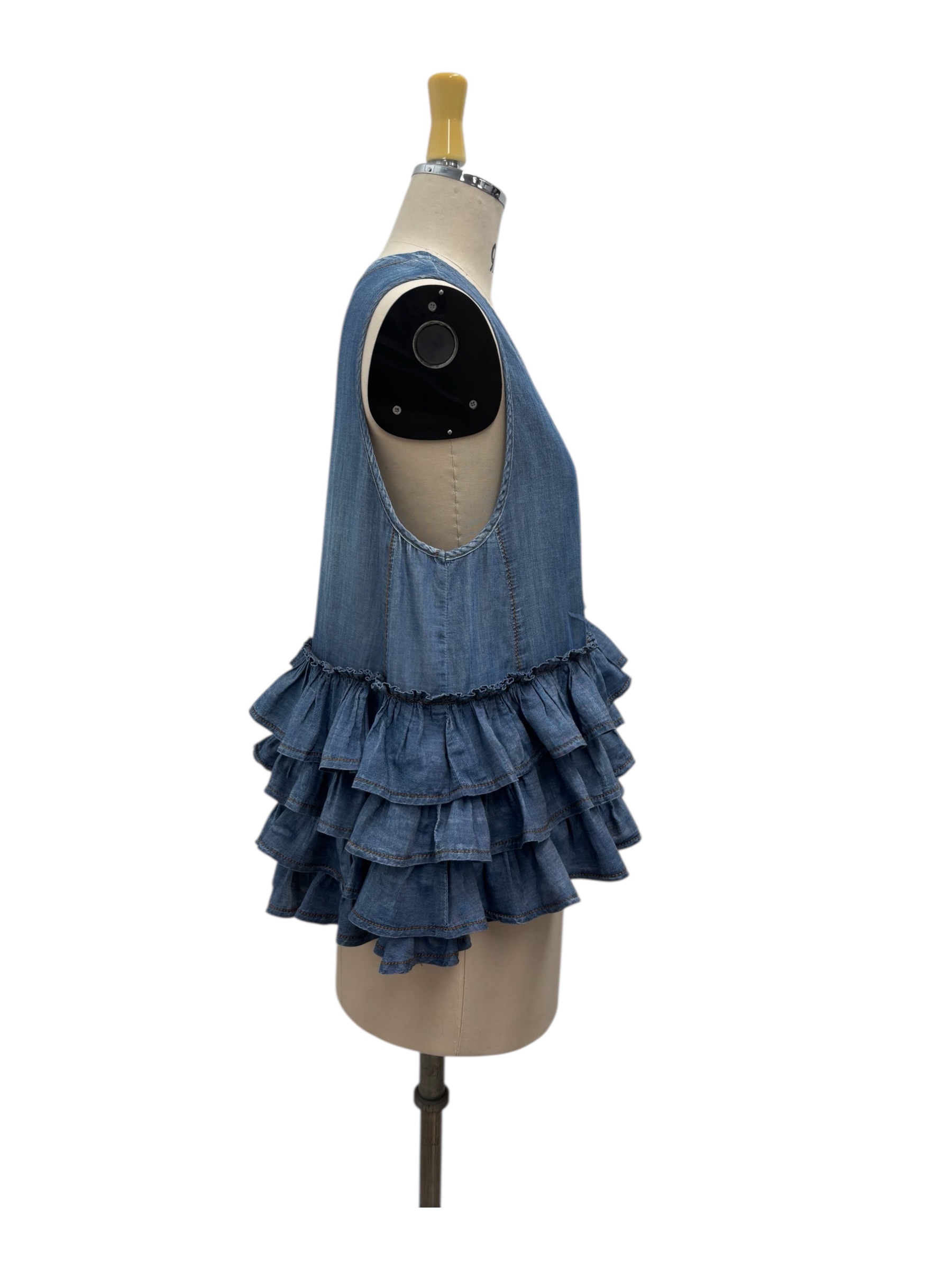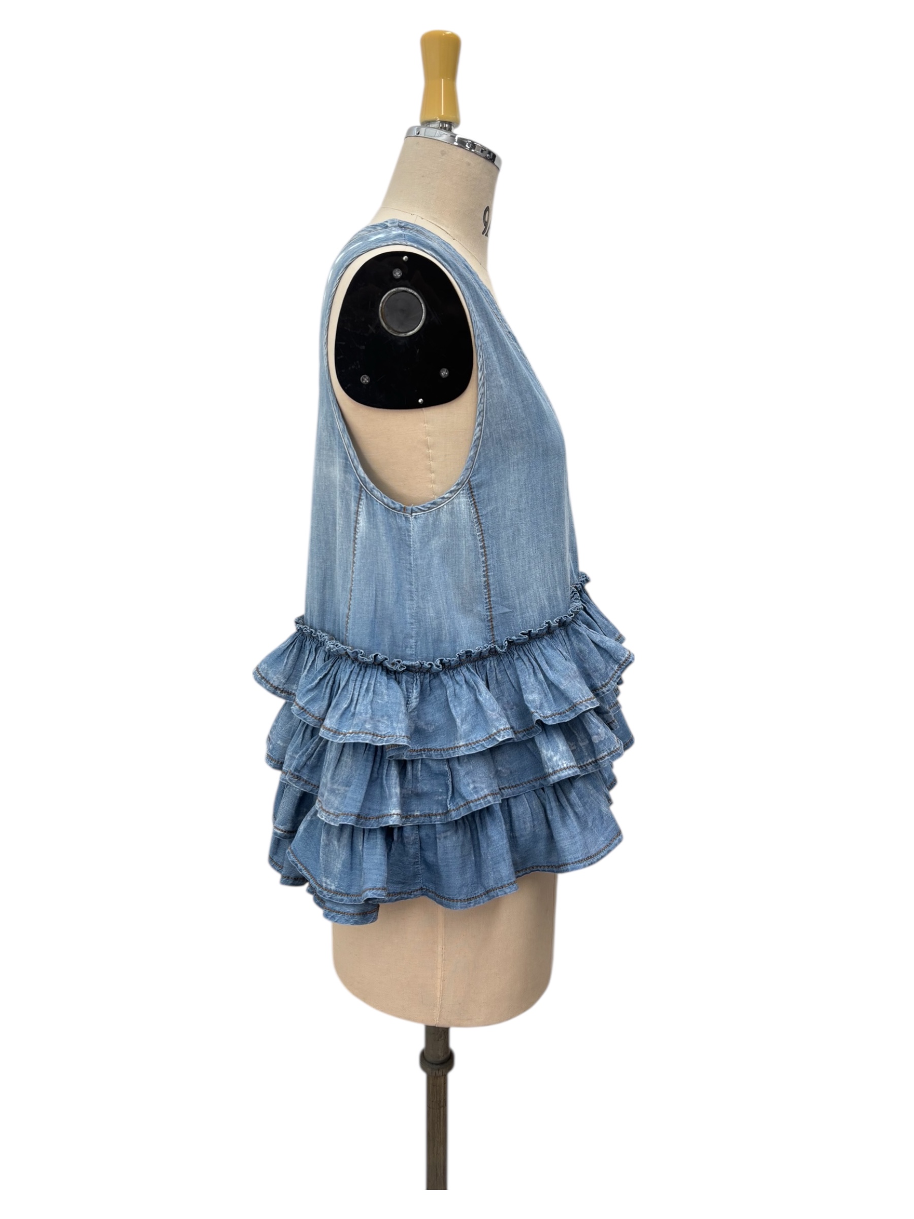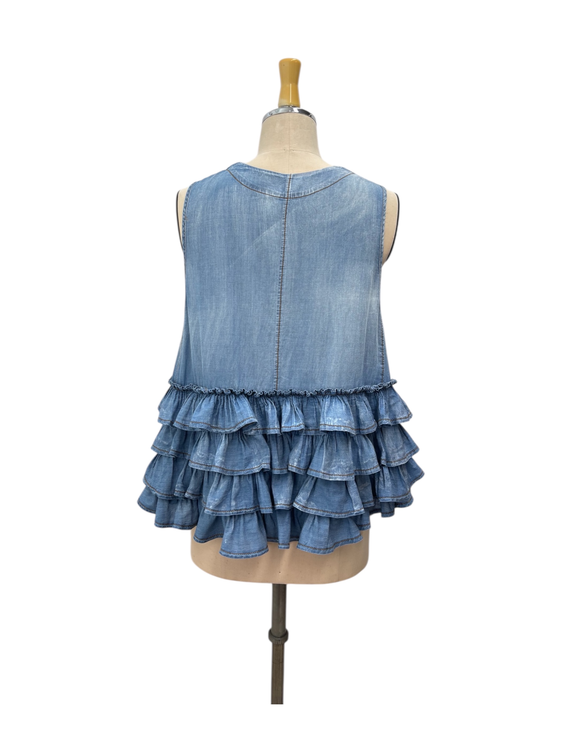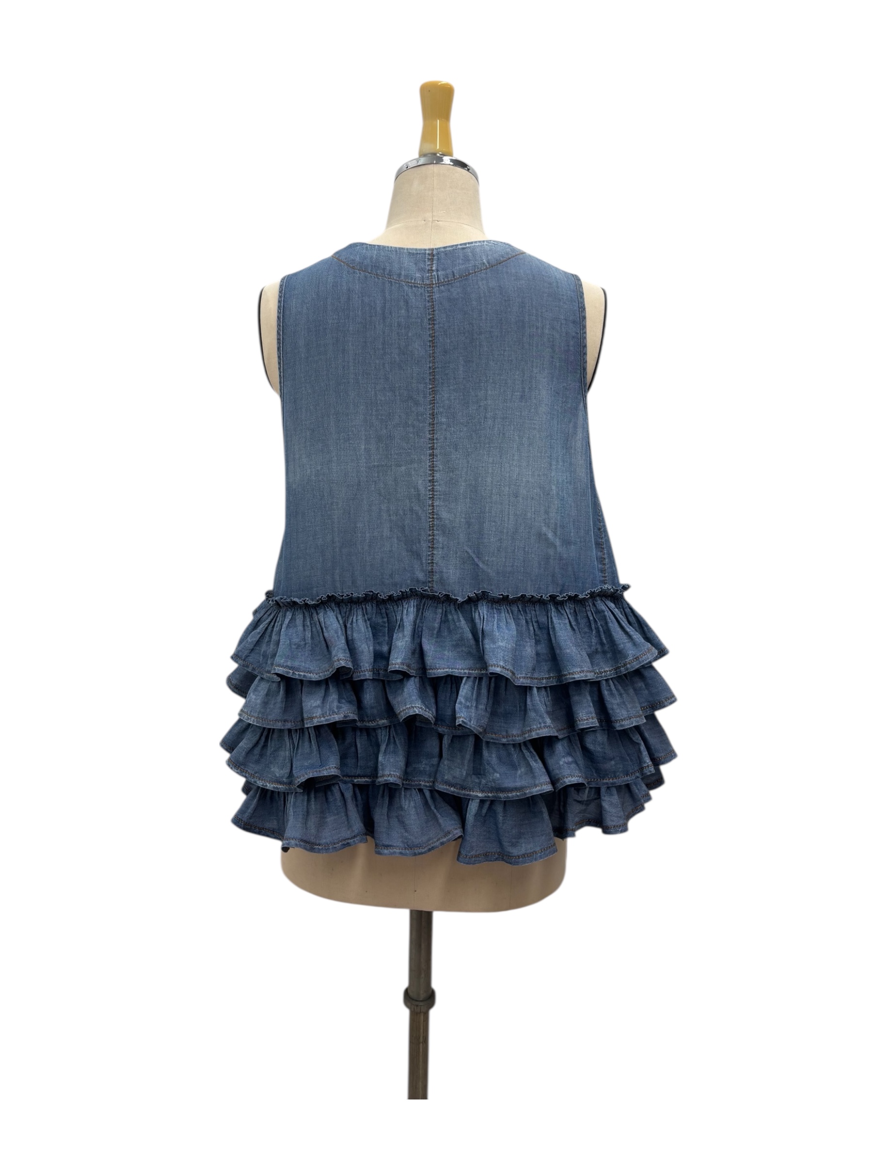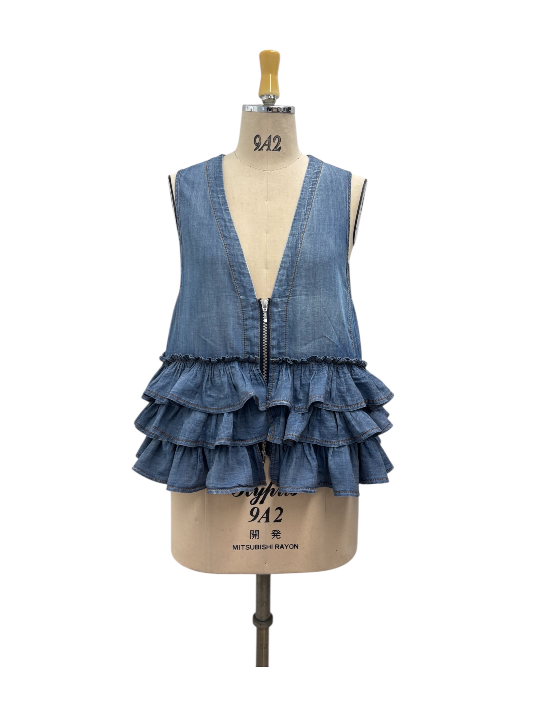 ayane26SSご予約 シアーデニムフリルベスト① 816305 納期4月中旬~下旬