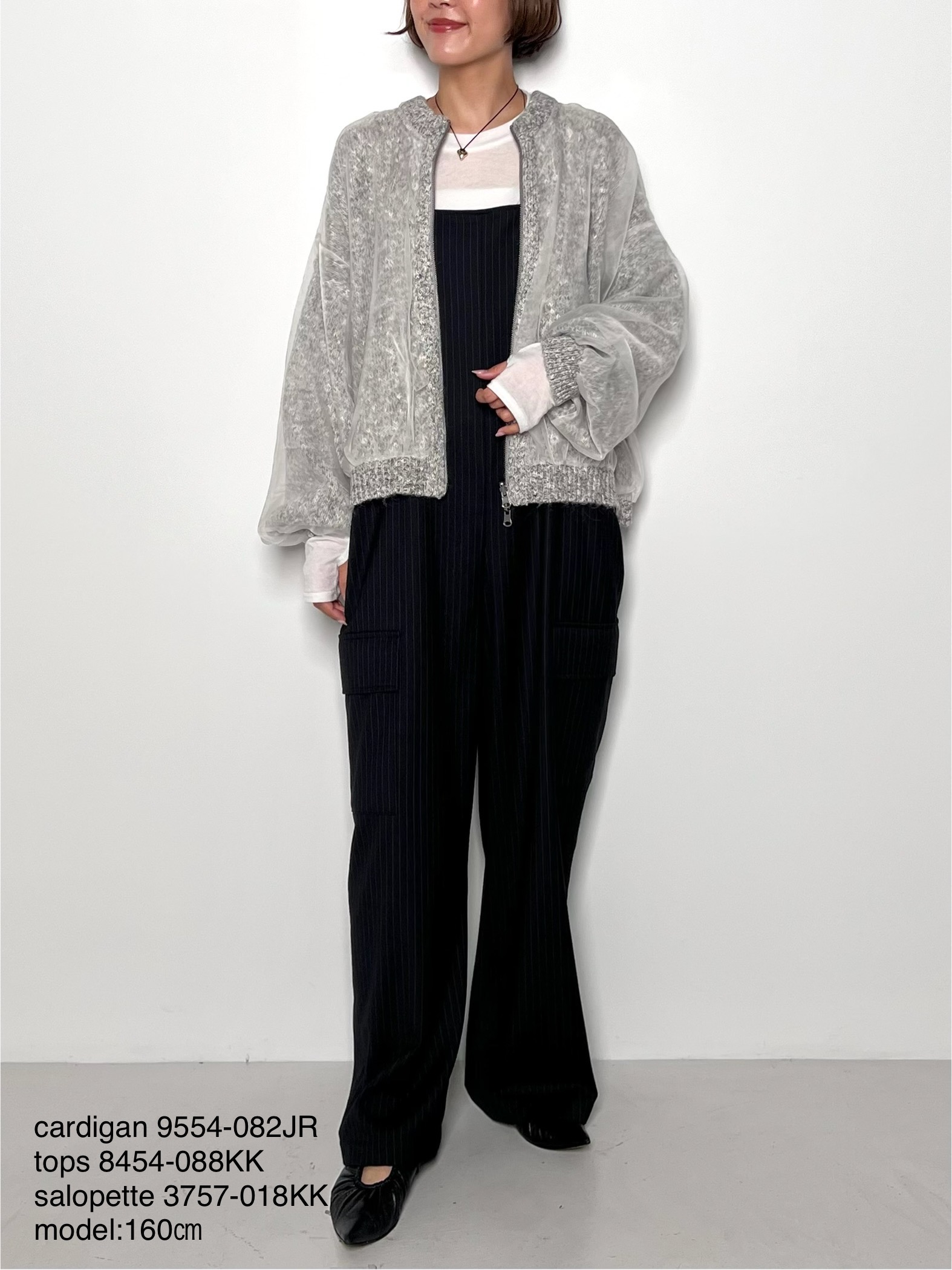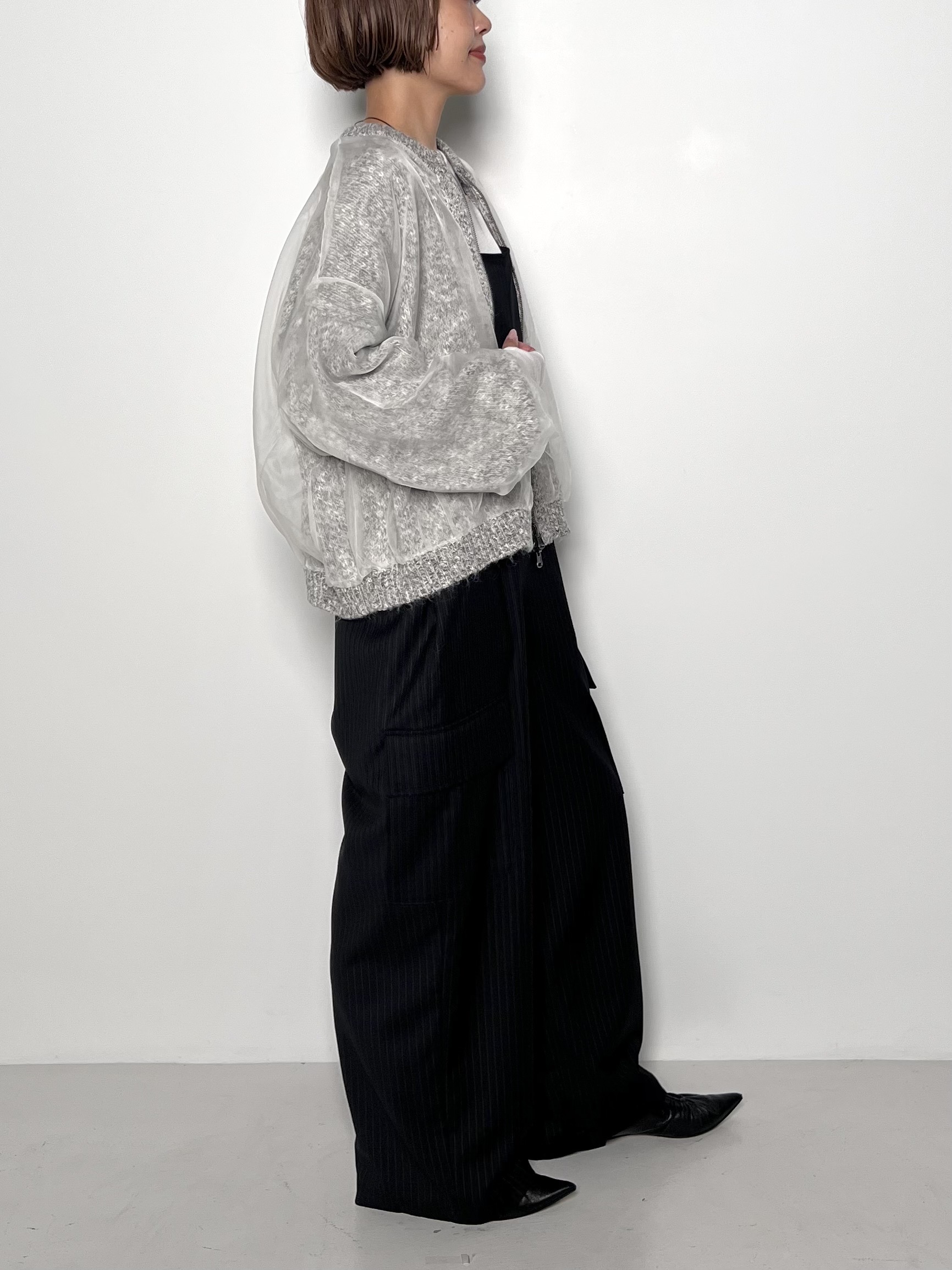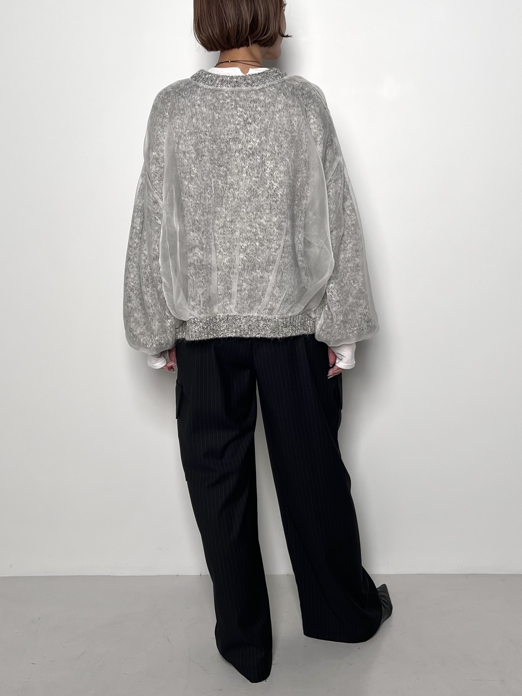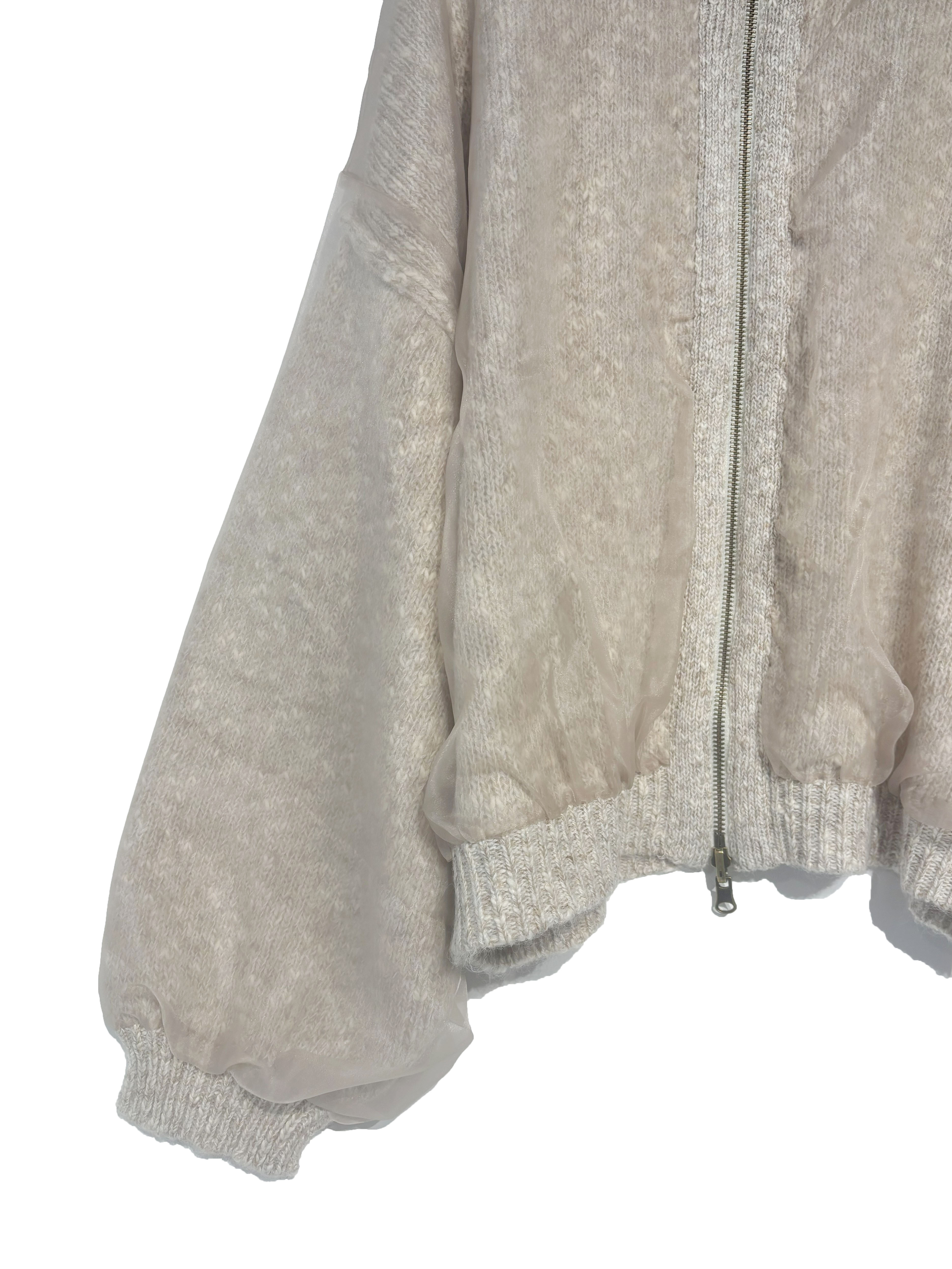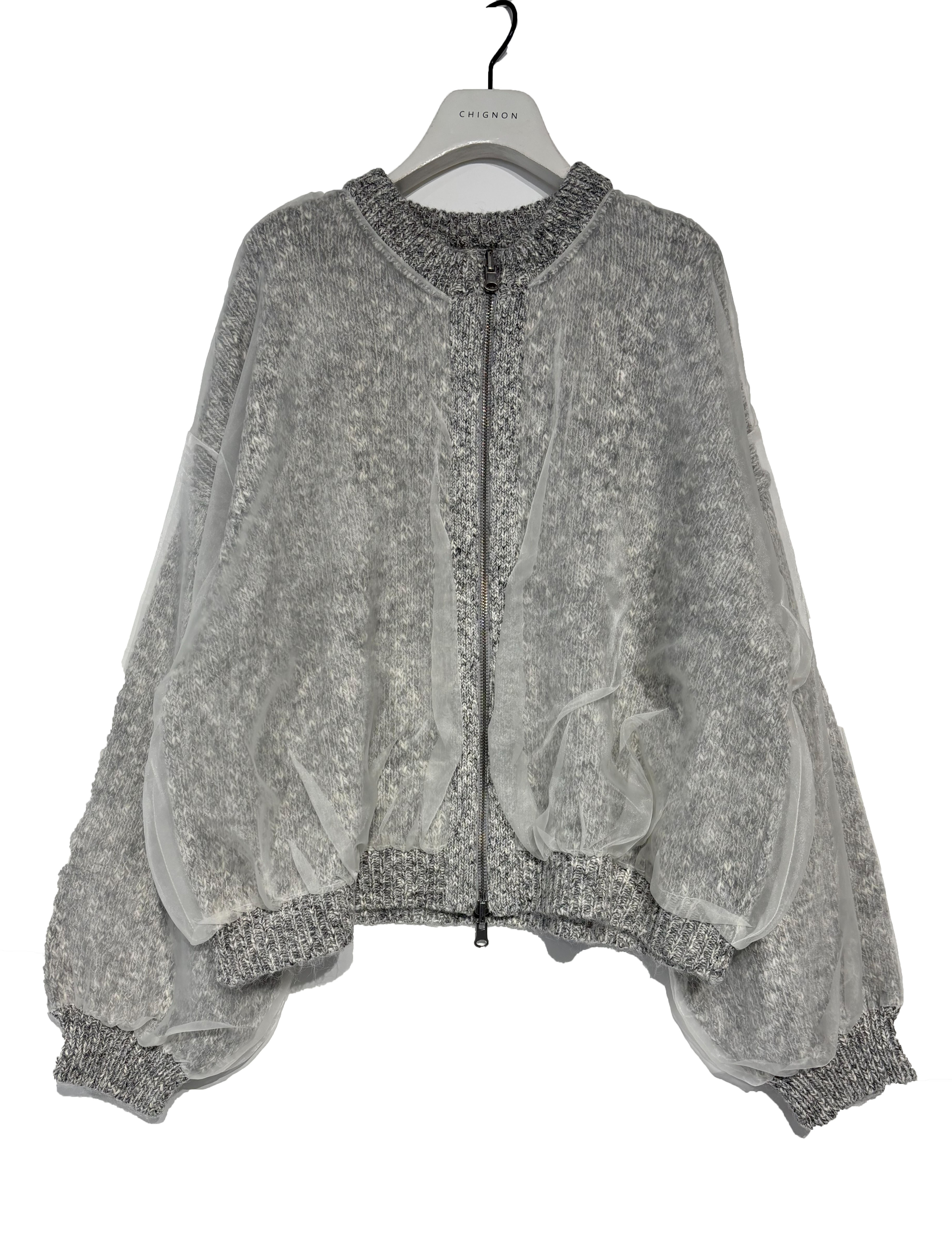 ニットとオーガンジーをドッキングさせたリバーシブルカーディガン。