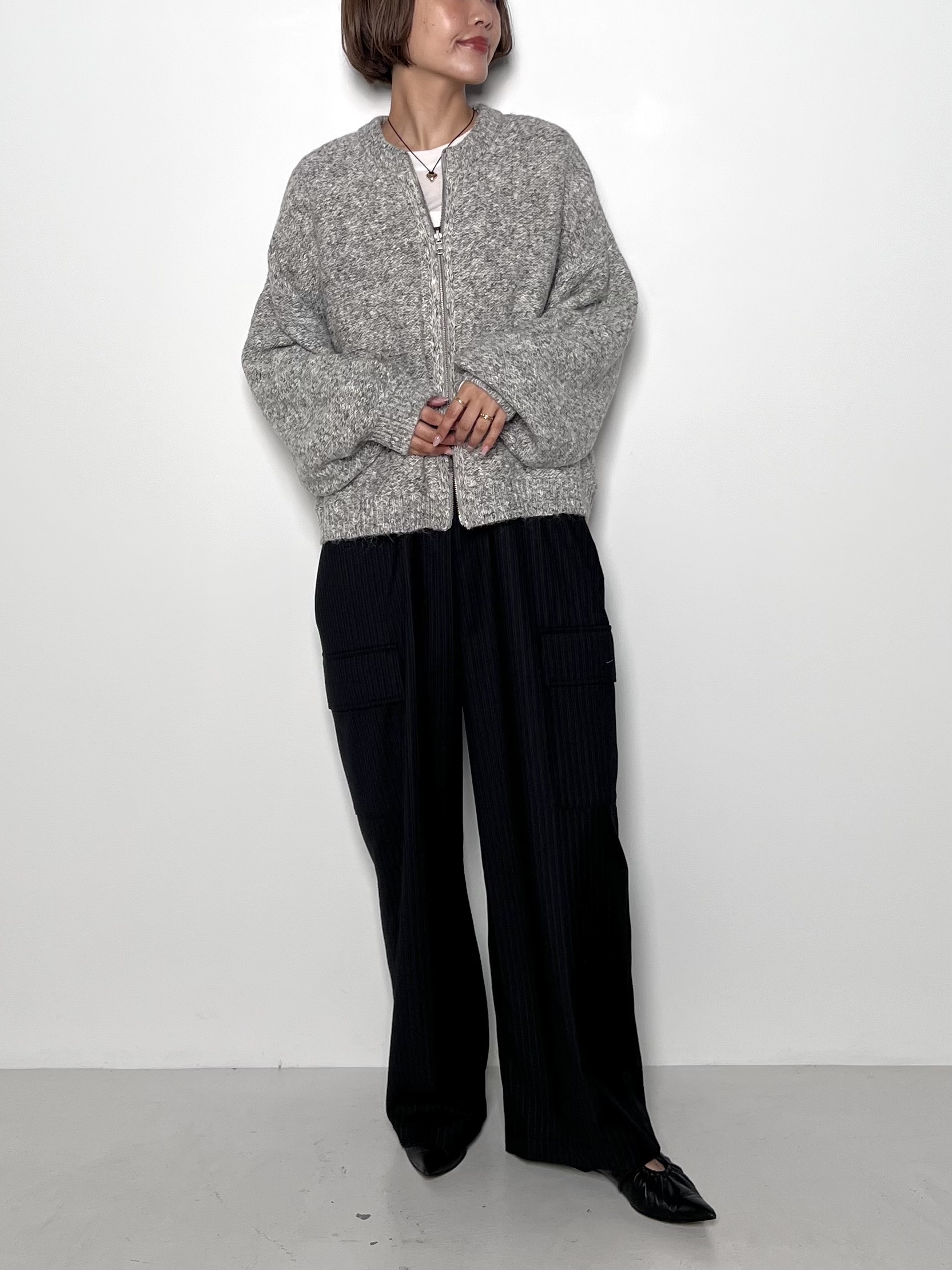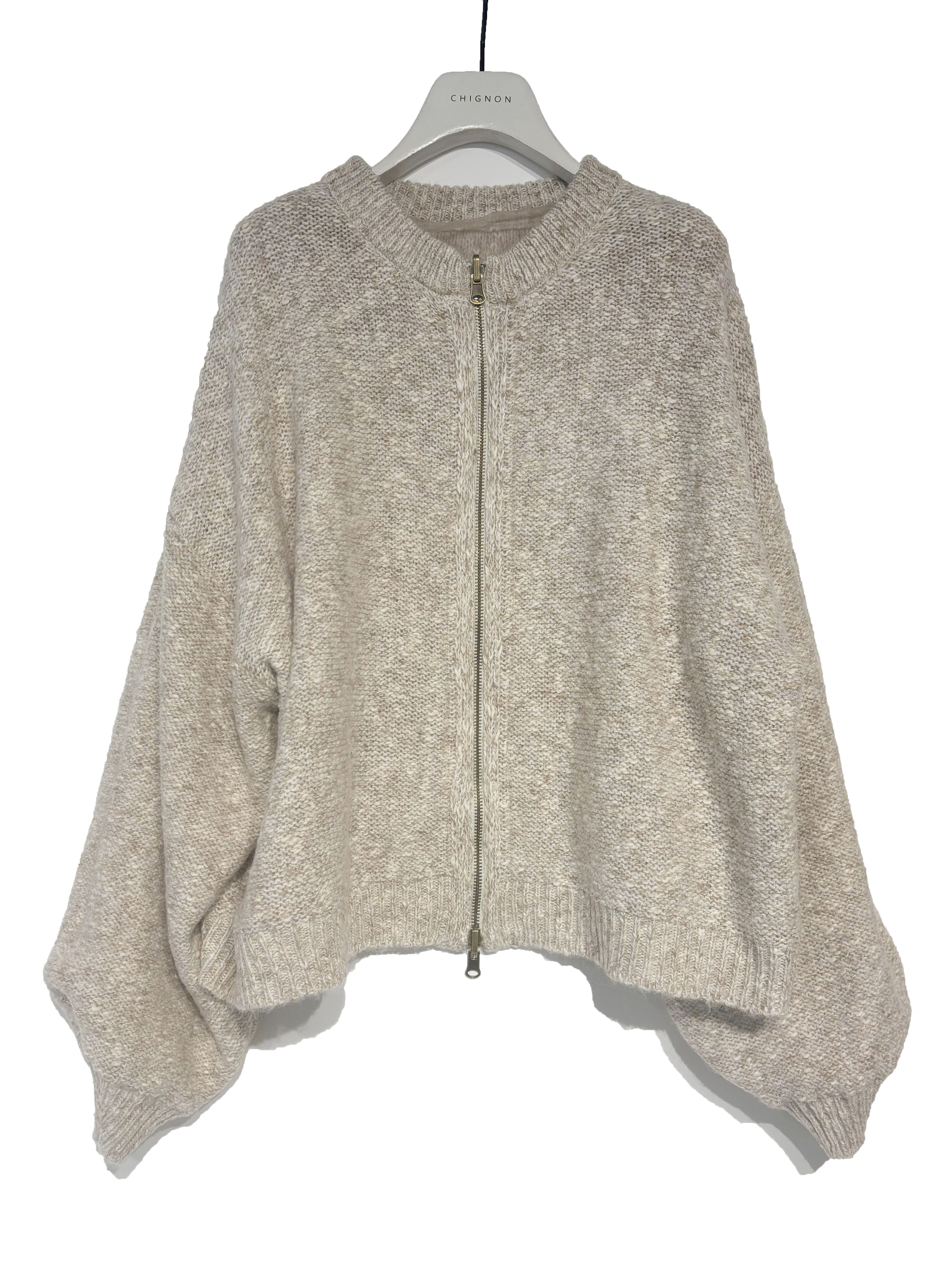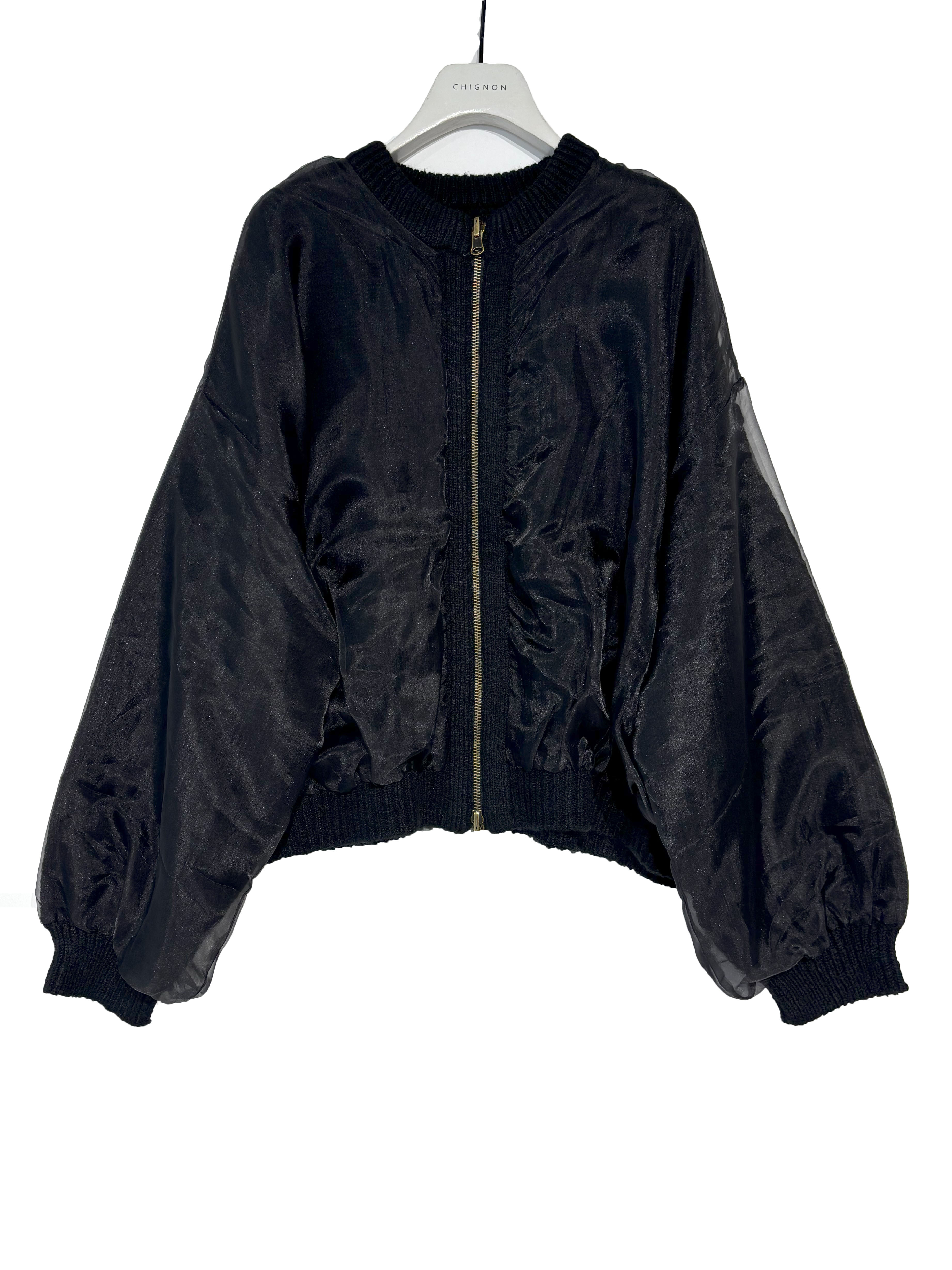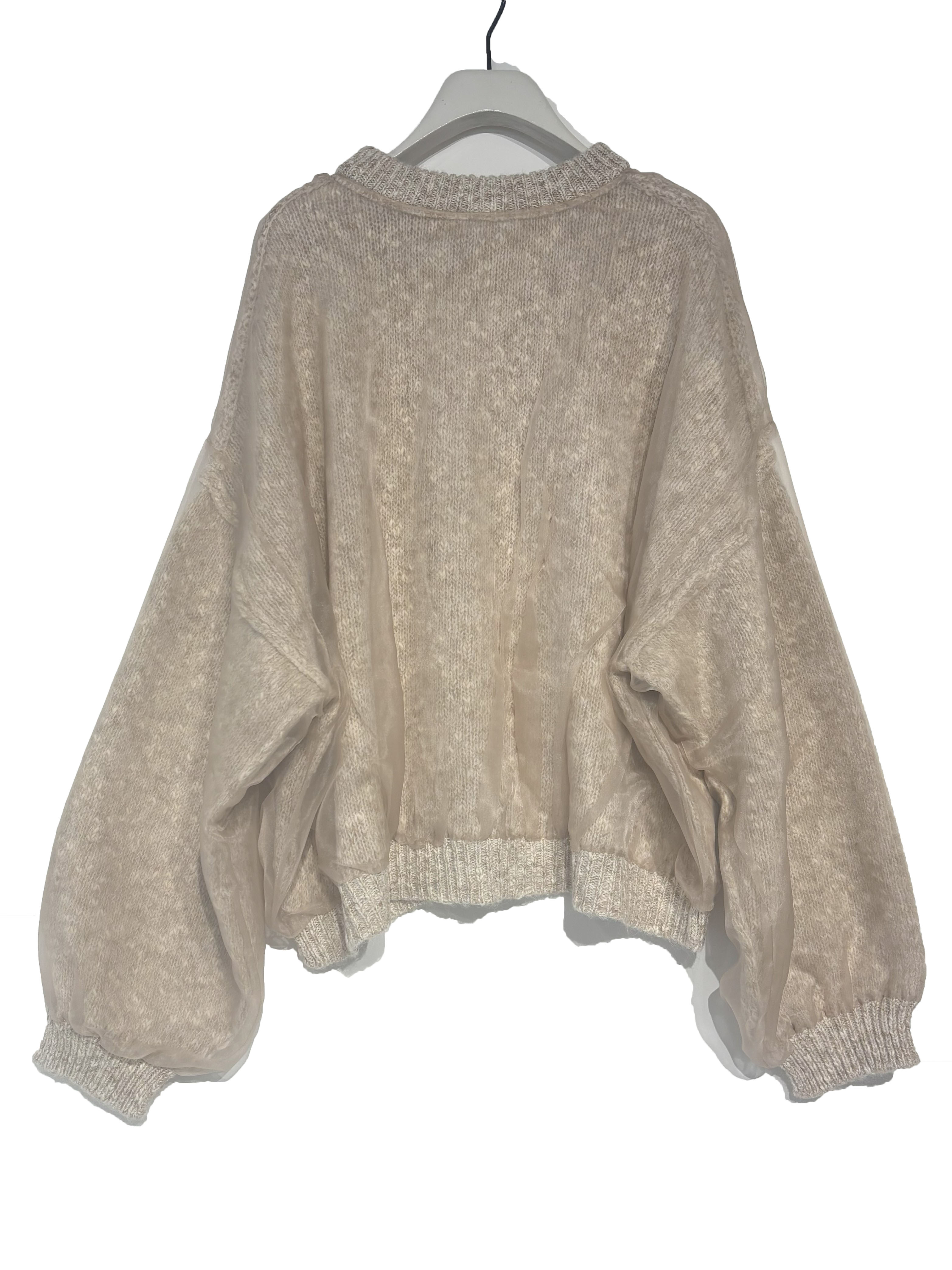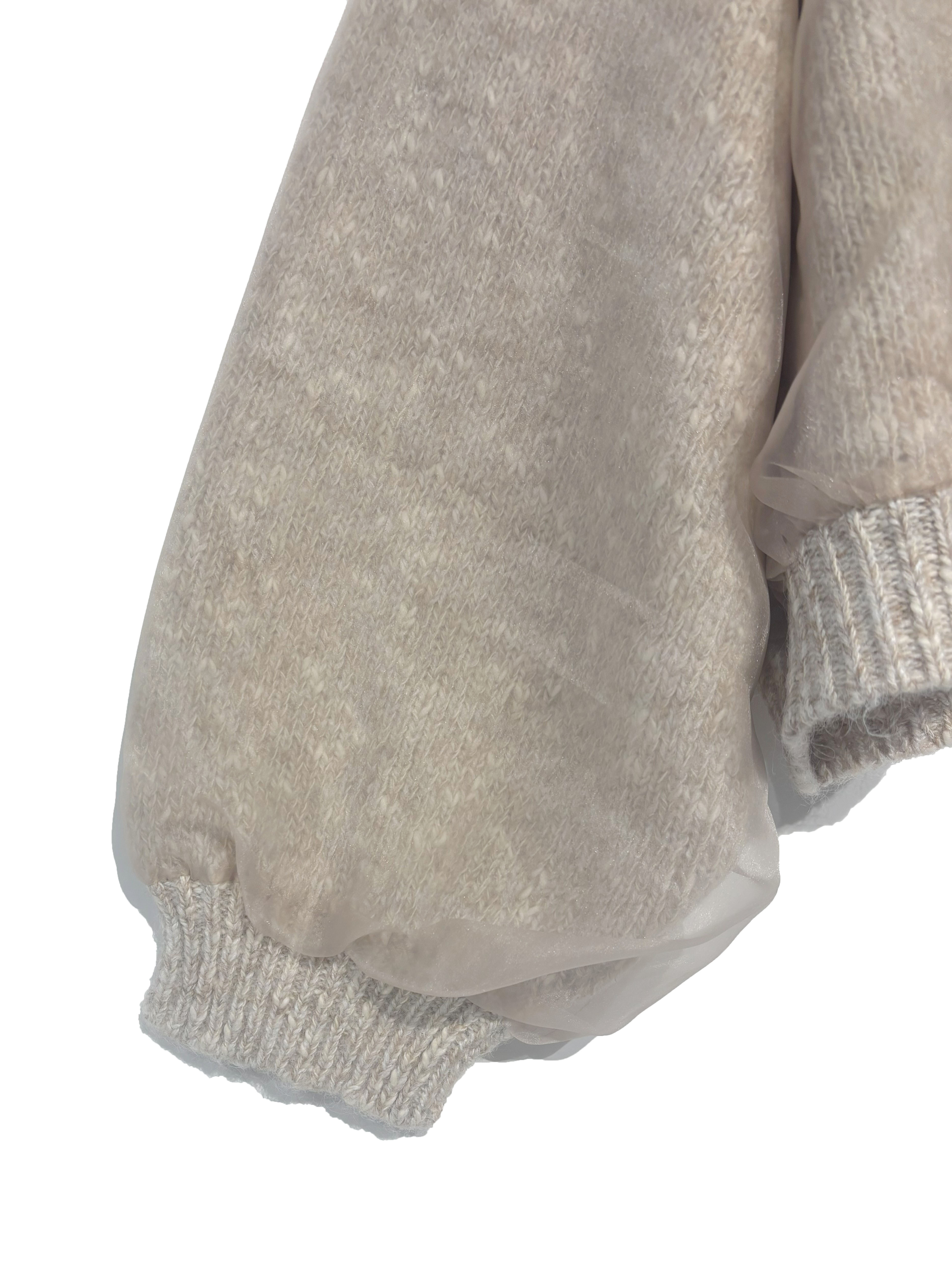 ニットとオーガンジーをドッキングさせたリバーシブルカーディガン。