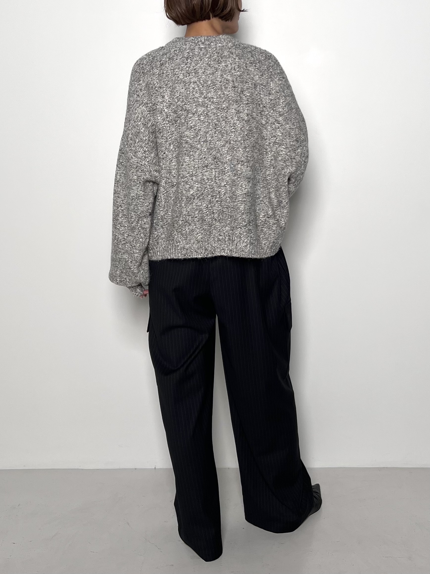 杢調のニットをシアーオーガンとの二重仕立てにして、リバーシブルで2パターンの表面感を楽しめます。