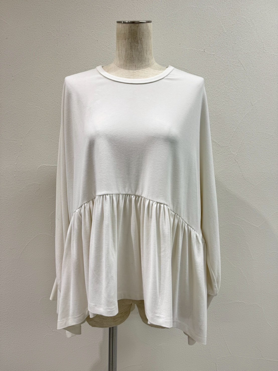 cyantokyo ホワイトラスト1点ラウンドギャザーウォームドルマンTOPS 504380