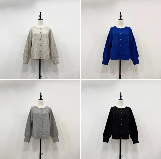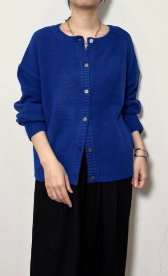クルーネックの前後2wayタイプのニットカーディガンです。