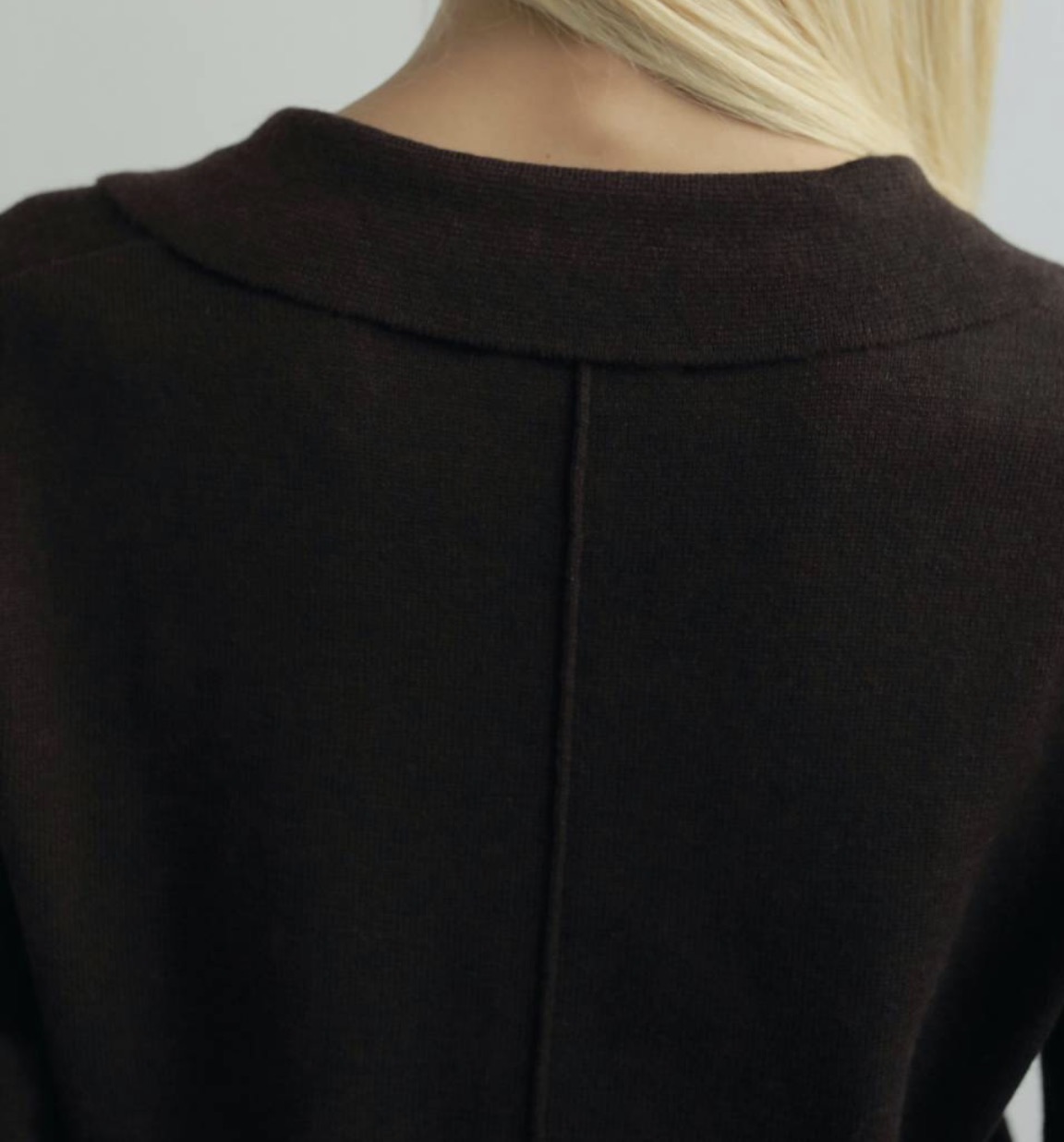 ミニマルに仕上げたニットシャツ。すっきりと着れる無駄のないデザインで、パンツにもスカートにも好相性です。ジャケットの中にサッと合わせていただきやすい一枚。フロントのボタンを少し開けて着るだけで、ニュアンスが生まれ、抜け感あるスタイリングに仕上がります。
