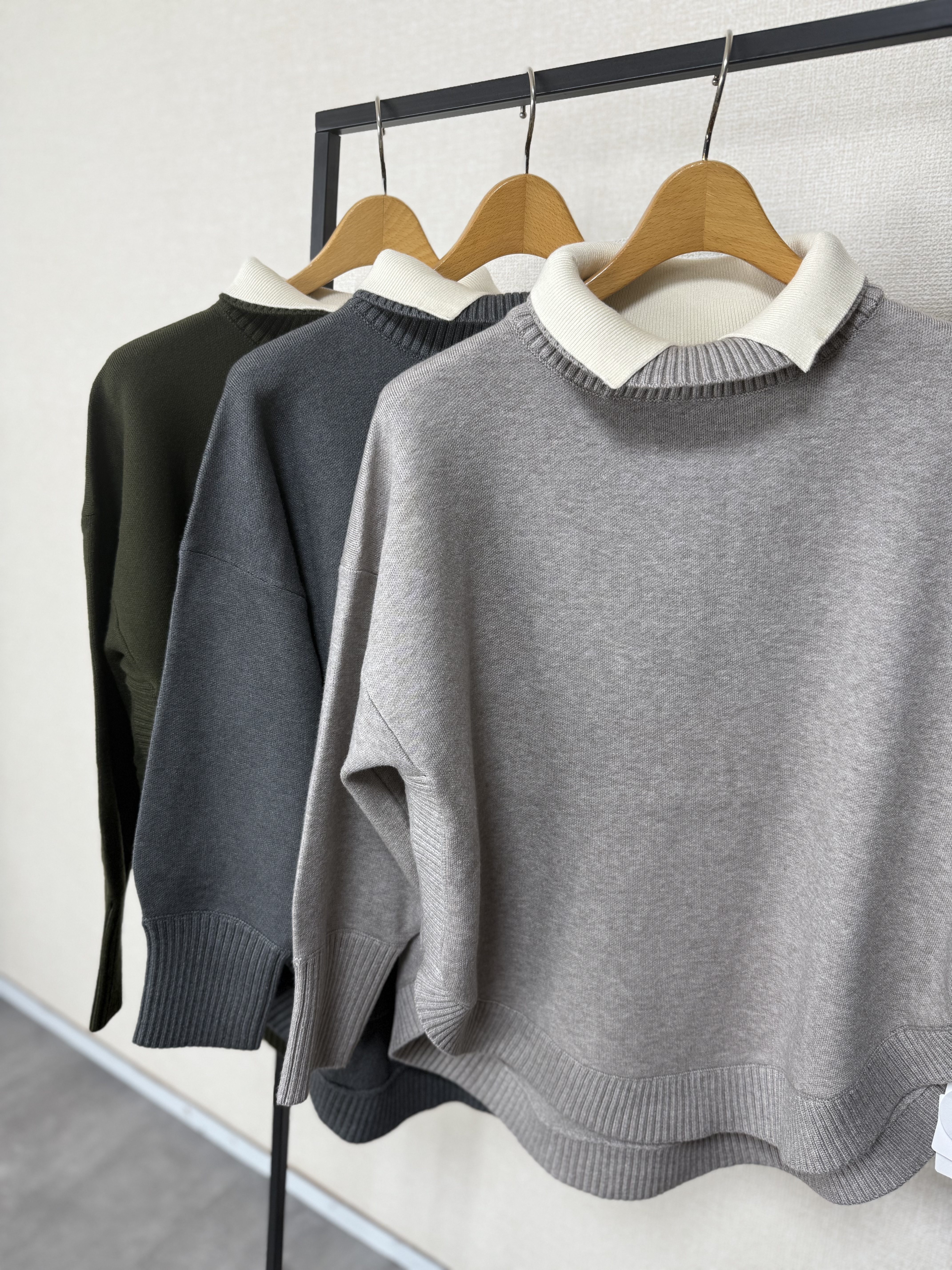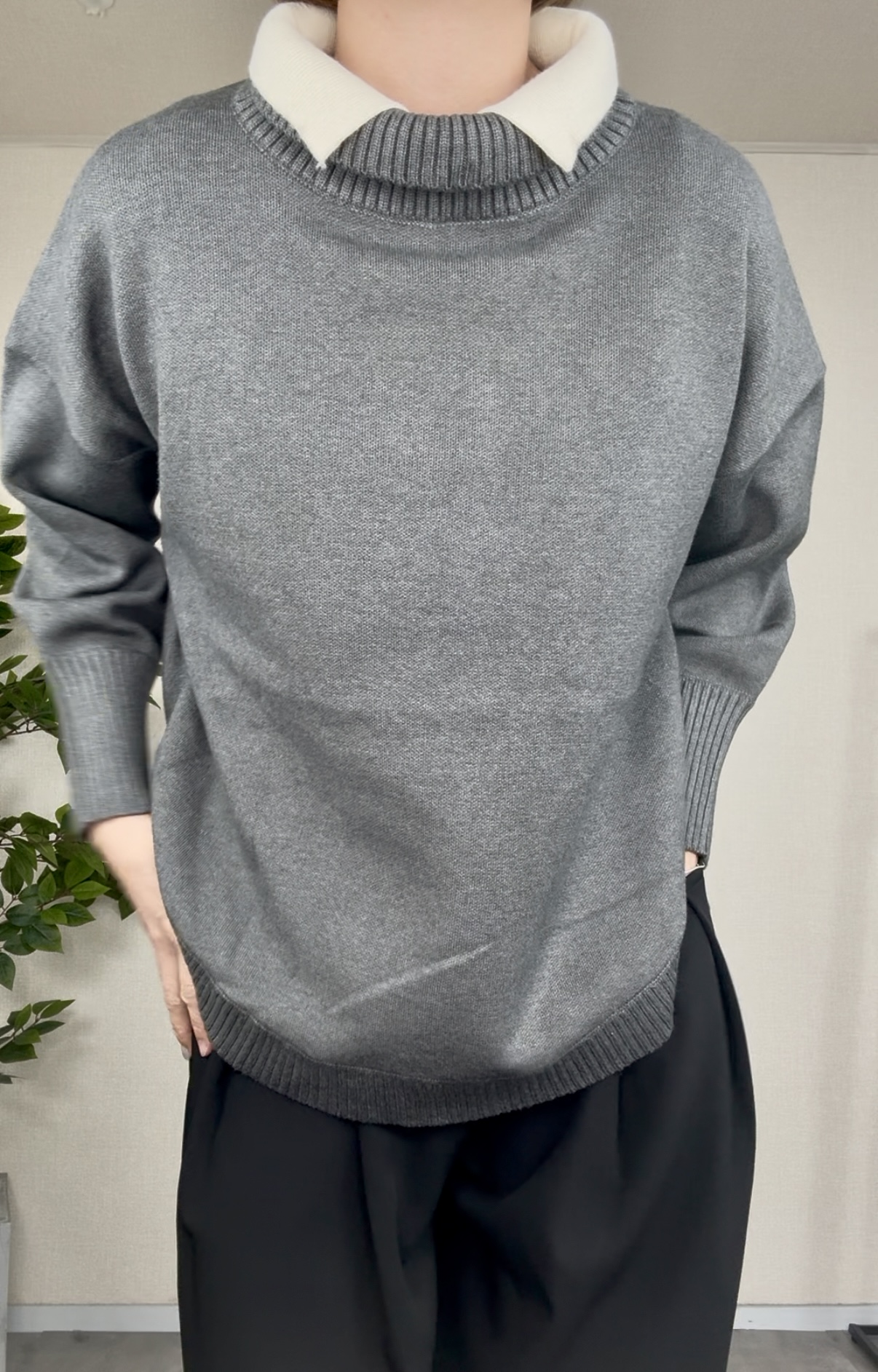 cloche グレーカーキラスト1点づつ もっちり襟ニット 5578