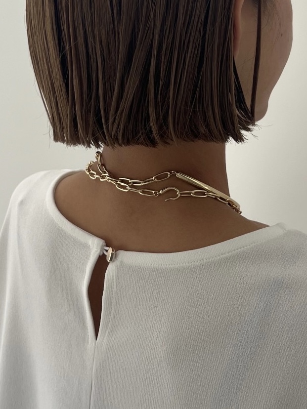マルチWAYメタルチョーカーは、シンプルなメタルチョーカーとオーバルチェーンネックレスの組み合わせで様々なスタリングを楽しめます。
