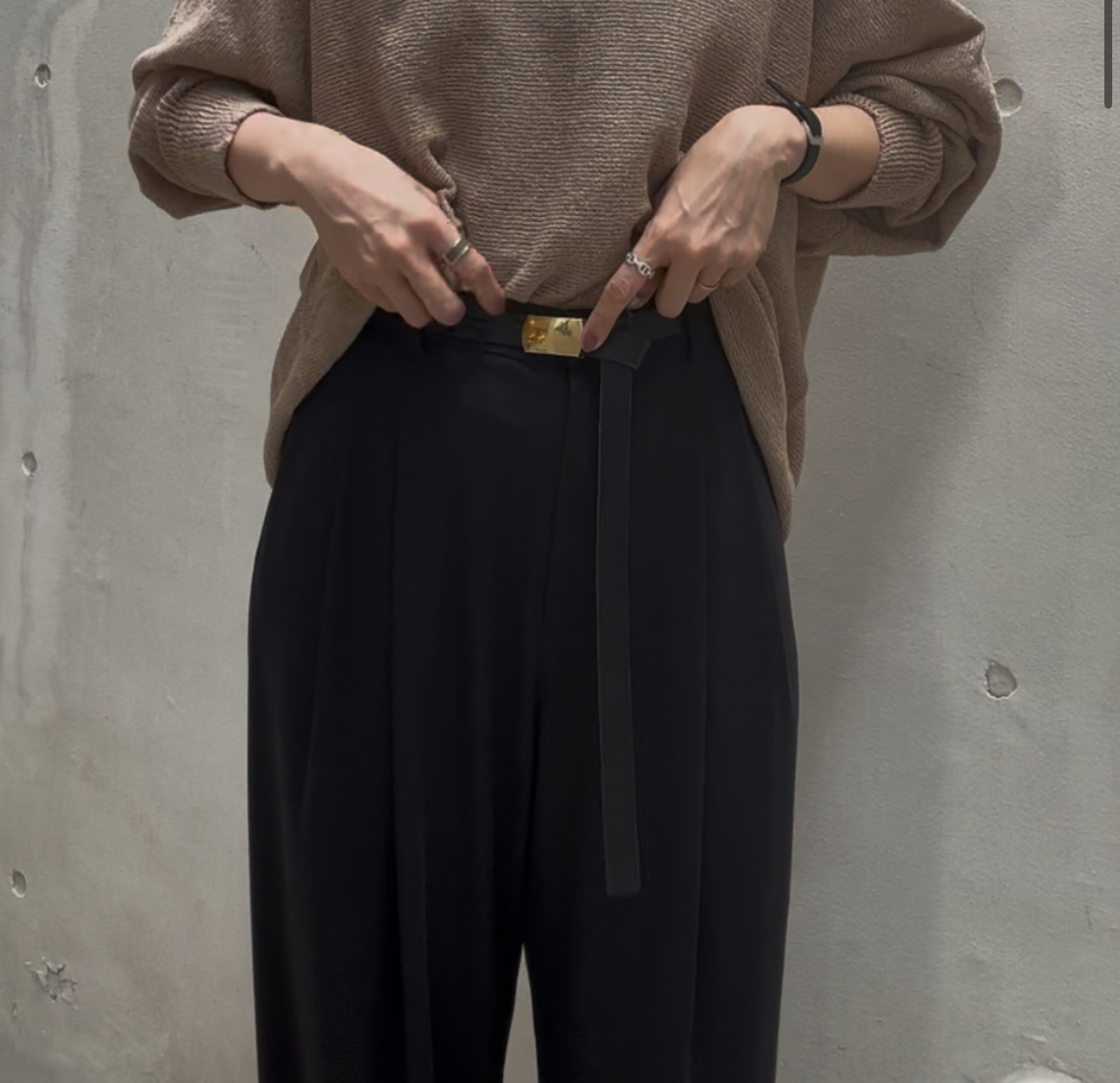 あえて端を垂らして、コーディネートのアクセントに。